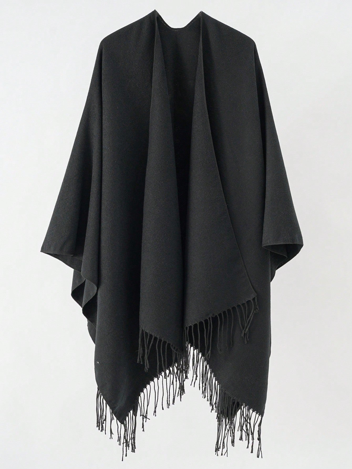 بونشو شال غطاء دافئ أوفرسايز أمامي مفتوح بشراشيب