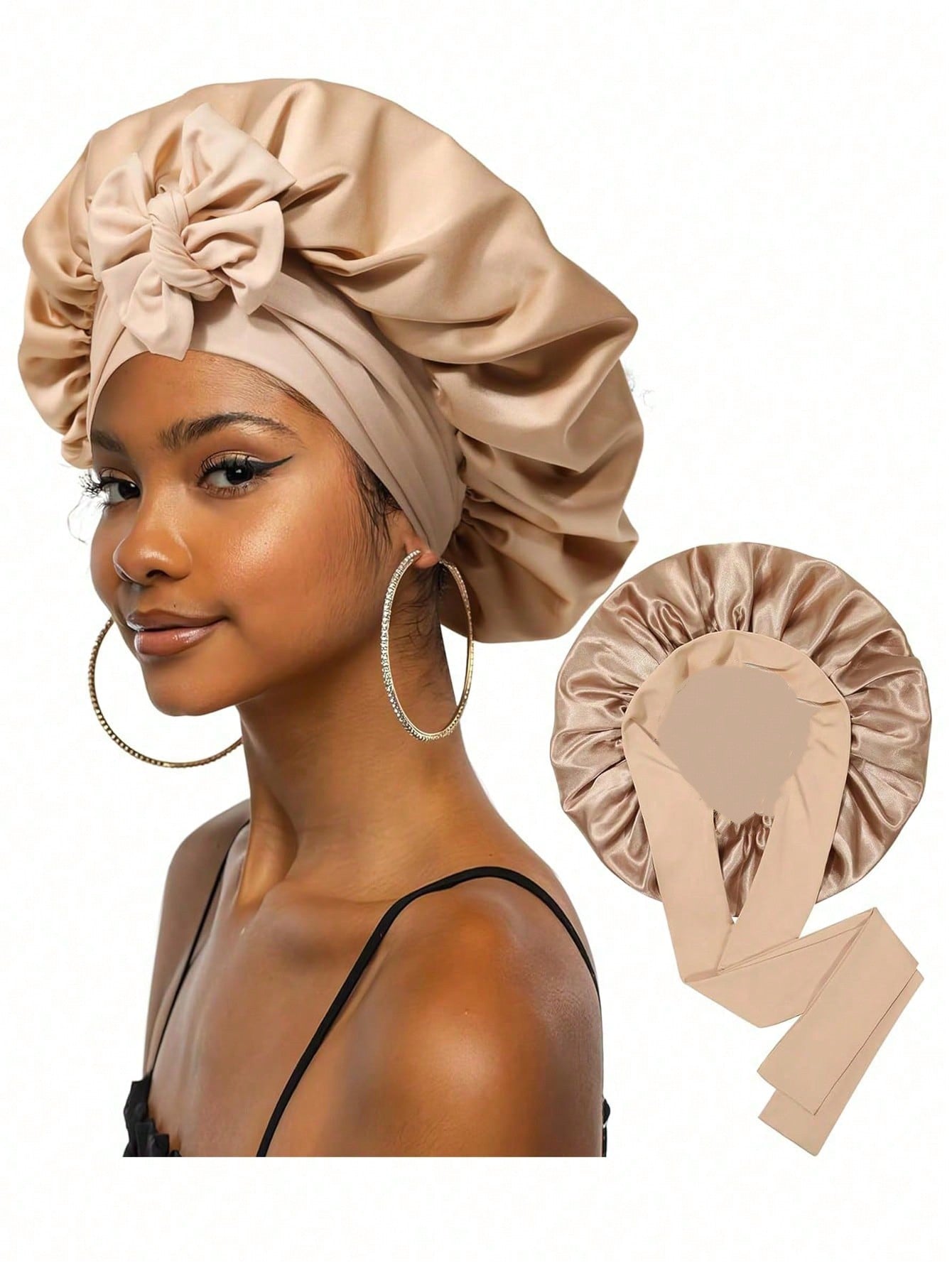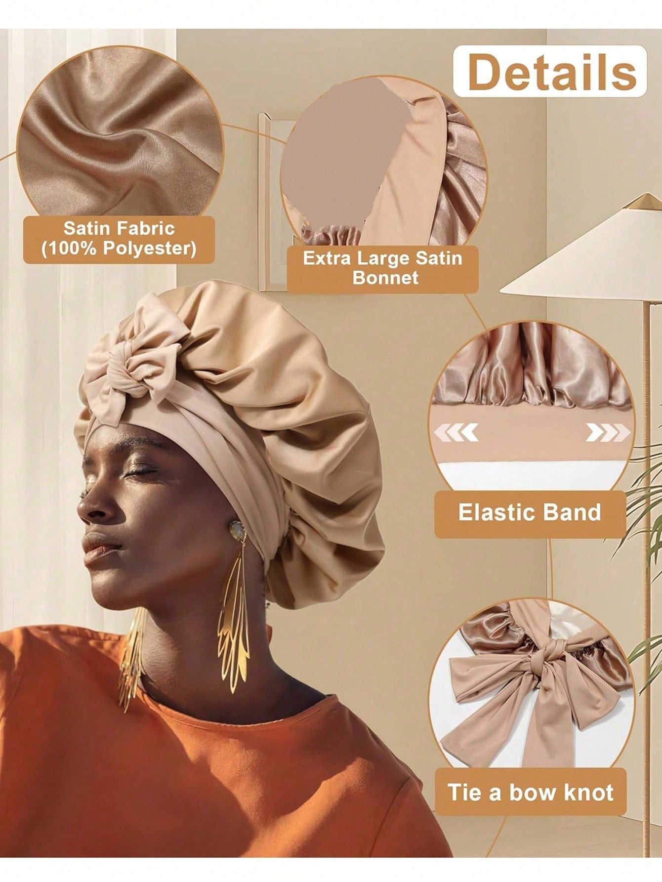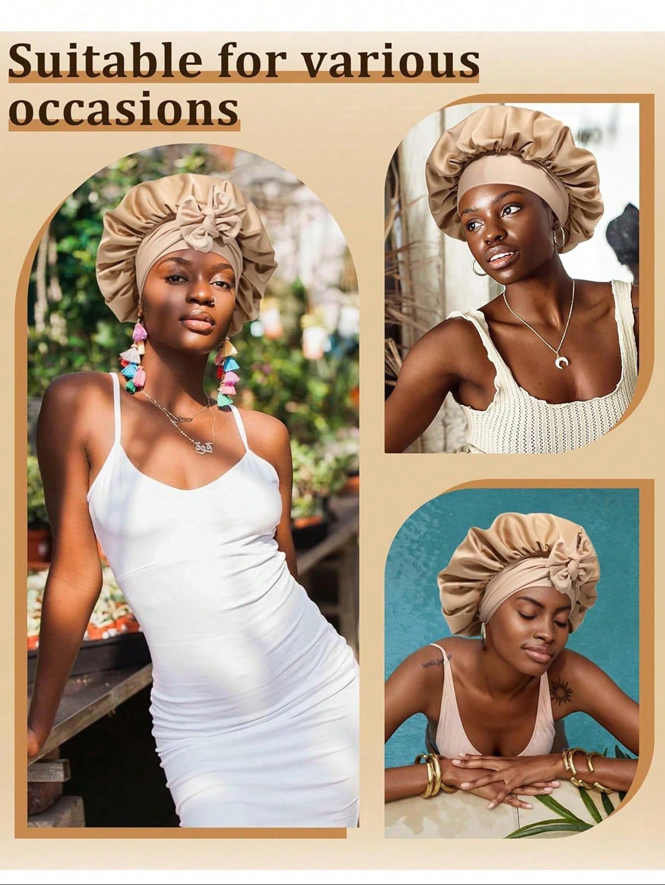 تاج البونيه الملكي من الحرير للنوم والحفاظ على الشعر، بونيه الساتان الأسود للرجال والنساء، بونيه للشعر الكيرلي والشعر الطبيعي، بونيه قابل للتعديل غطاء شعر