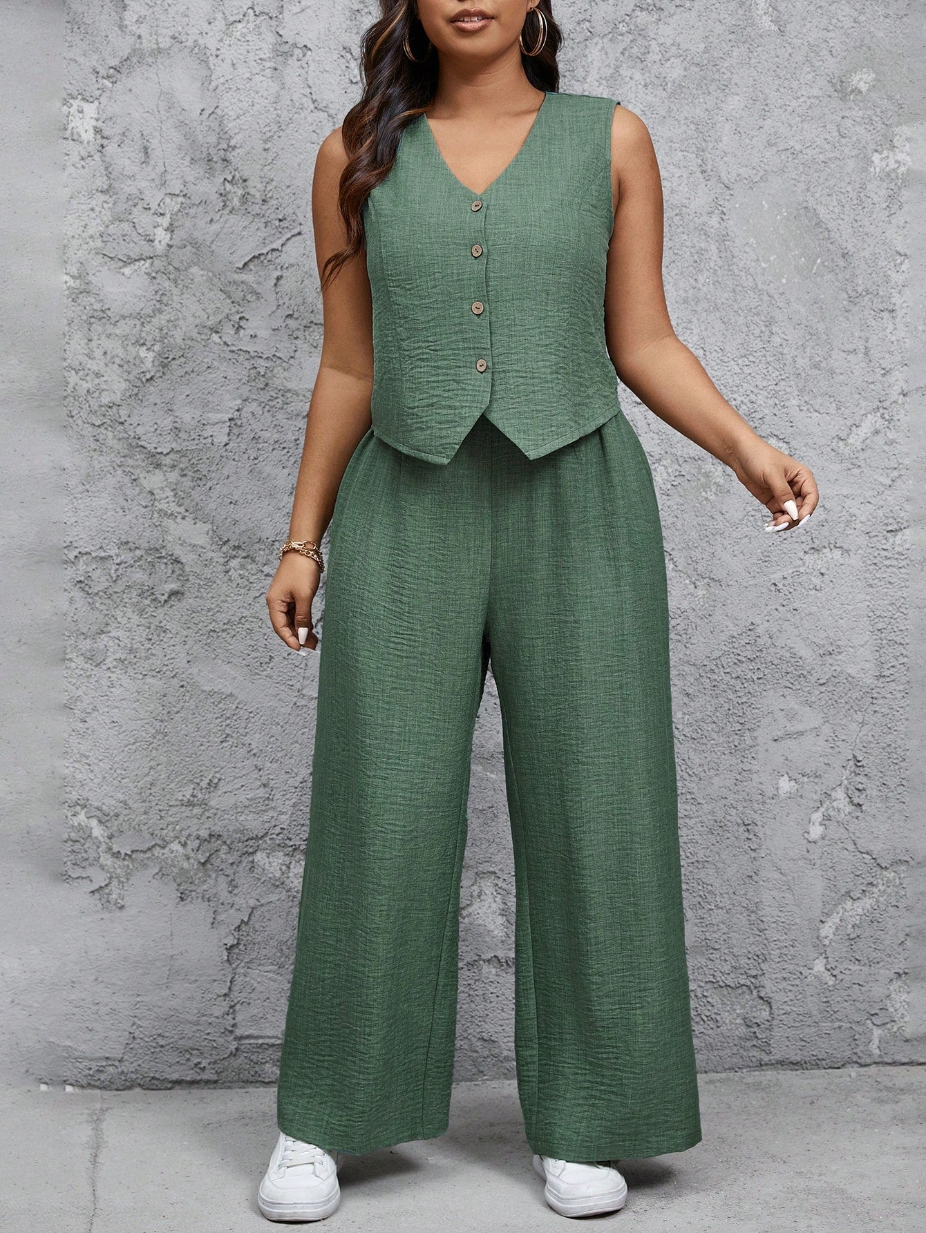 تشكيلة ملابس كاجوال لكبار الحجم قطعتين سترة وبنطلون لون أحادي