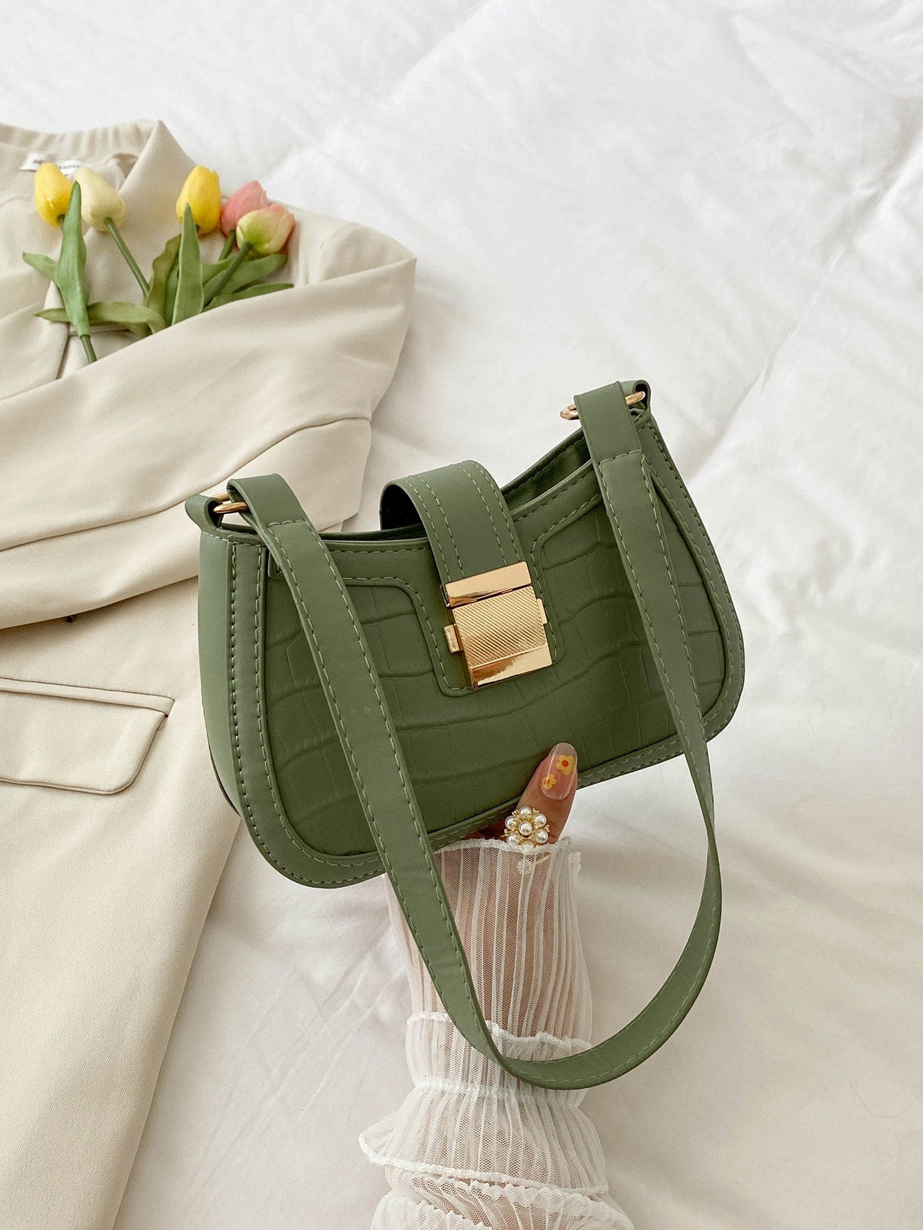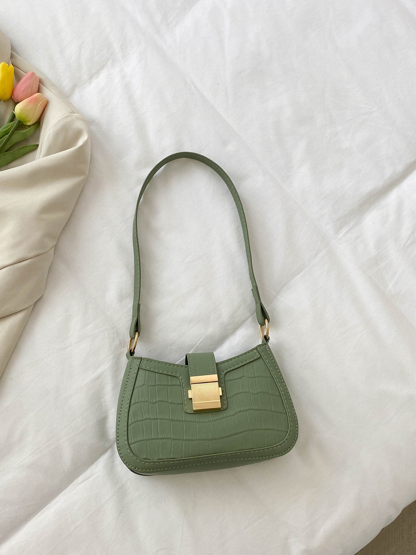 تمساح مطبوعة الحد الأدنى تمساح صغير منقوش حقيبة تغلق بالضغط/