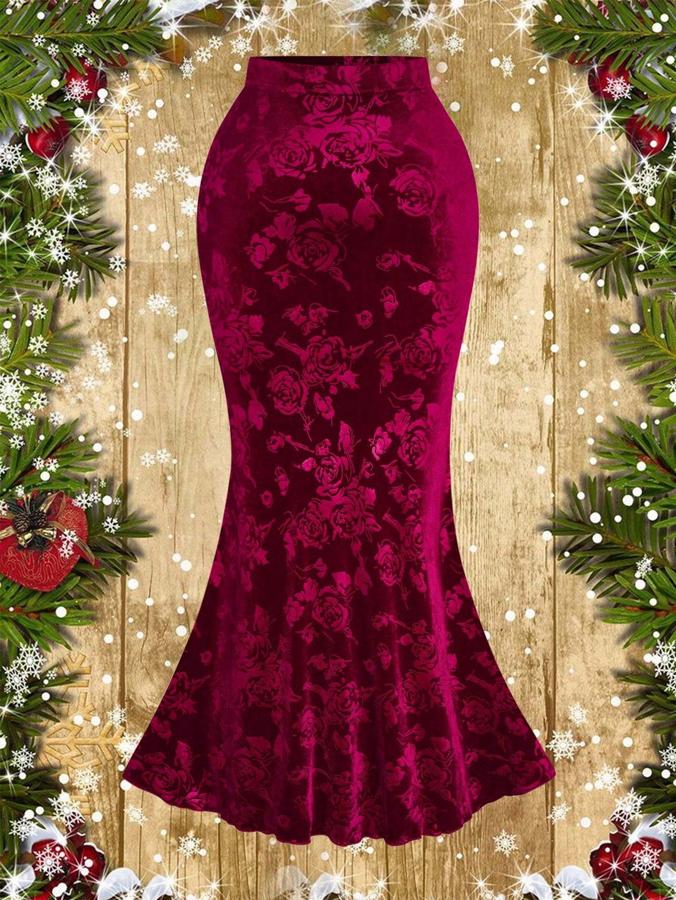 تنورة أنيقة نصف دائرية من القطيفة والجاكارد عالية الخصر مقاسات كبيرة
