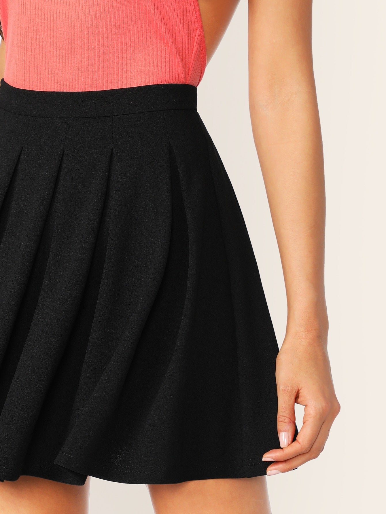 تنورة بلون موحد مطوي الثنايا بسستة خلفي