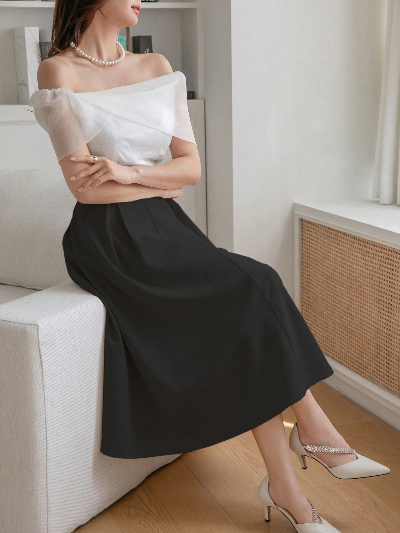 تنورة خصر عالي بتفاصيل طية التجاعيد