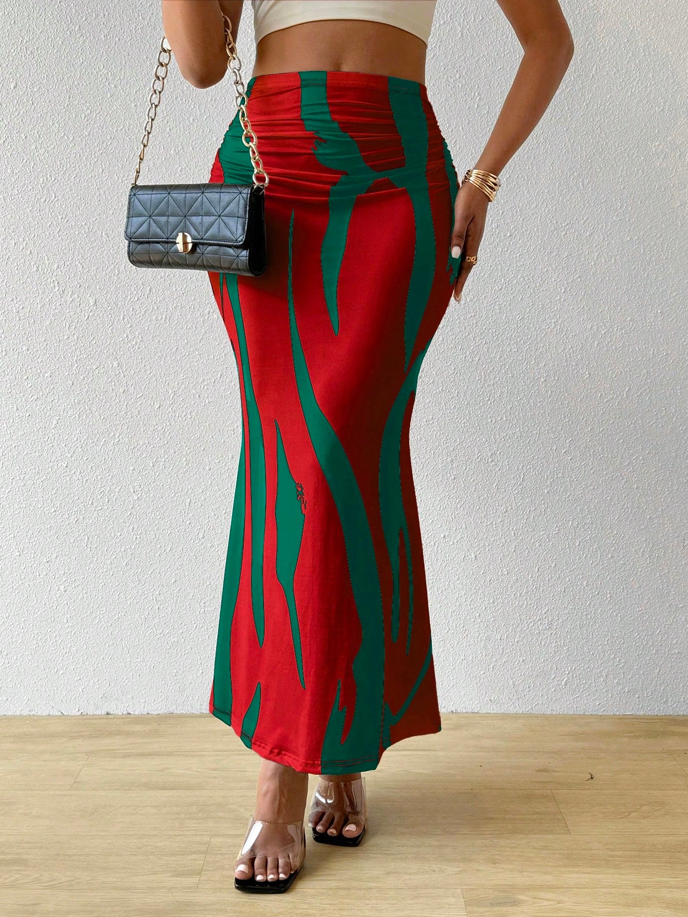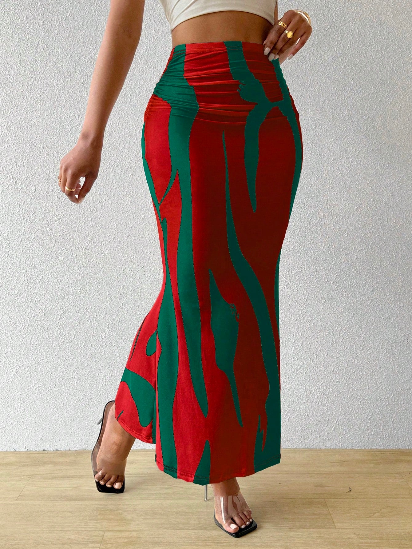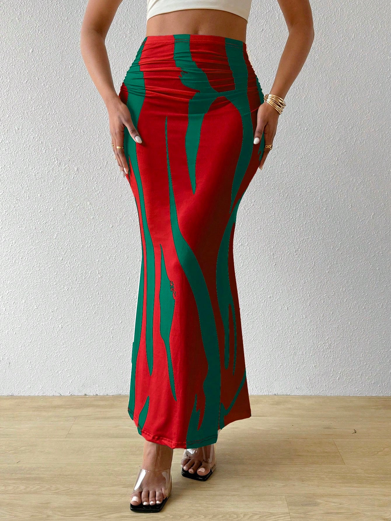 تنورة طباعة كاملة جذابة أناقة موضة رشاقة خصر عالي منسدلة للنساء