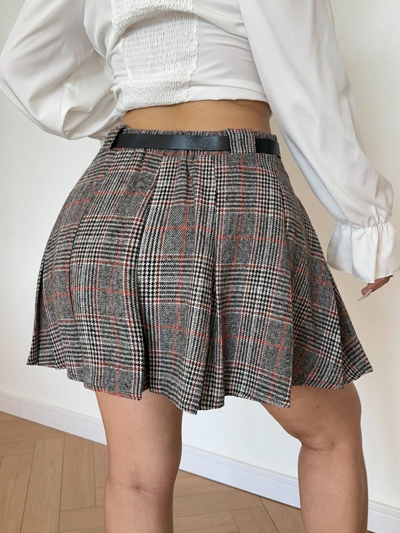 تنورة كاجوال ريترو متموجة منقوشة مناسبة للمقاسات الكبيرة، موضة بسيطة ومتنوعة الاستخدامات مع حزام