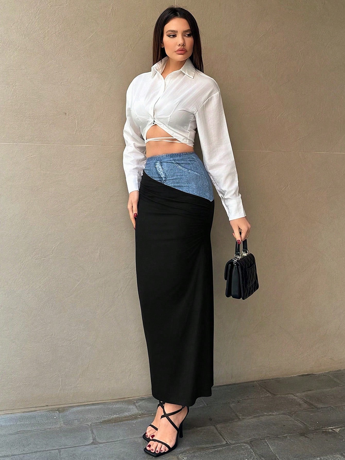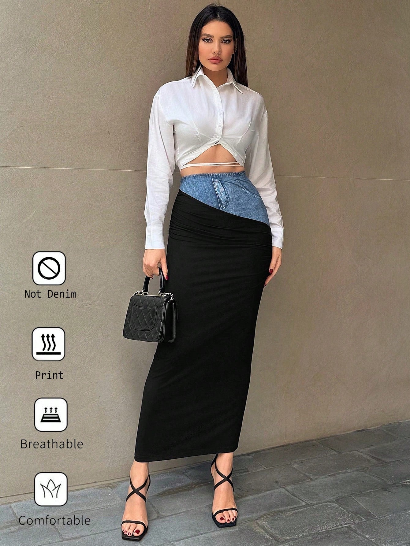 تنورة نصفية مطبوعة بنقشة الدنيم العارضة للموسيقى النسائية المستعدة للمهرجانات