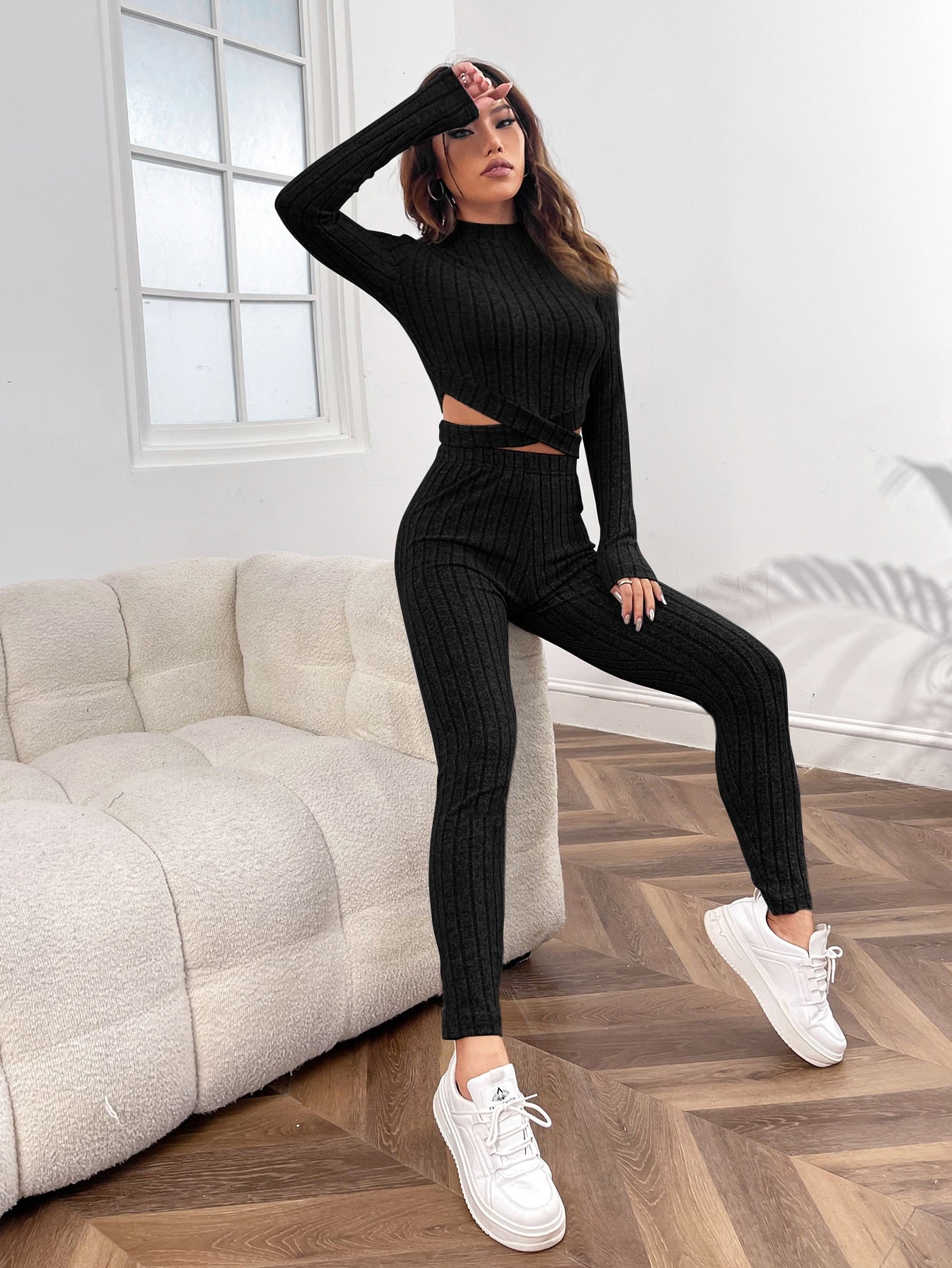 تيشيرت برقبة عالية وتصميم متشابك في الأمام