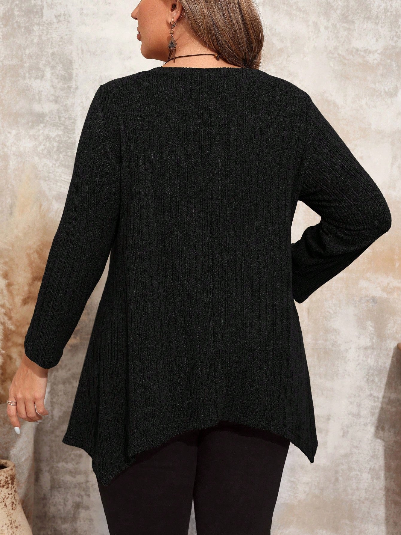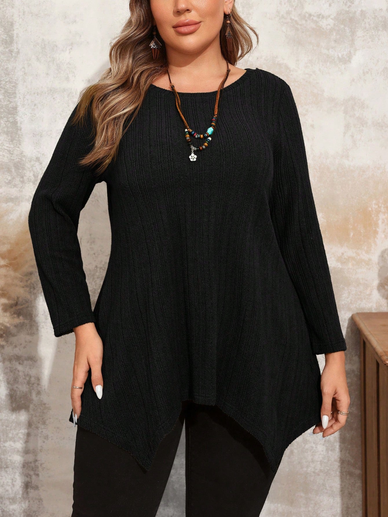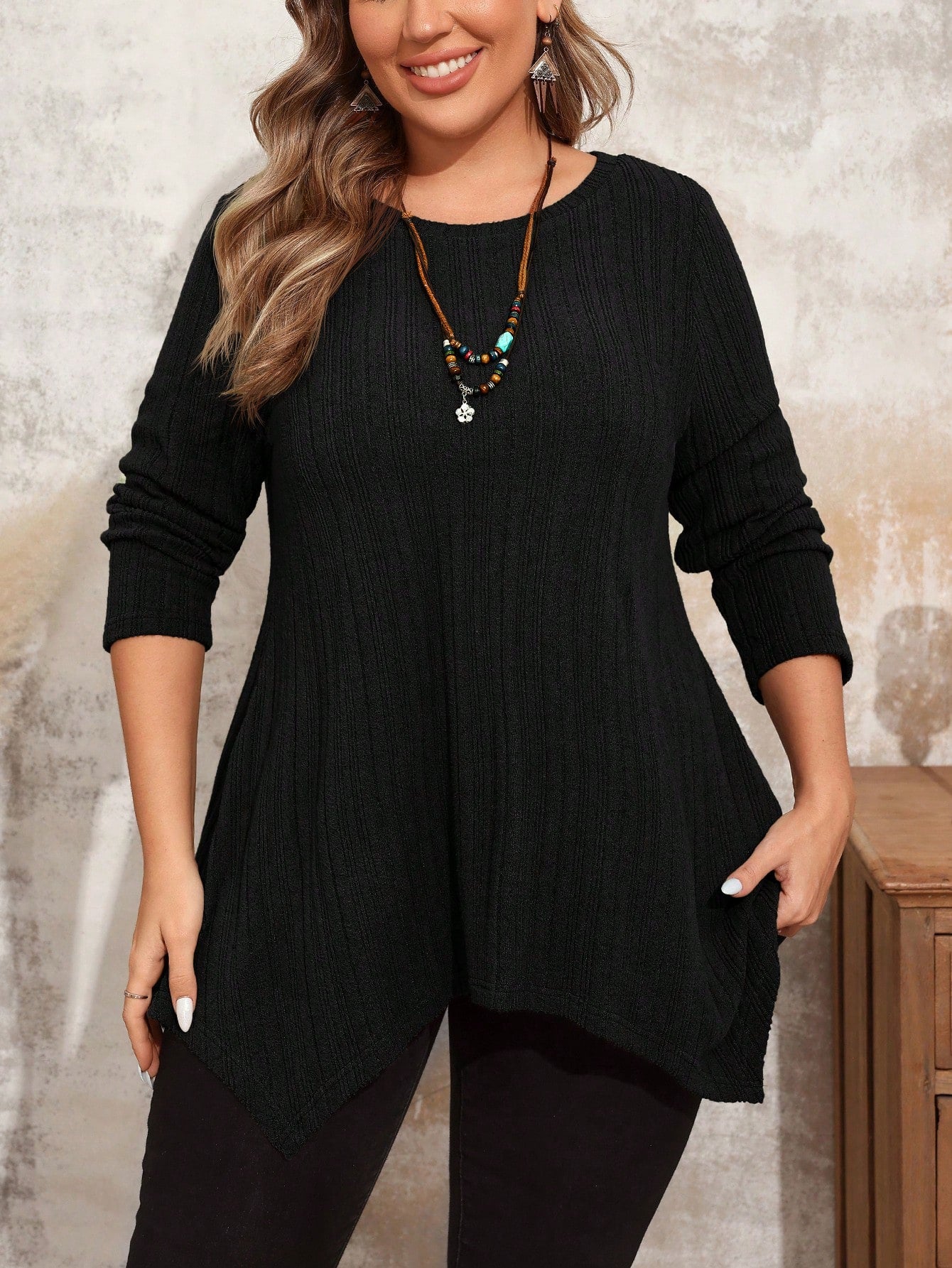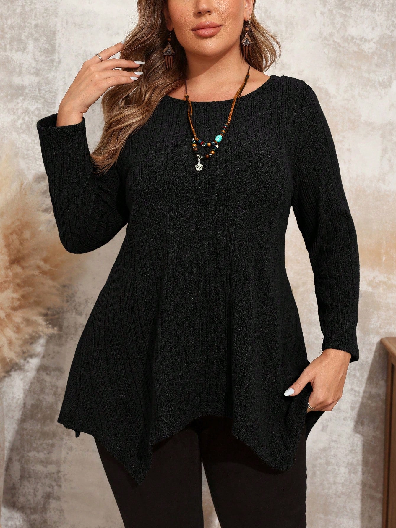 تيشيرت بياقة طاقم بأكمام طويلة وتصميم بسيط للنساء