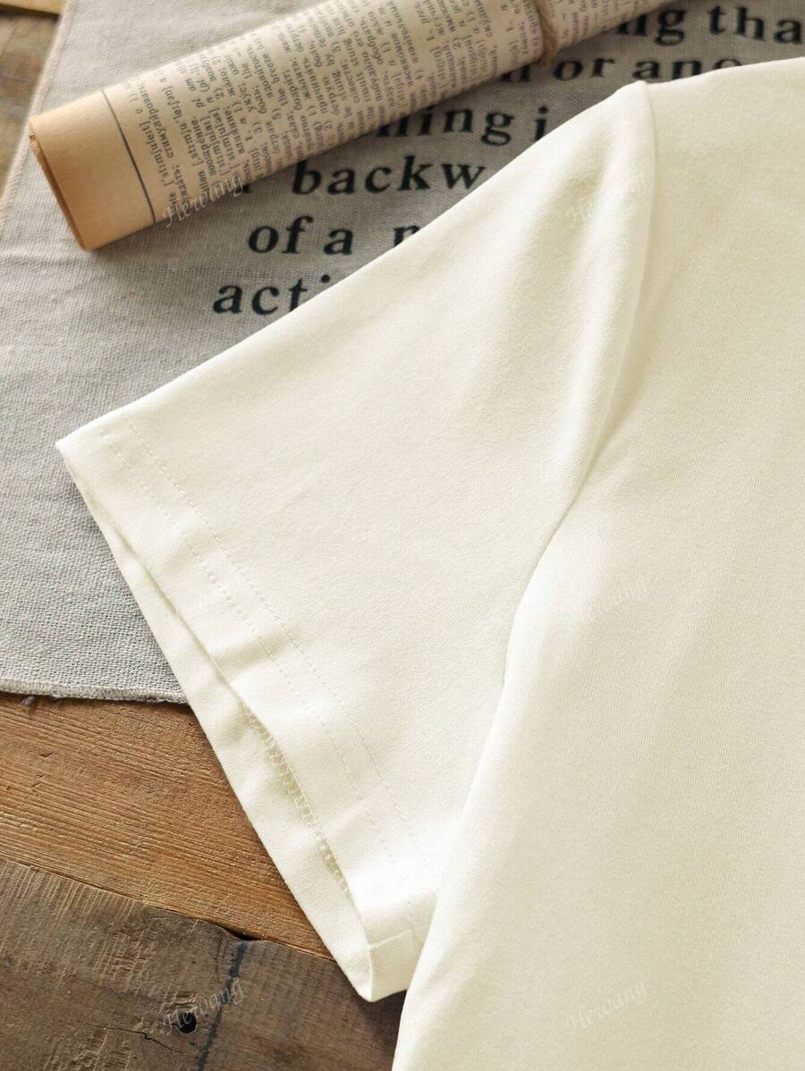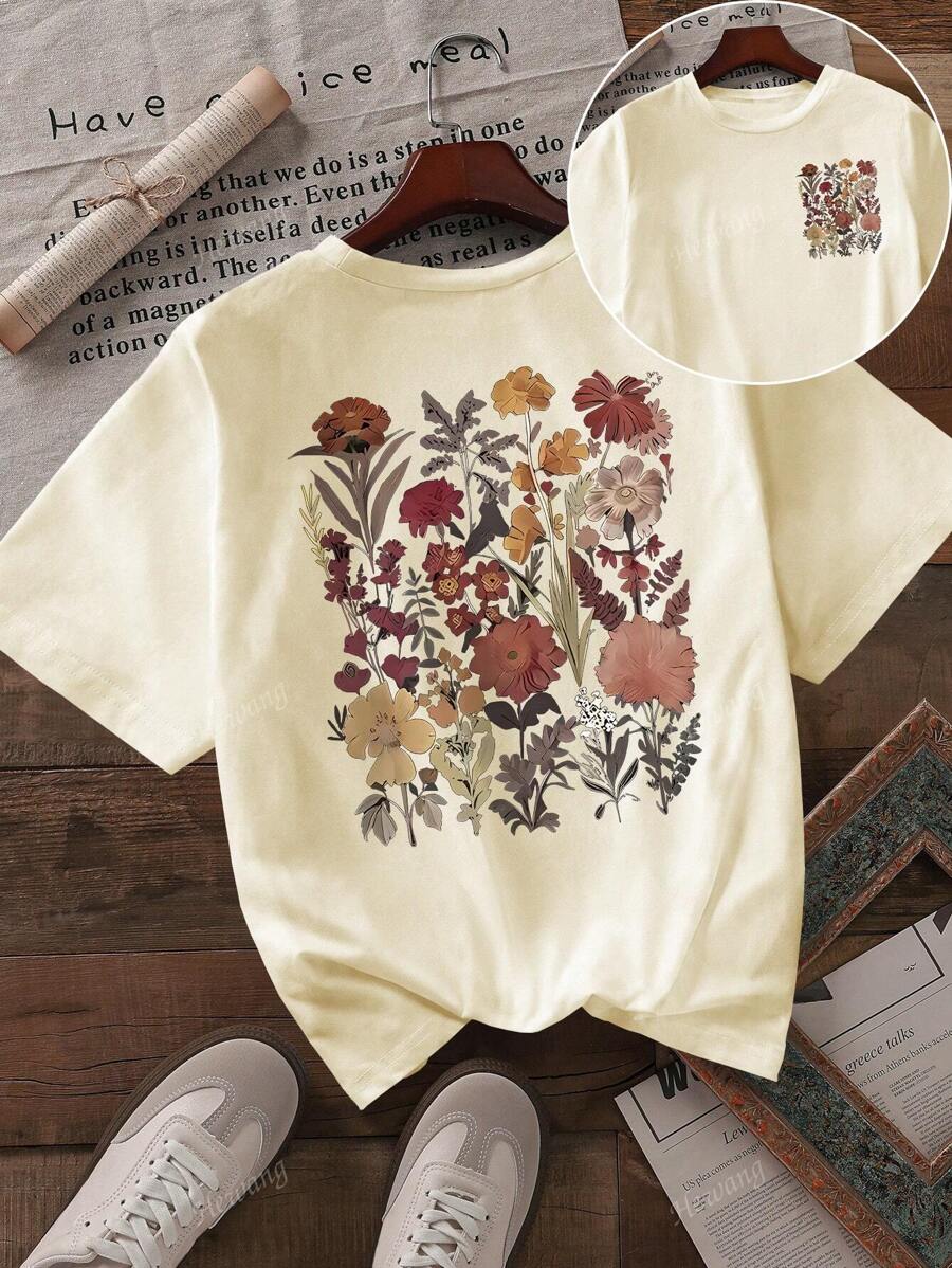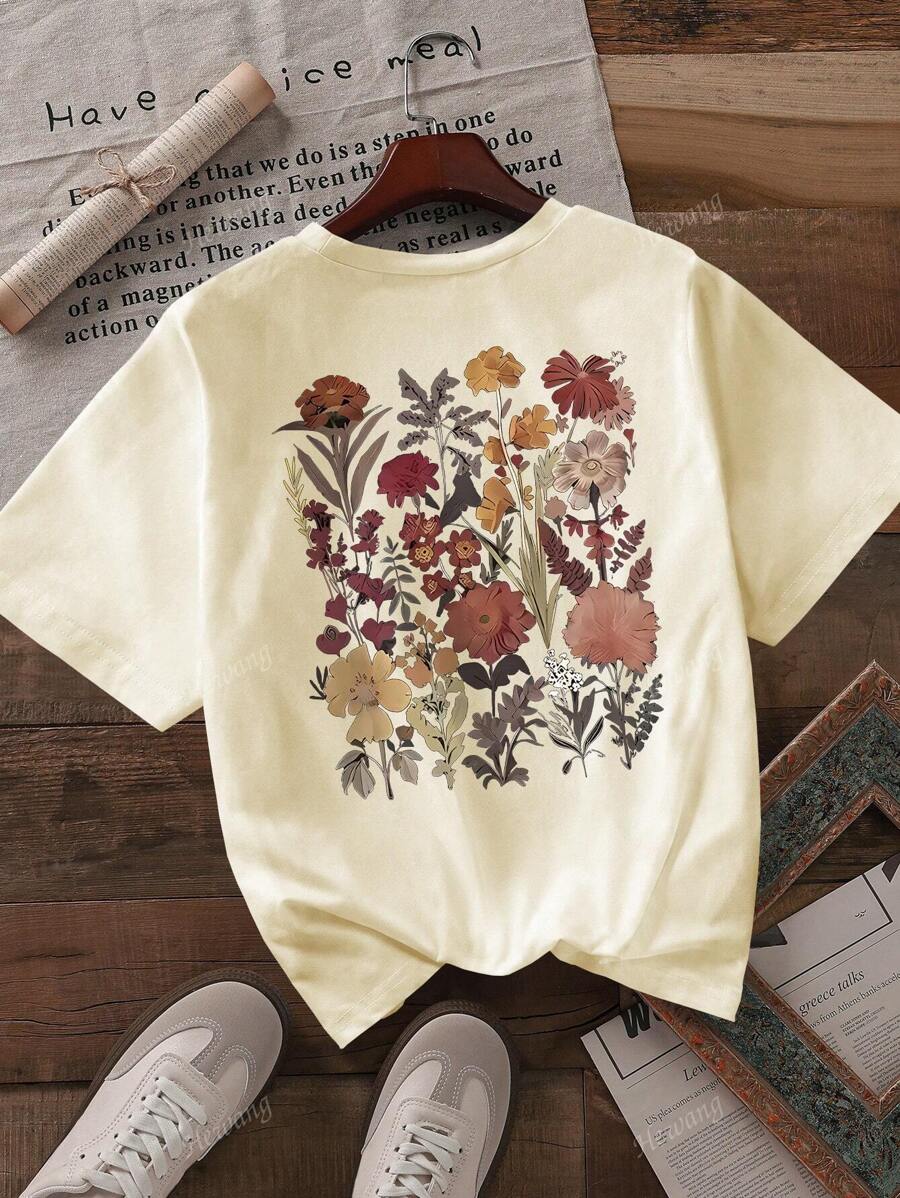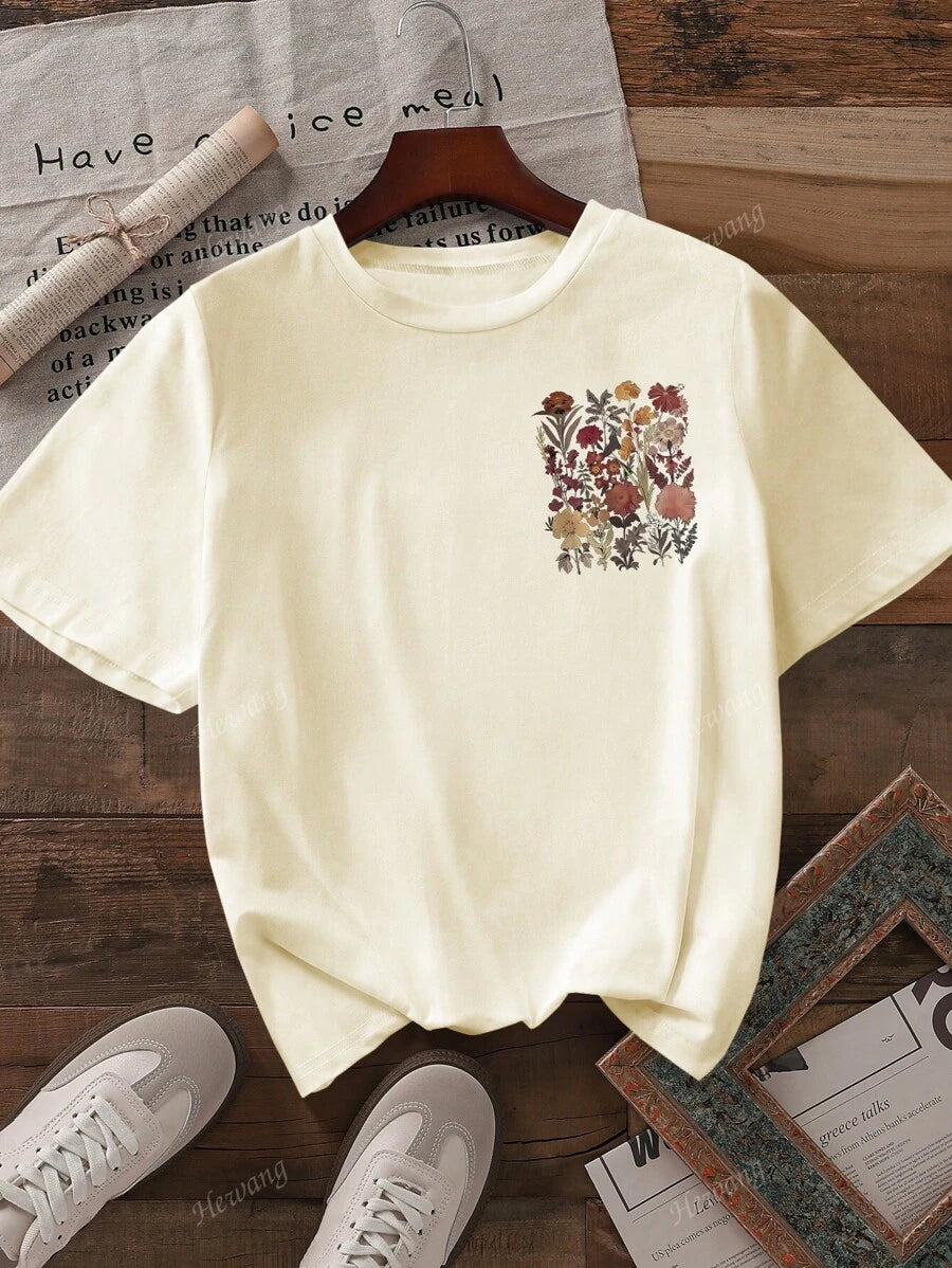 تيشيرت نسائي كاجوال بياقة مستديرة وأكمام قصيرة