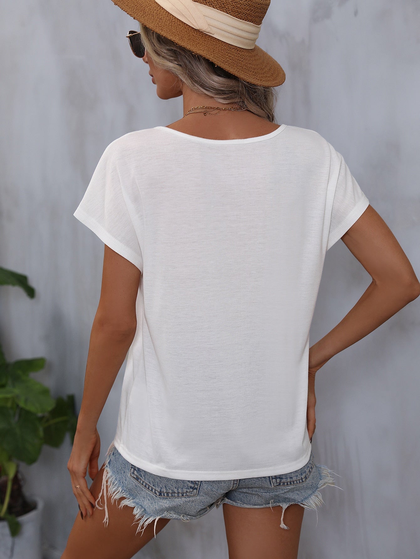 تي شيرت اكمام جناح الخفاش قص مجوف