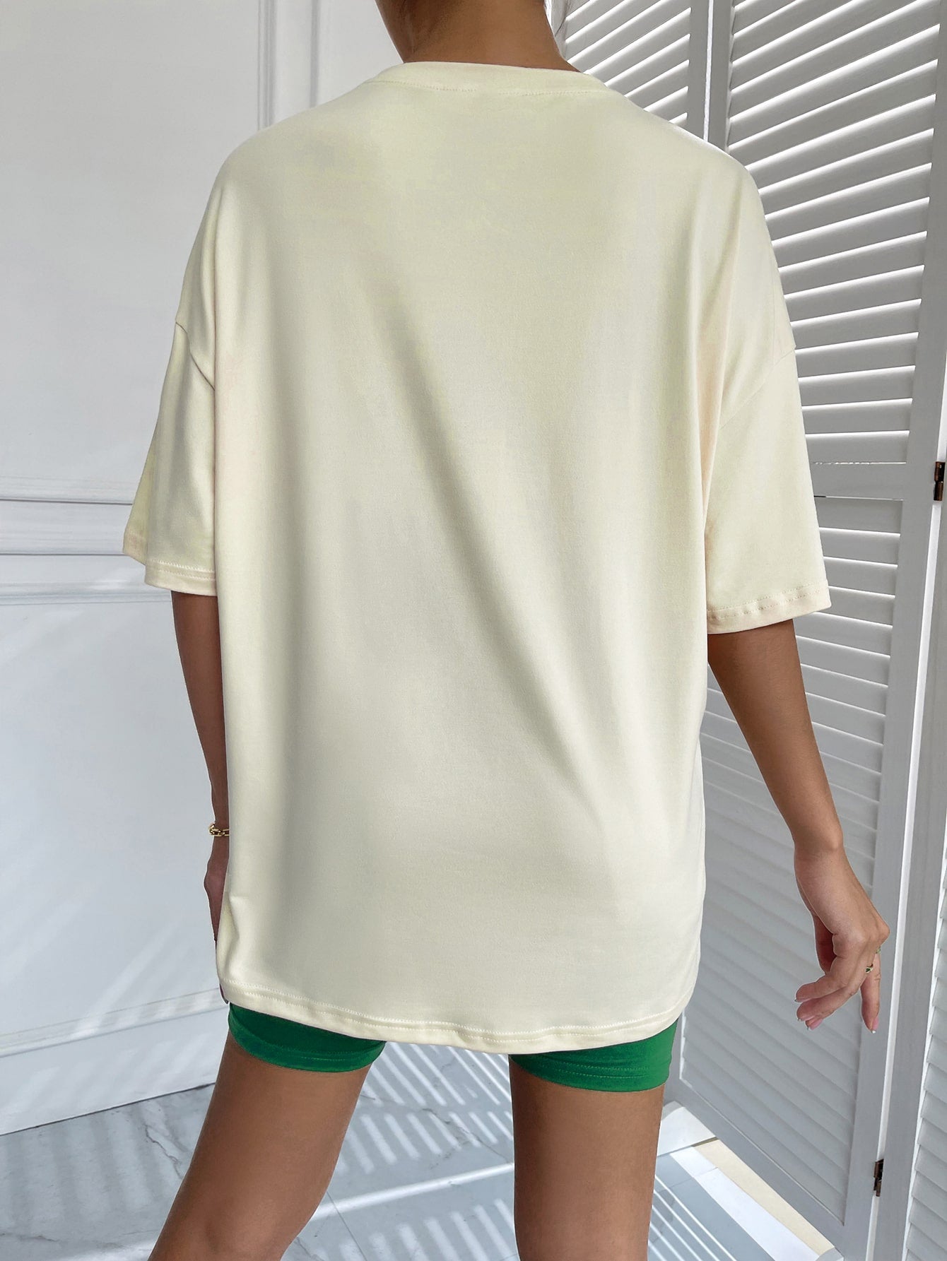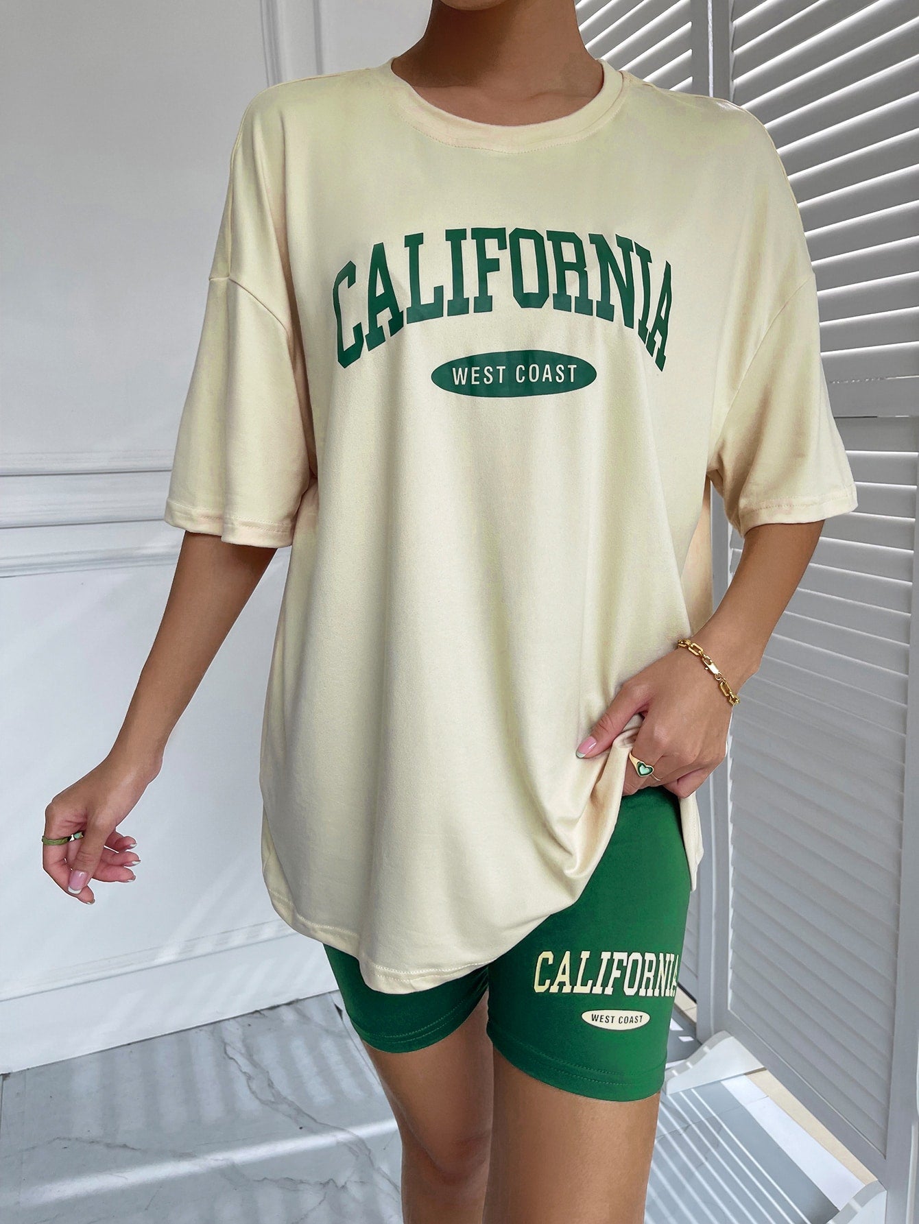 تي شيرت برسومات جرافيكية وأكتاف منسدلة وشورت لراكبي الدراجات النارية