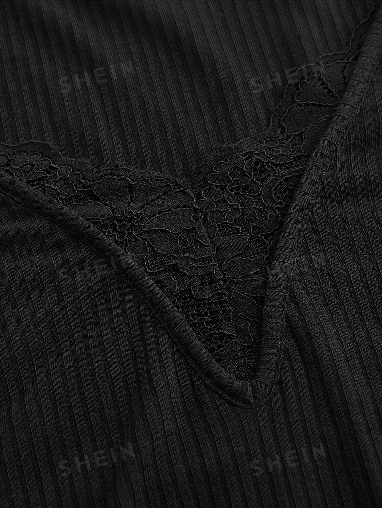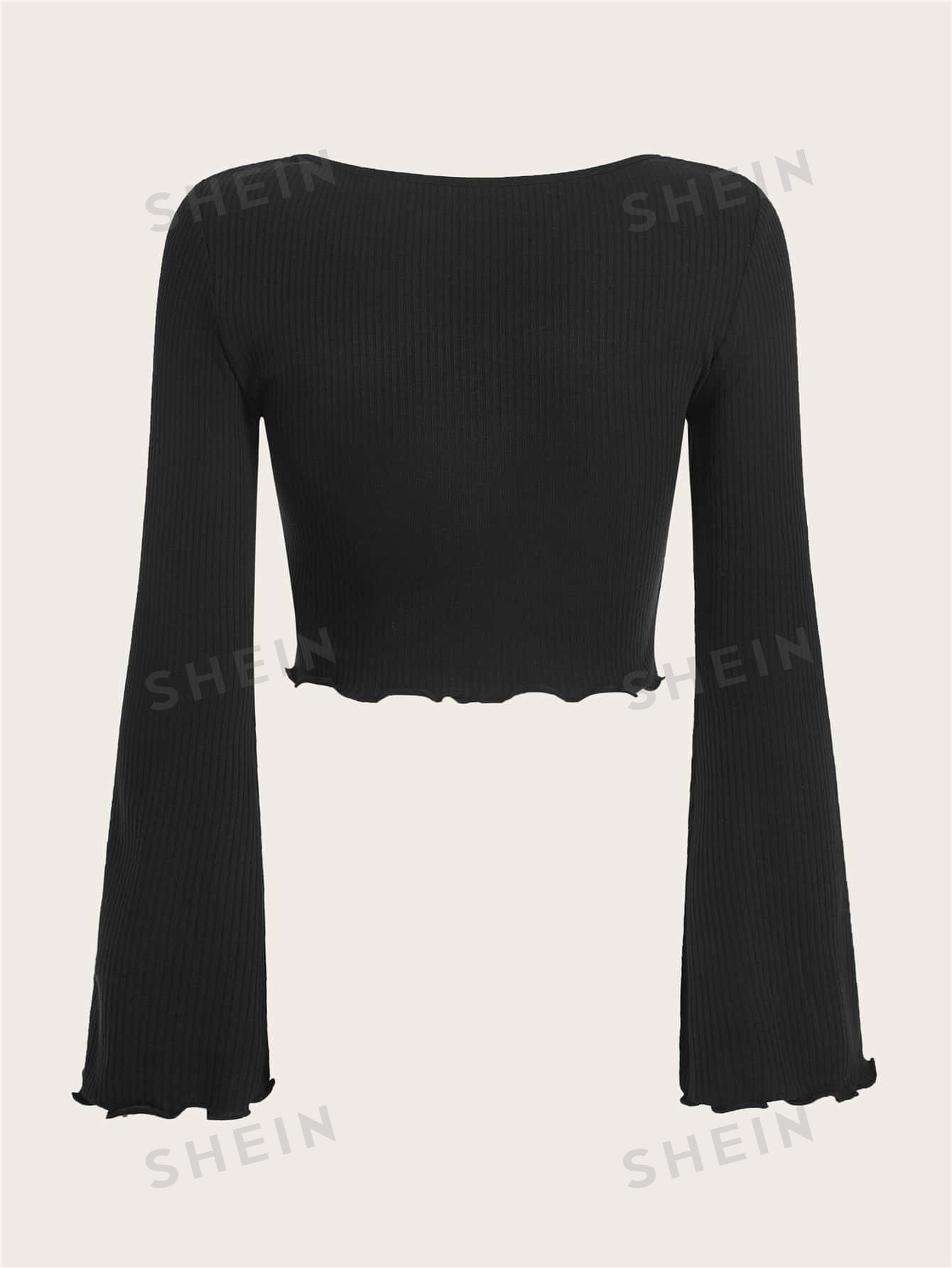 تي شيرت قصير موسيقى الروك المنحطة مقلم دانتيل اكمام على شكل بوق