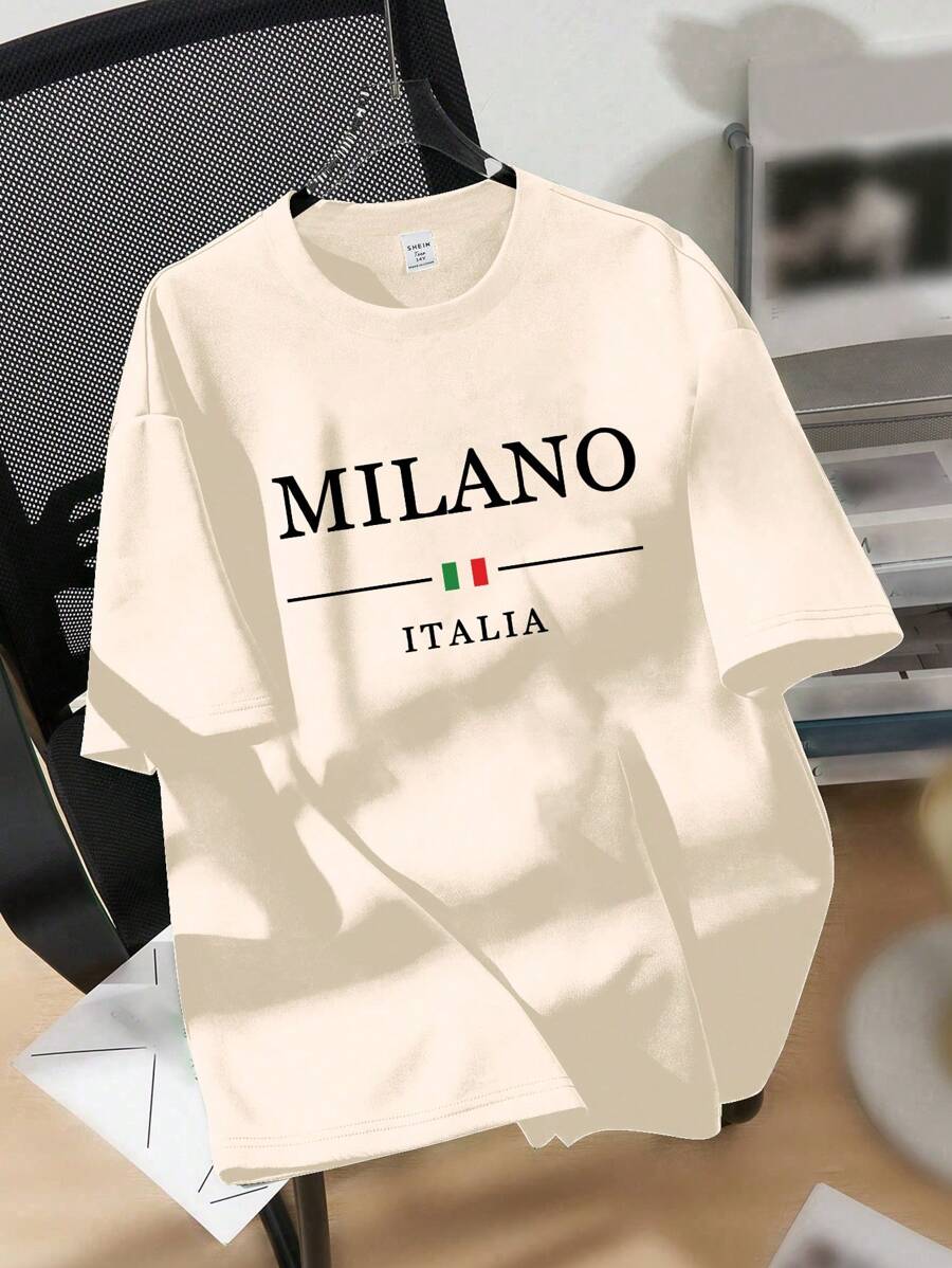 تي شيرت كاجوال بأكمام قصيرة وياقة مستديرة مطبوع عليه حرف للمراهقين في الصيف