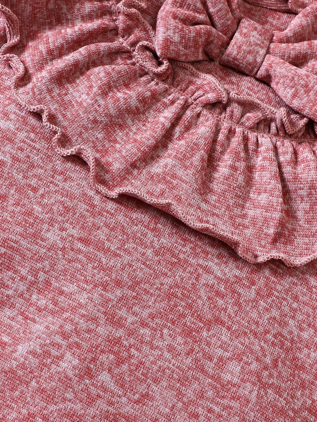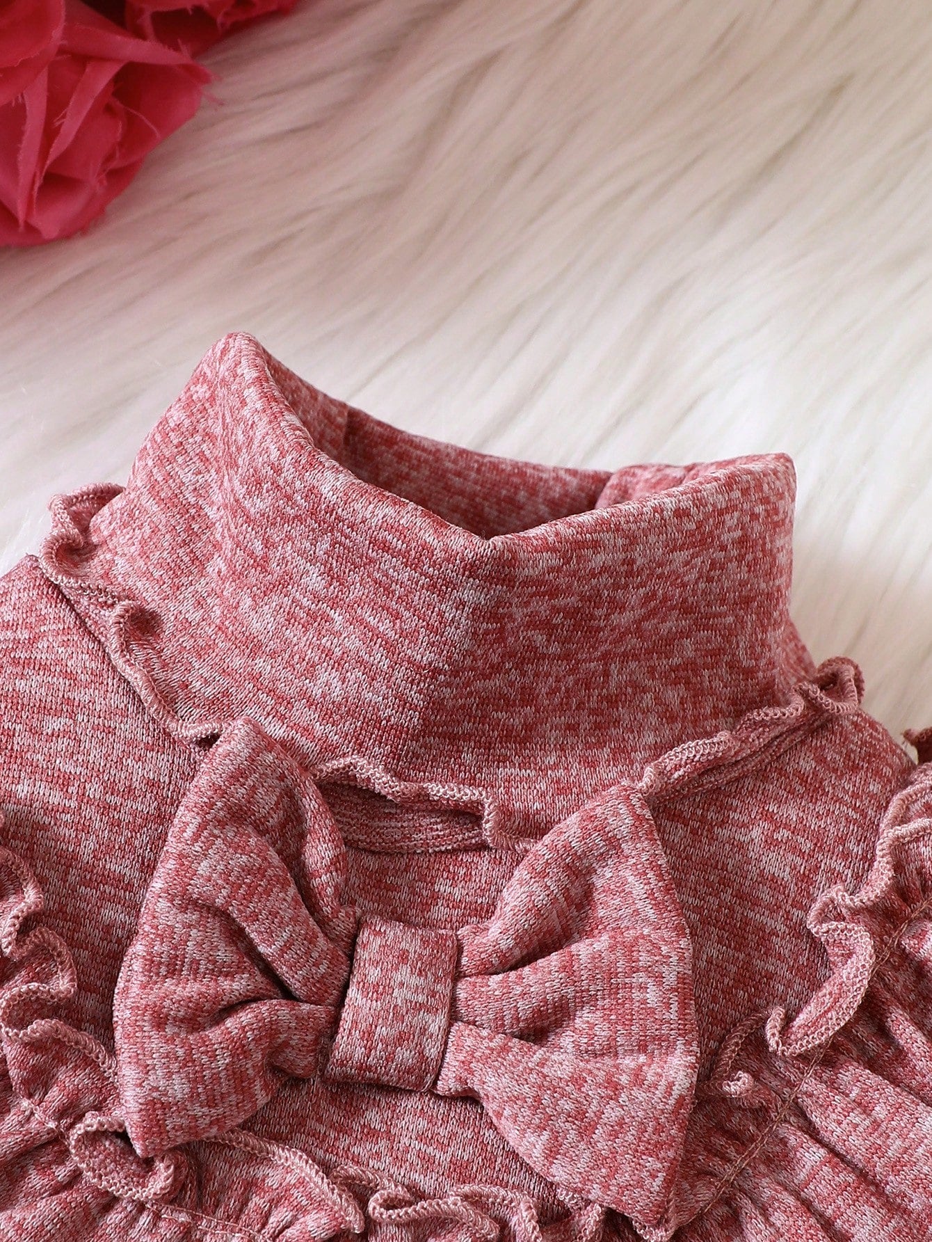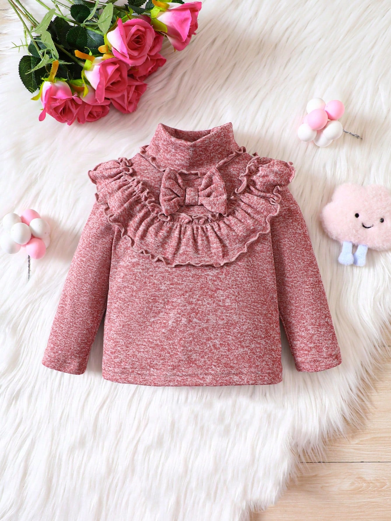 تي شيرت مقلم بكشكش عنق عالي عقدة الفراشة أمامية