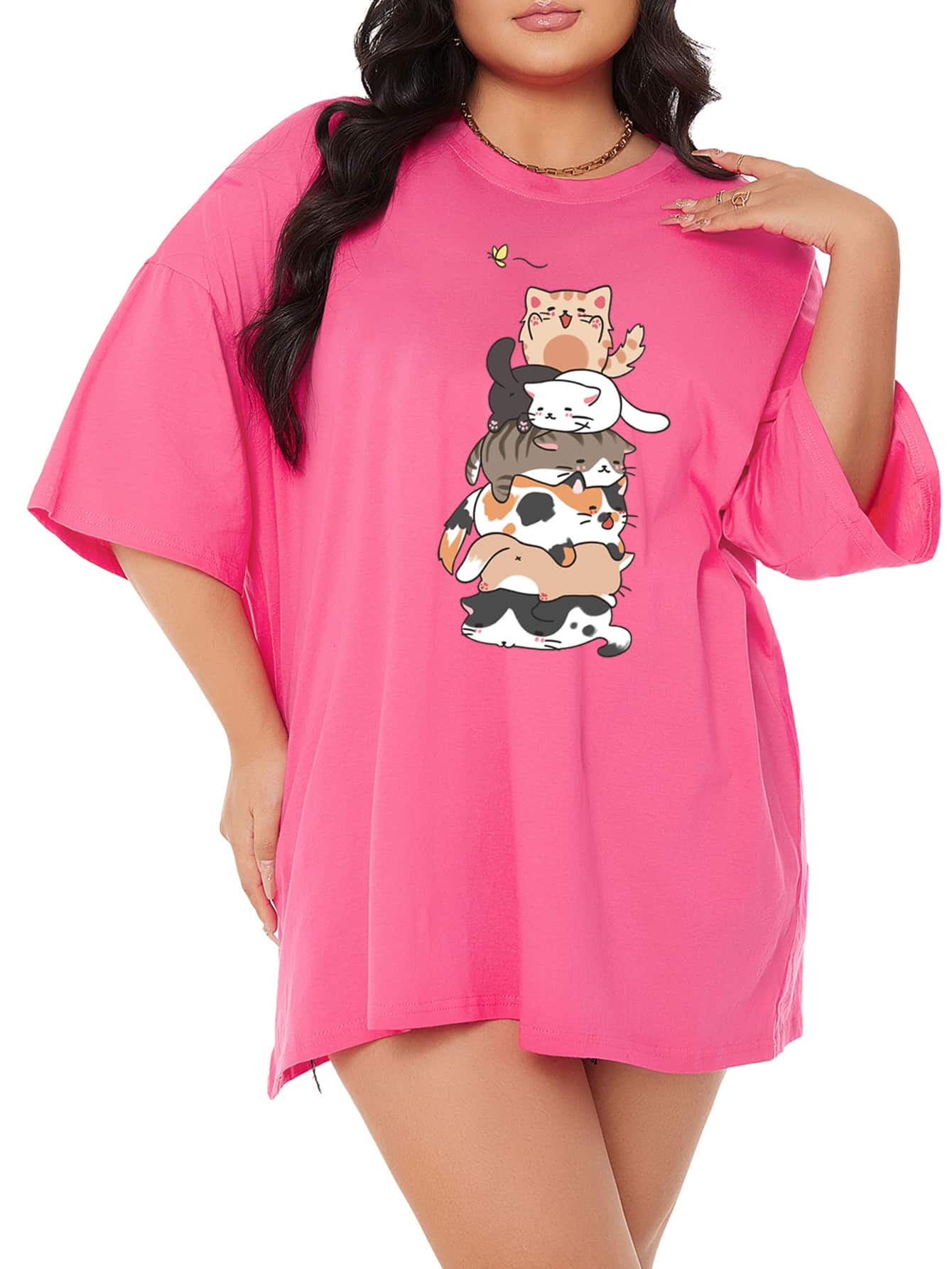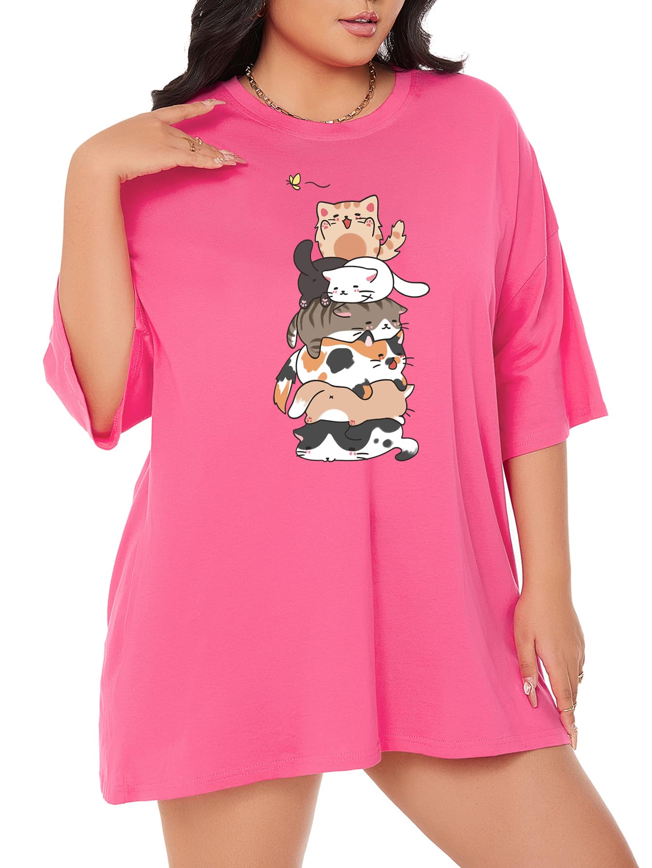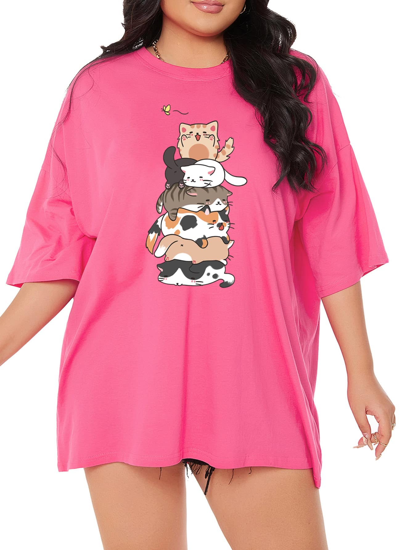 تي شيرت منخفض الاكتاف صور رسوم كارتون مقاس كبير