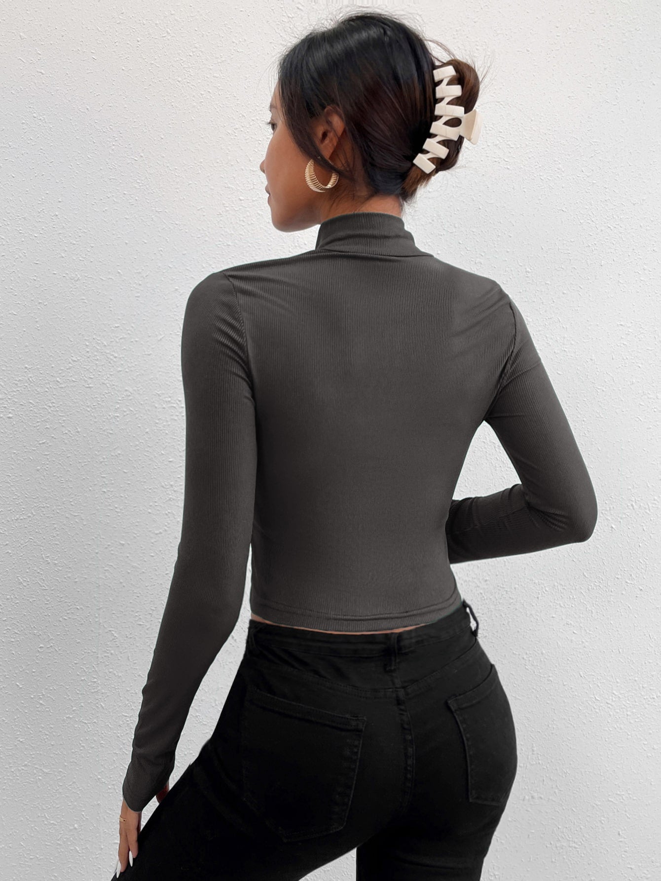 تي شيرت نحيل قصير فتحة نصف بسستة