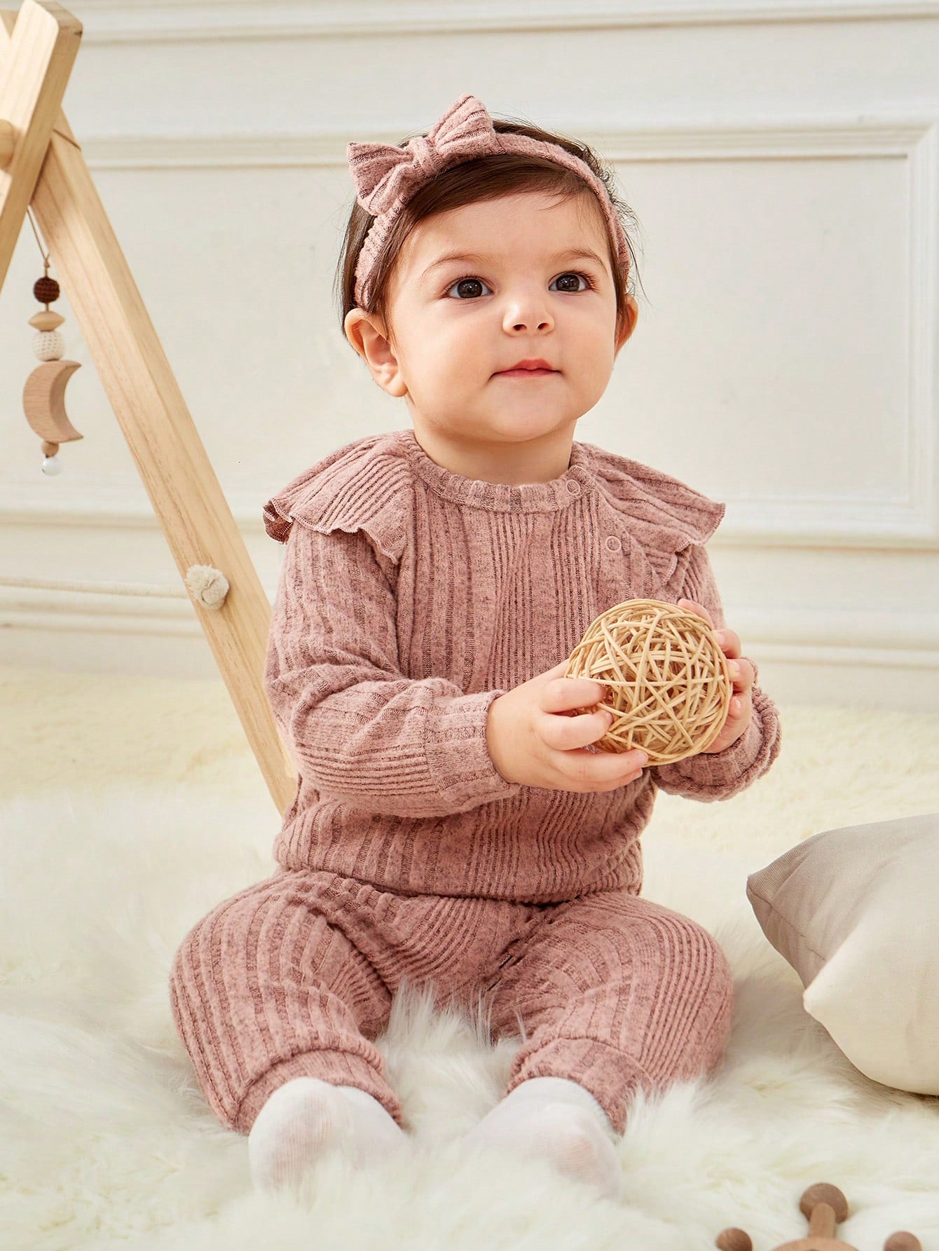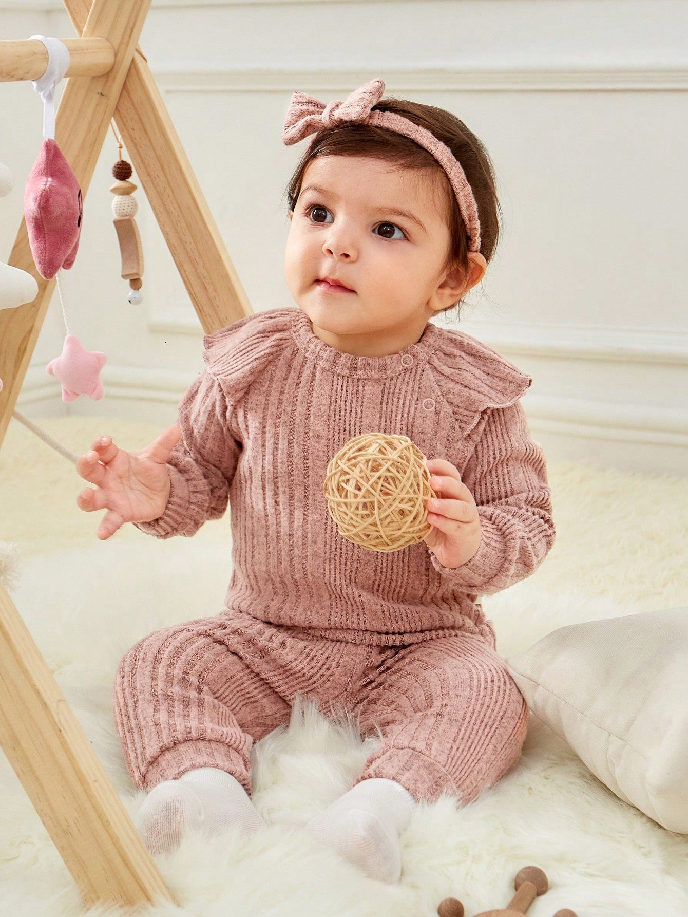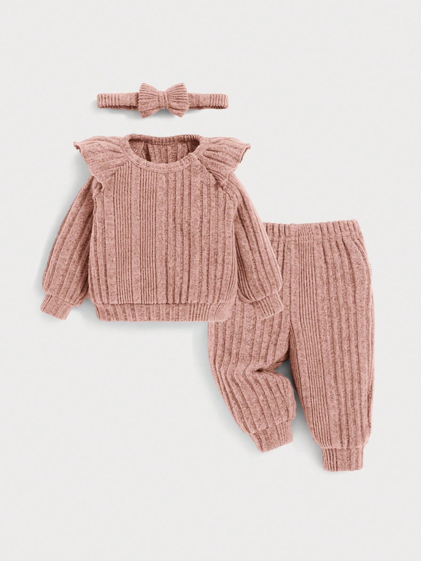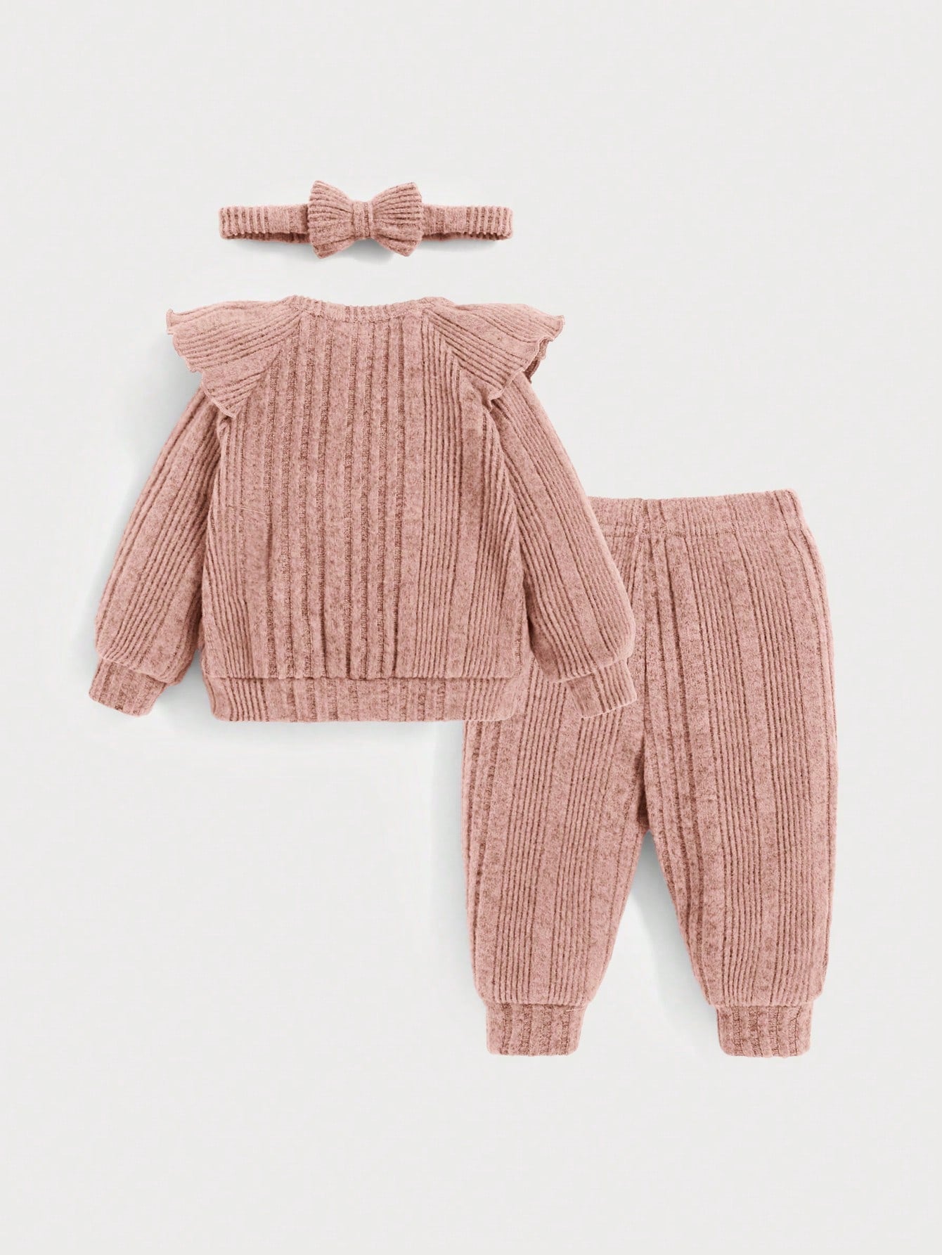 تي شيرت وبنطلون مقلم بكشكش مع عقال الرأس للبنات الاطفال
