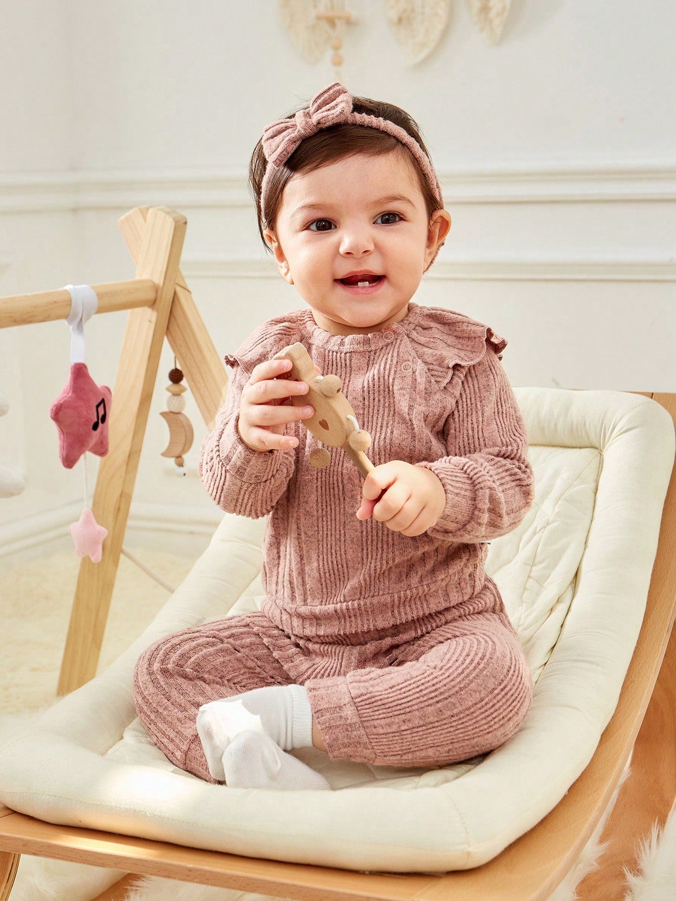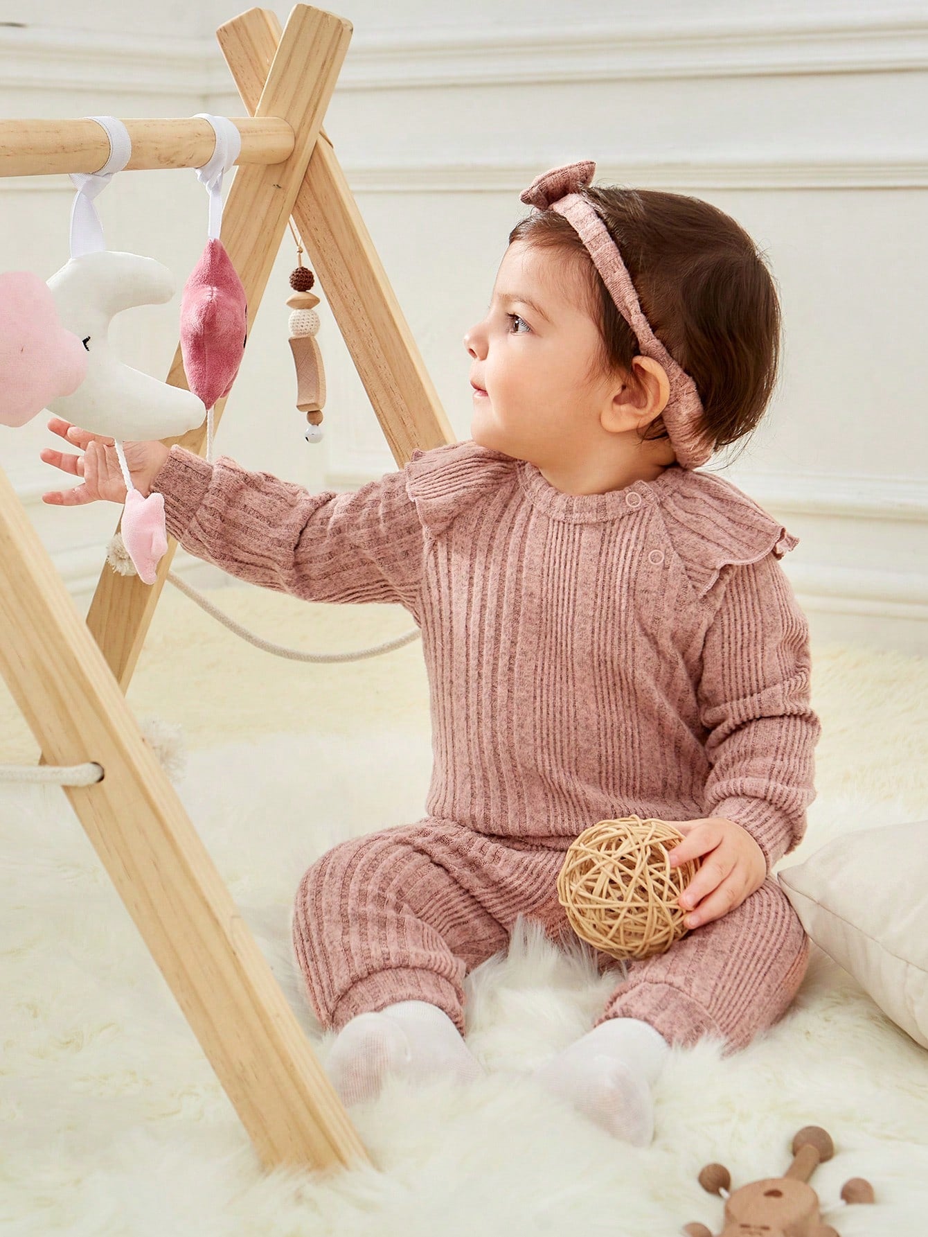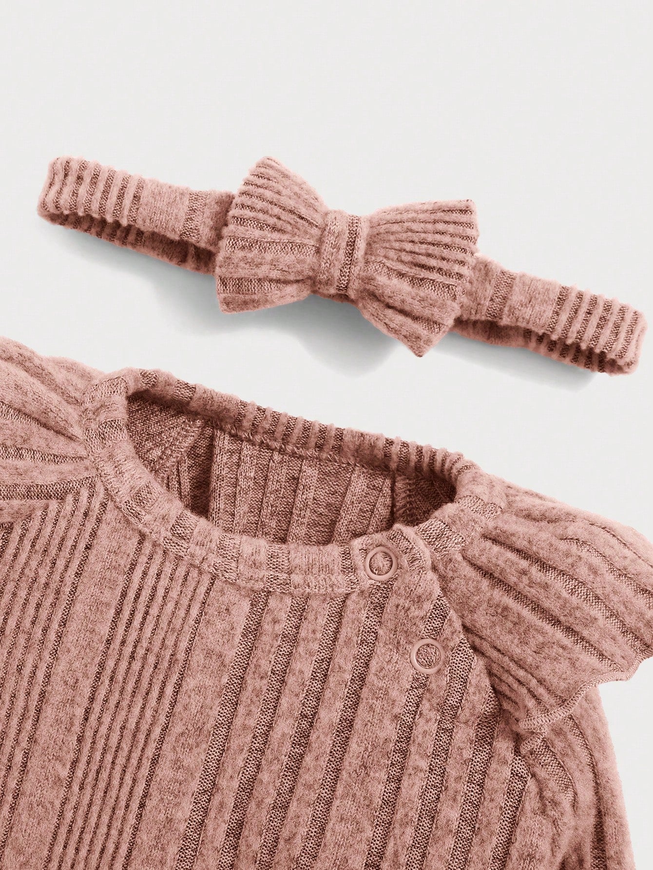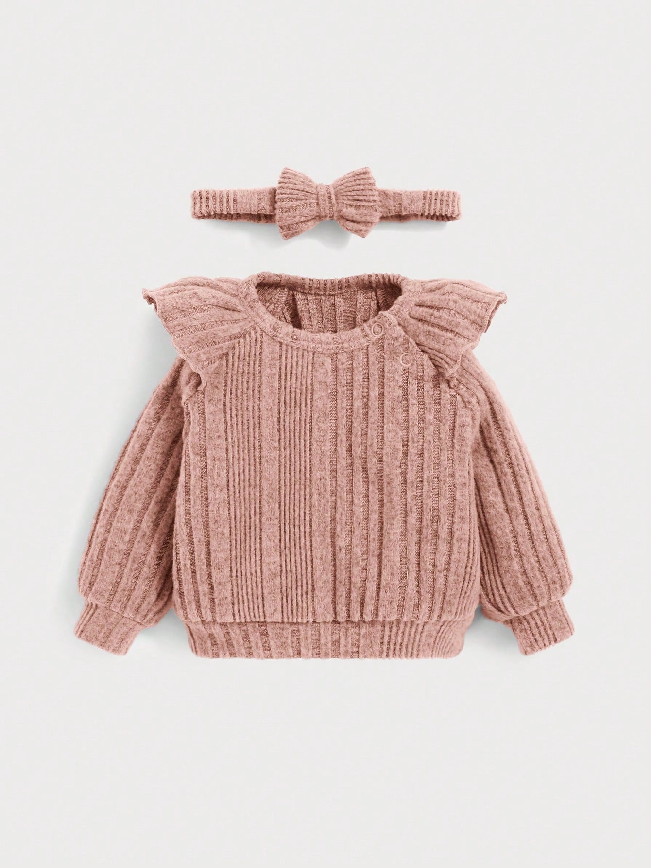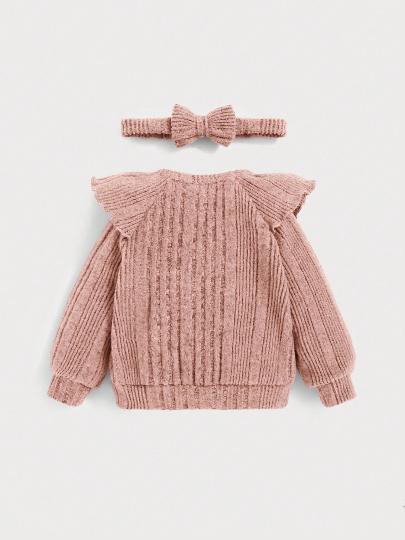 تي شيرت وبنطلون مقلم بكشكش مع عقال الرأس للبنات الاطفال