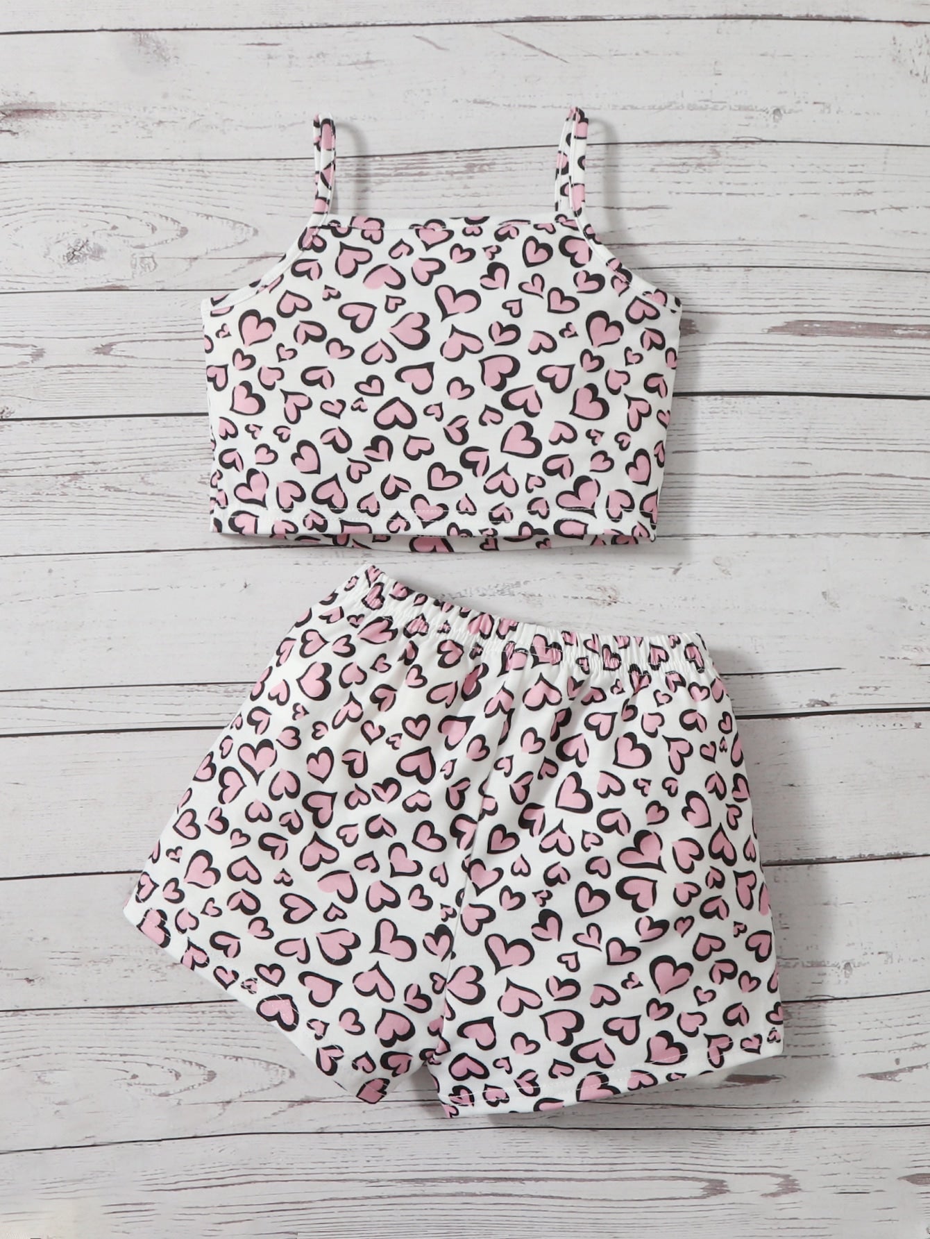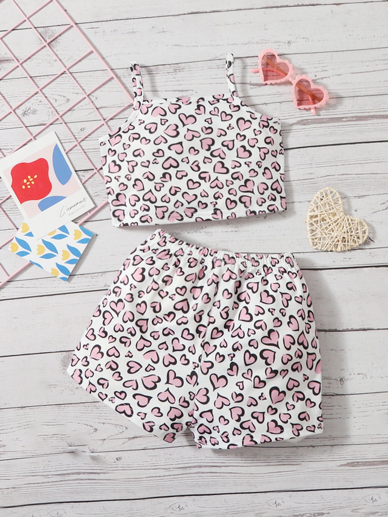 ثوب الكام مع البنطلون القصير بطباعة قلب شامل للاطفال