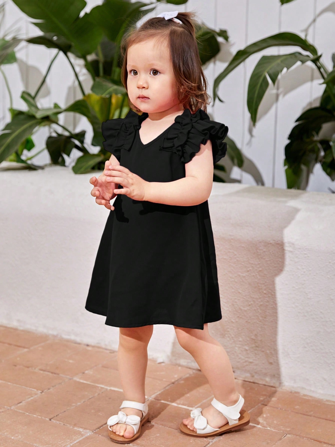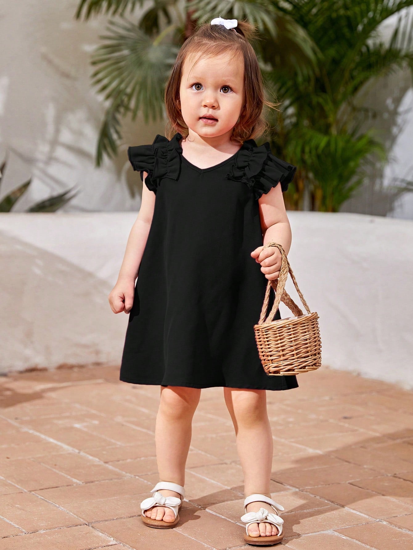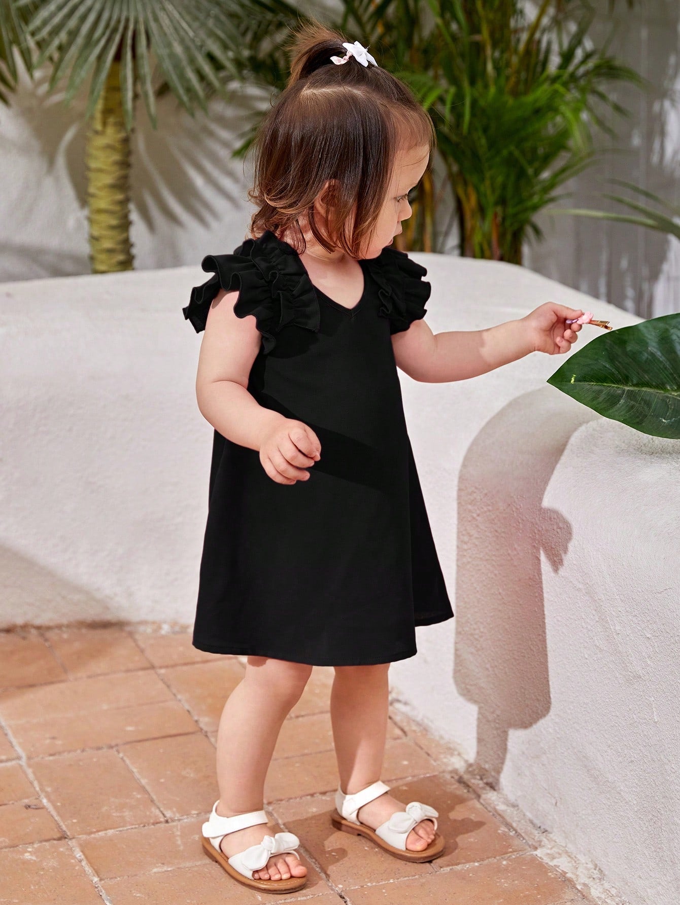 ثوب لطيف بحافة مكشكشة مريح للأطفال الصغيرات مناسب للصيف
