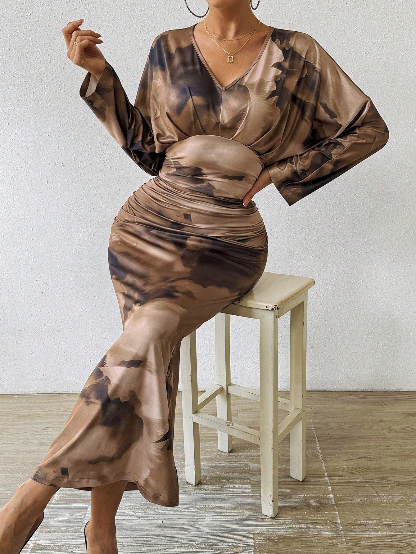 ثوب ملتف بقبة عالية الرباط نسائي بأكمام الخفاش ملون بتقويرة غير متماثلة