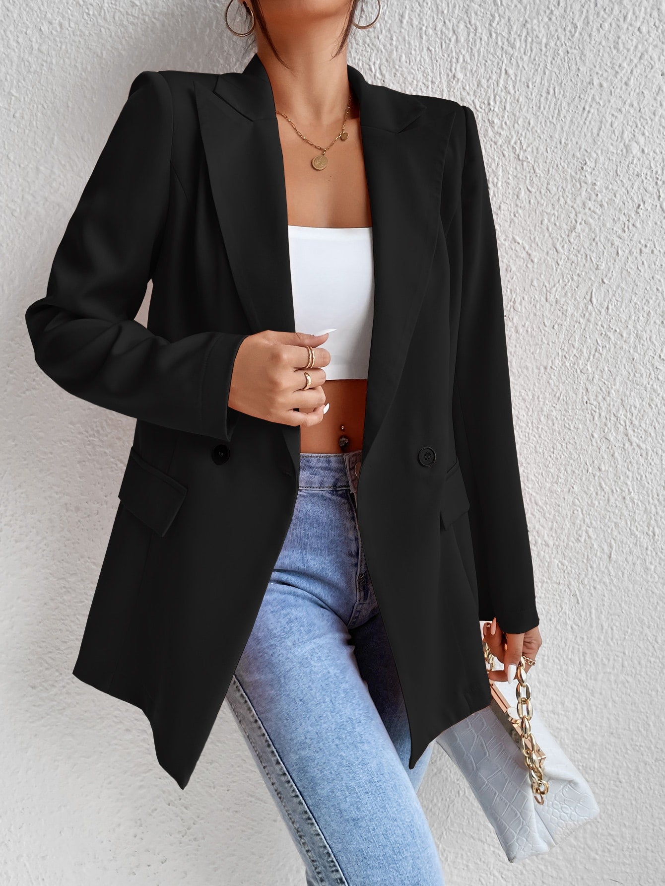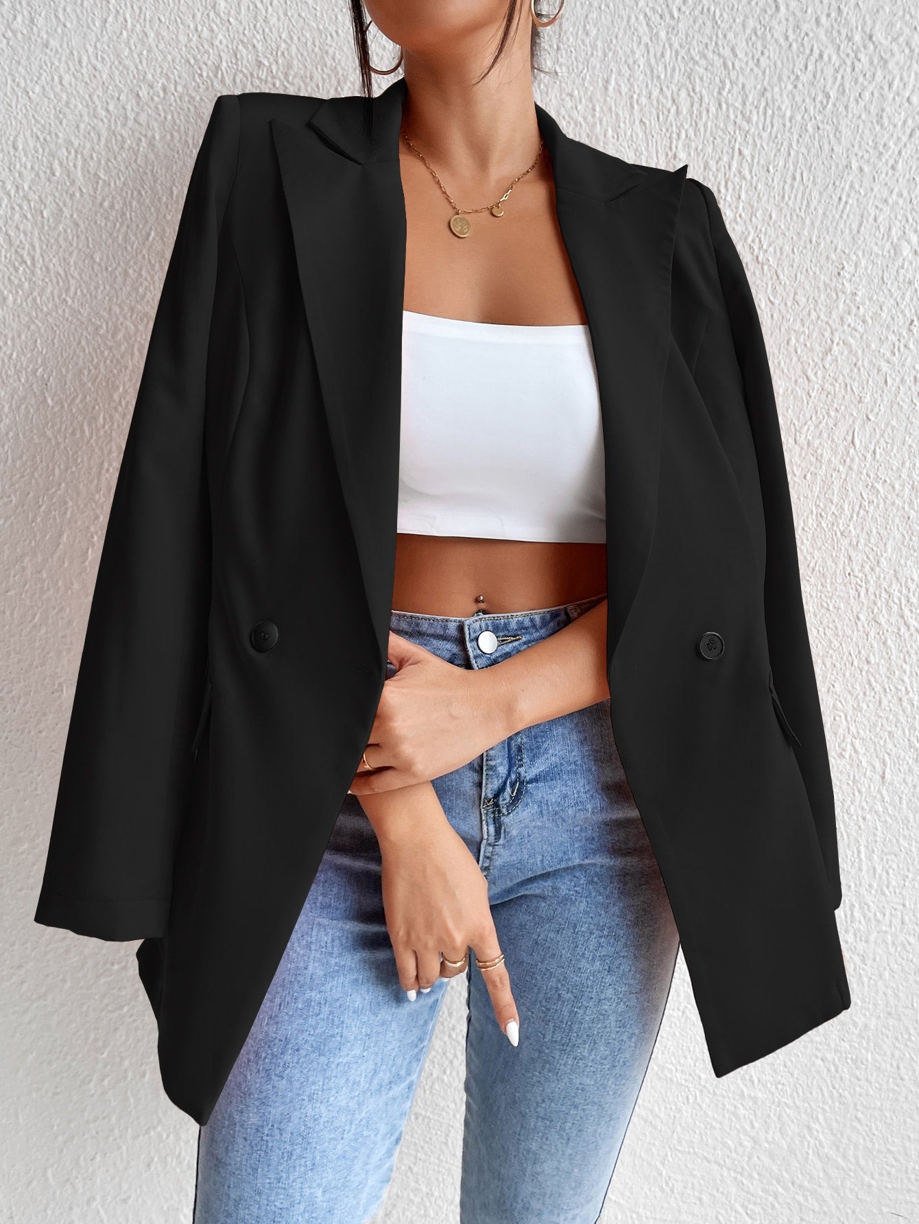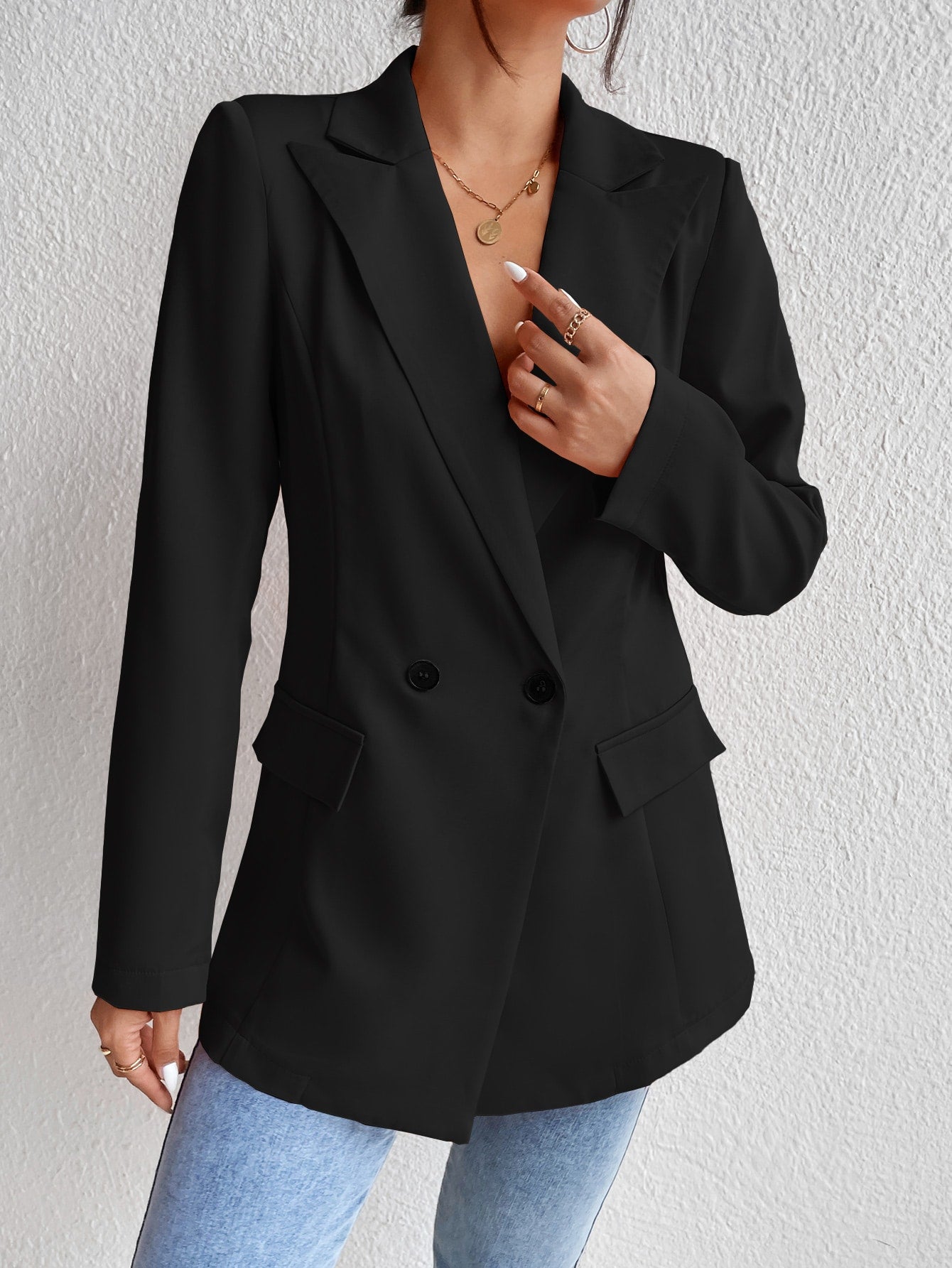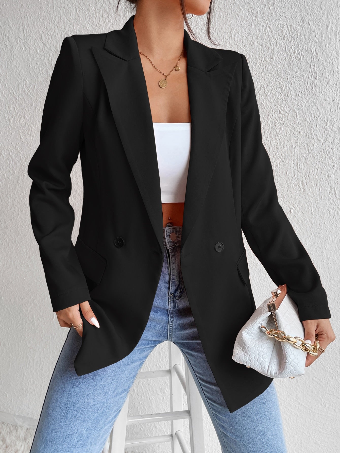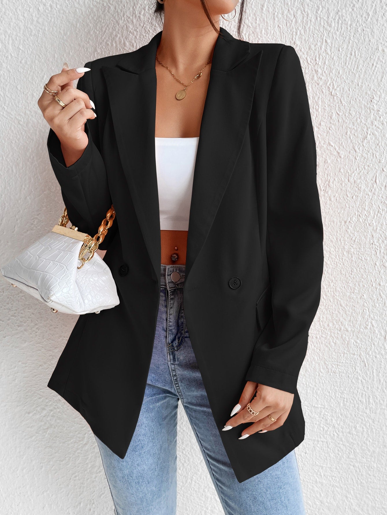 جاكيت أزرار مزدوجة ياقة مطوي مسنن