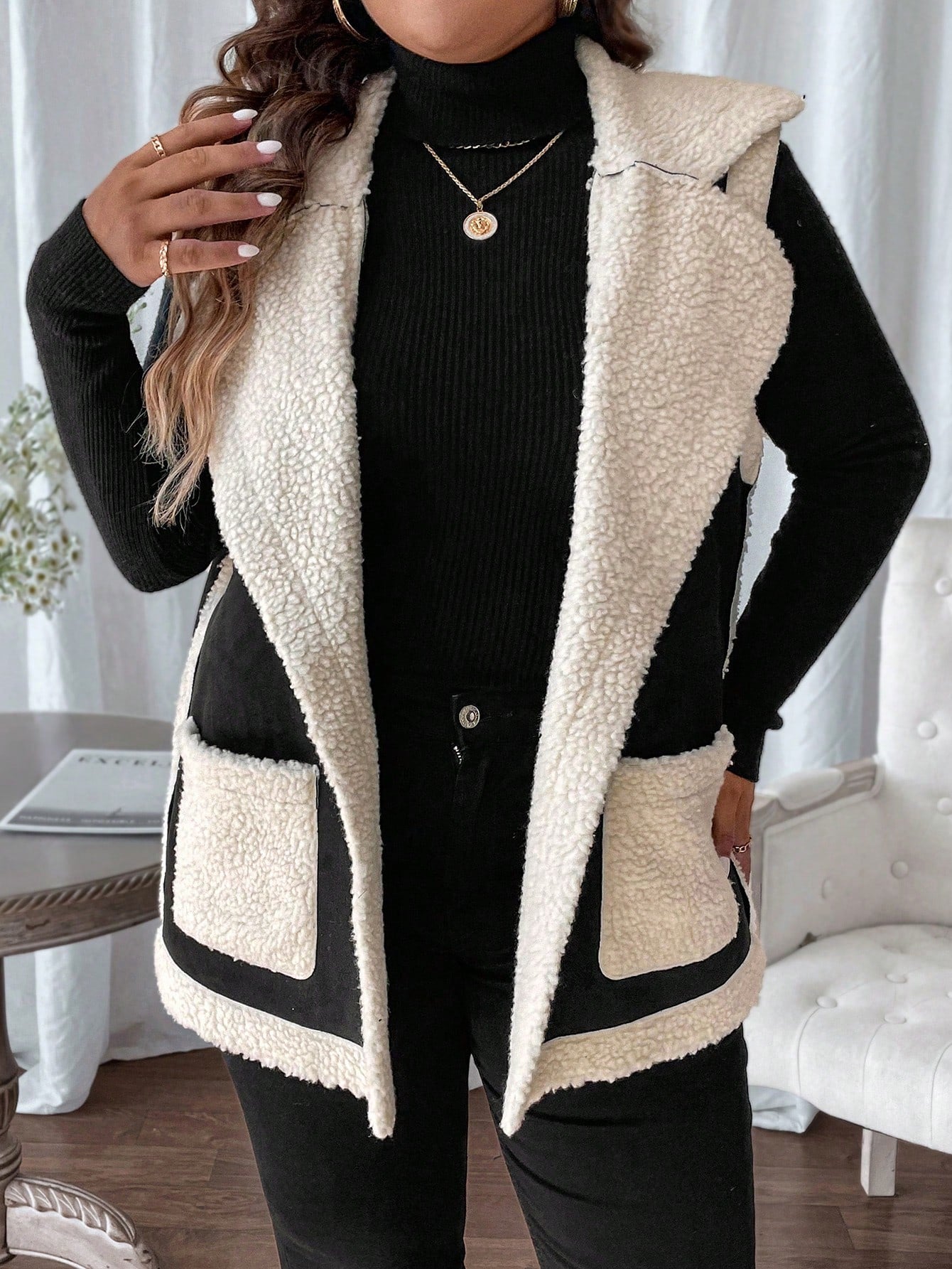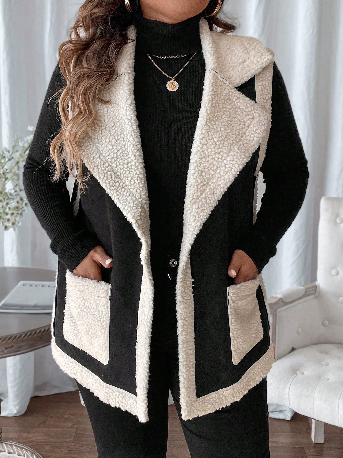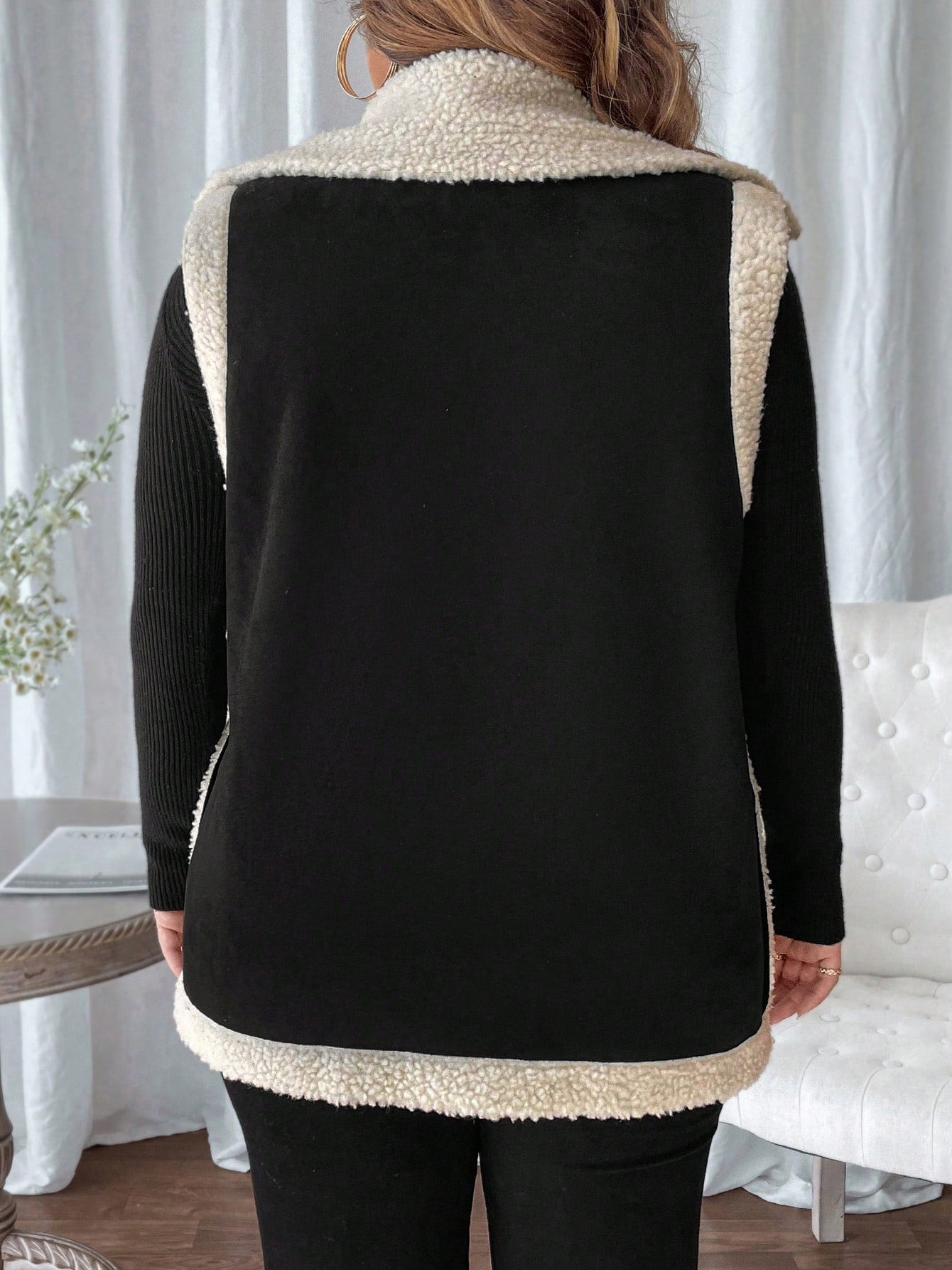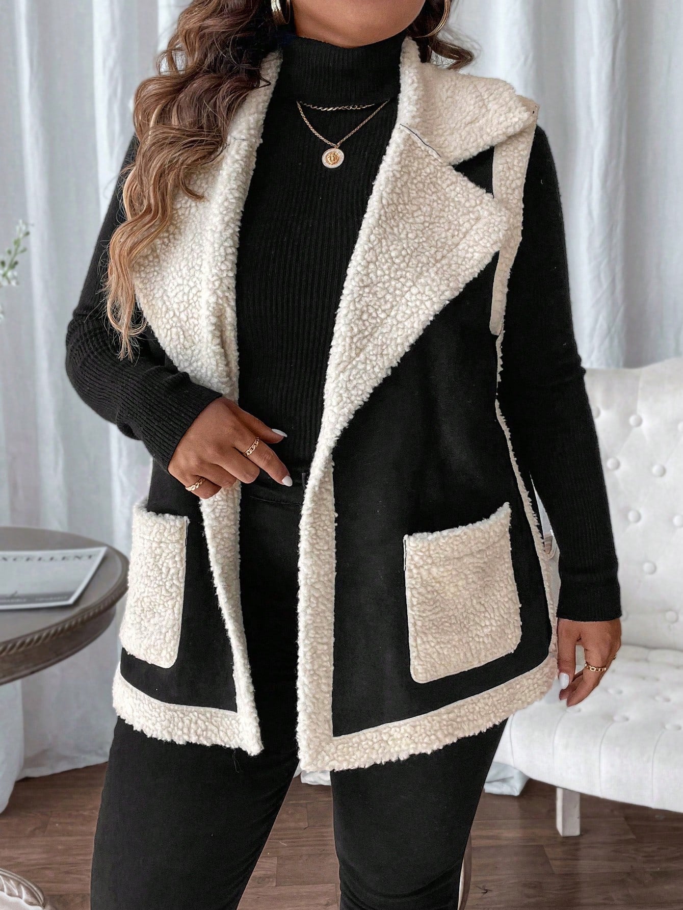 جاكيت أنيق للمرأة بياقة عالية ومجاثم بدون أكمام