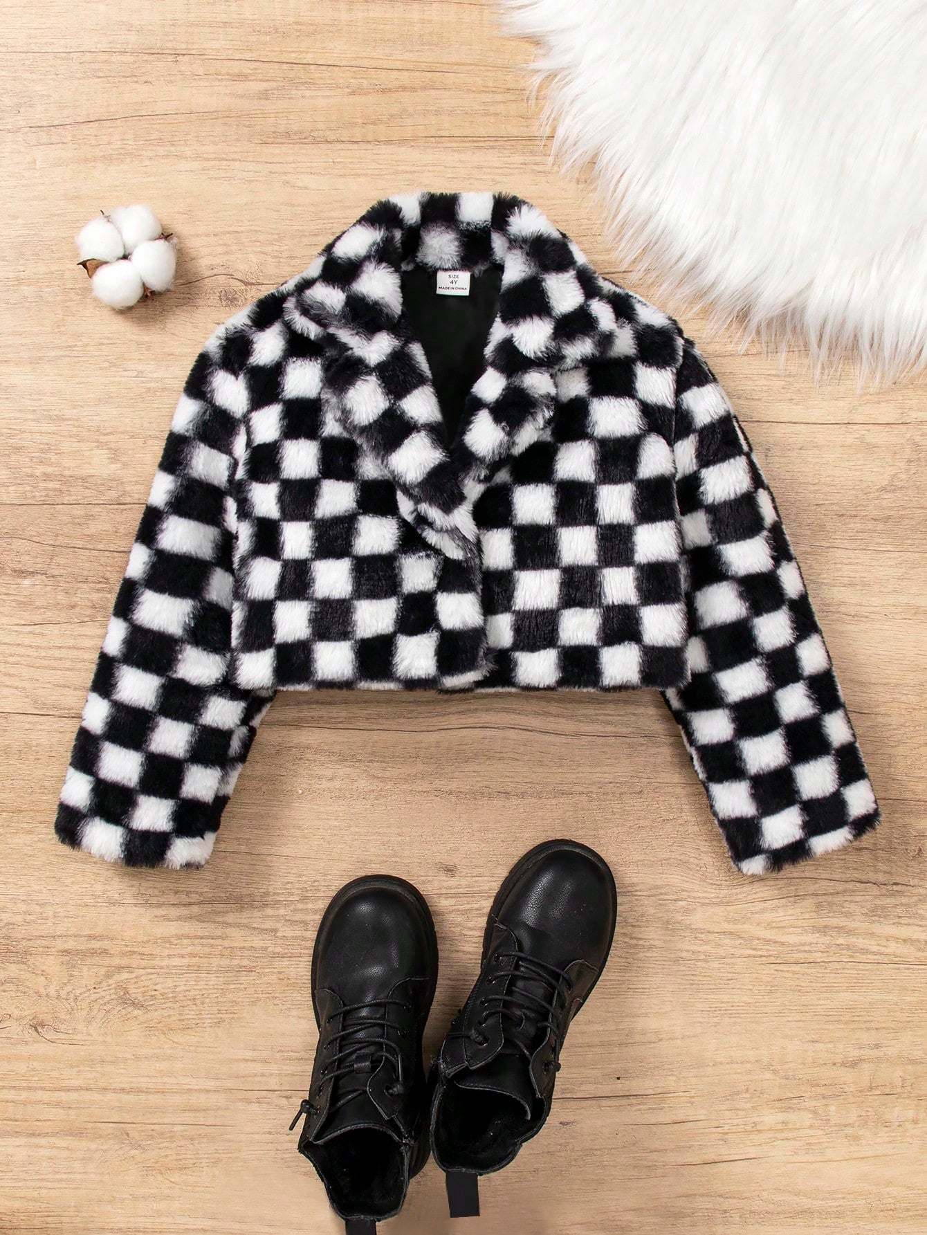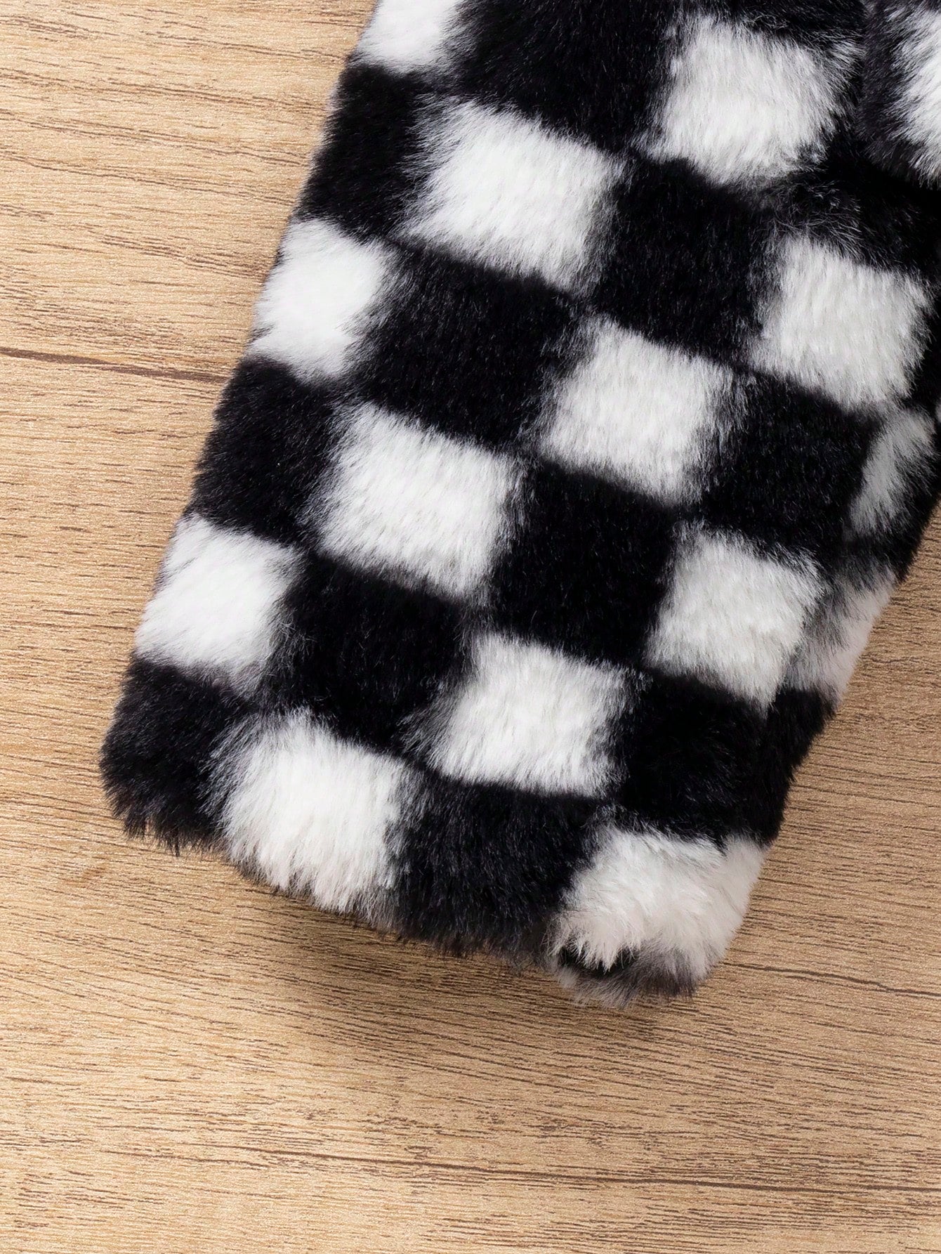 جاكيت تيدي نمط رقعة الشطرنج منخفض الاكتاف بنت طفل