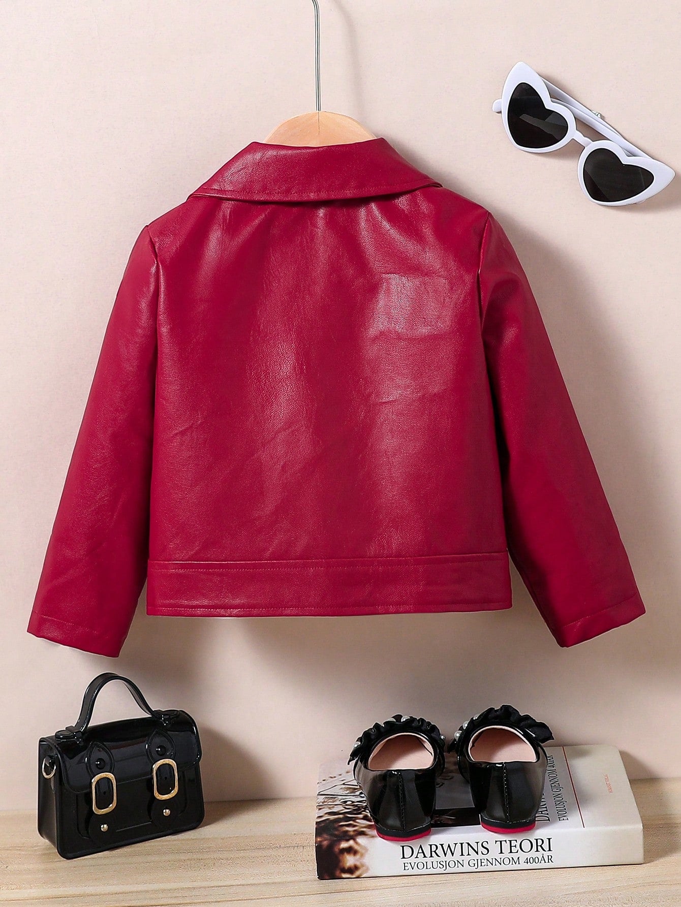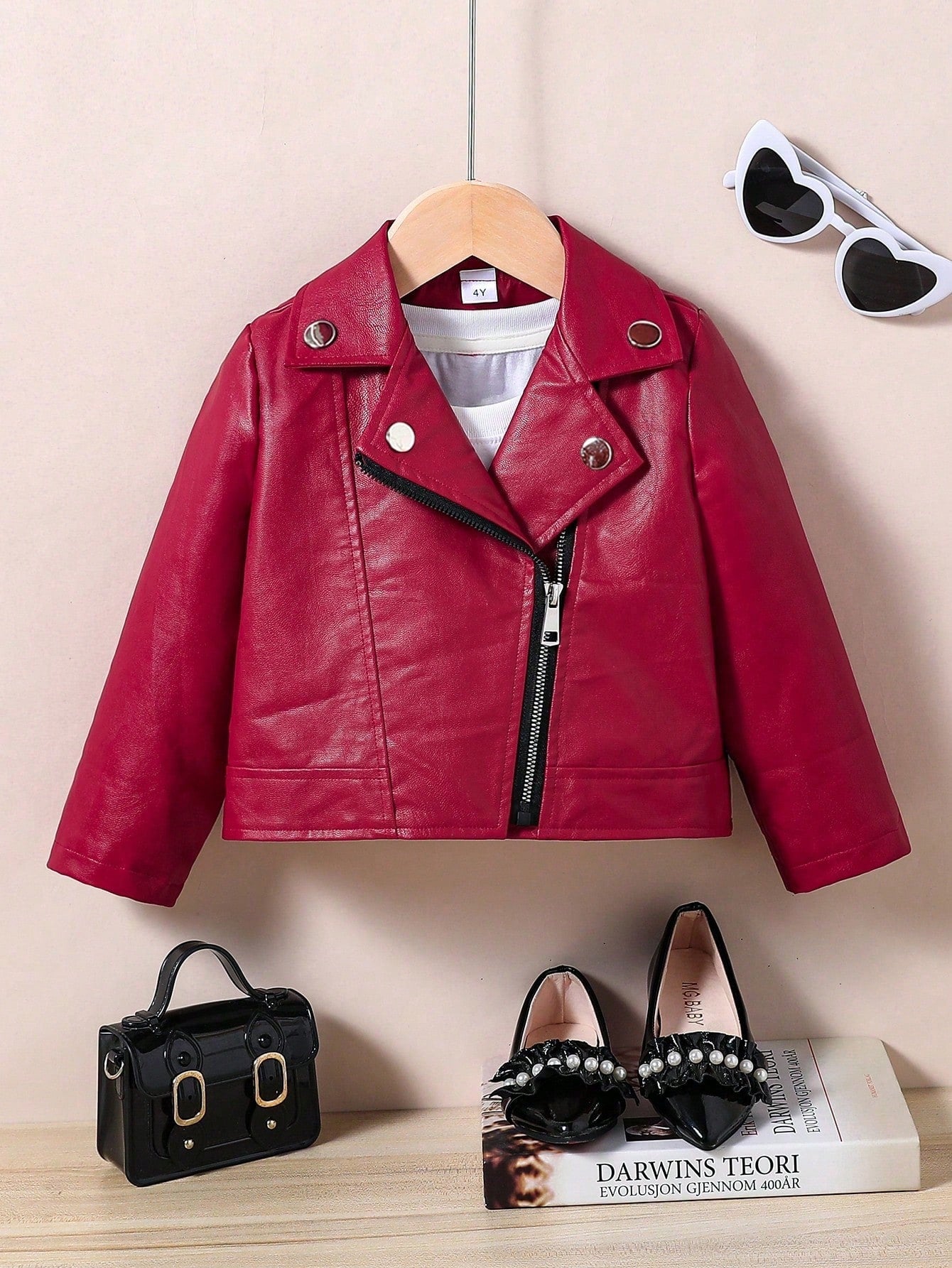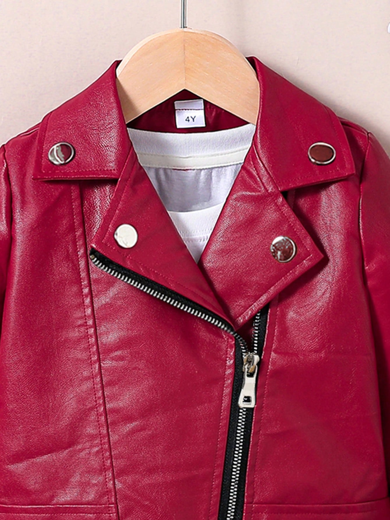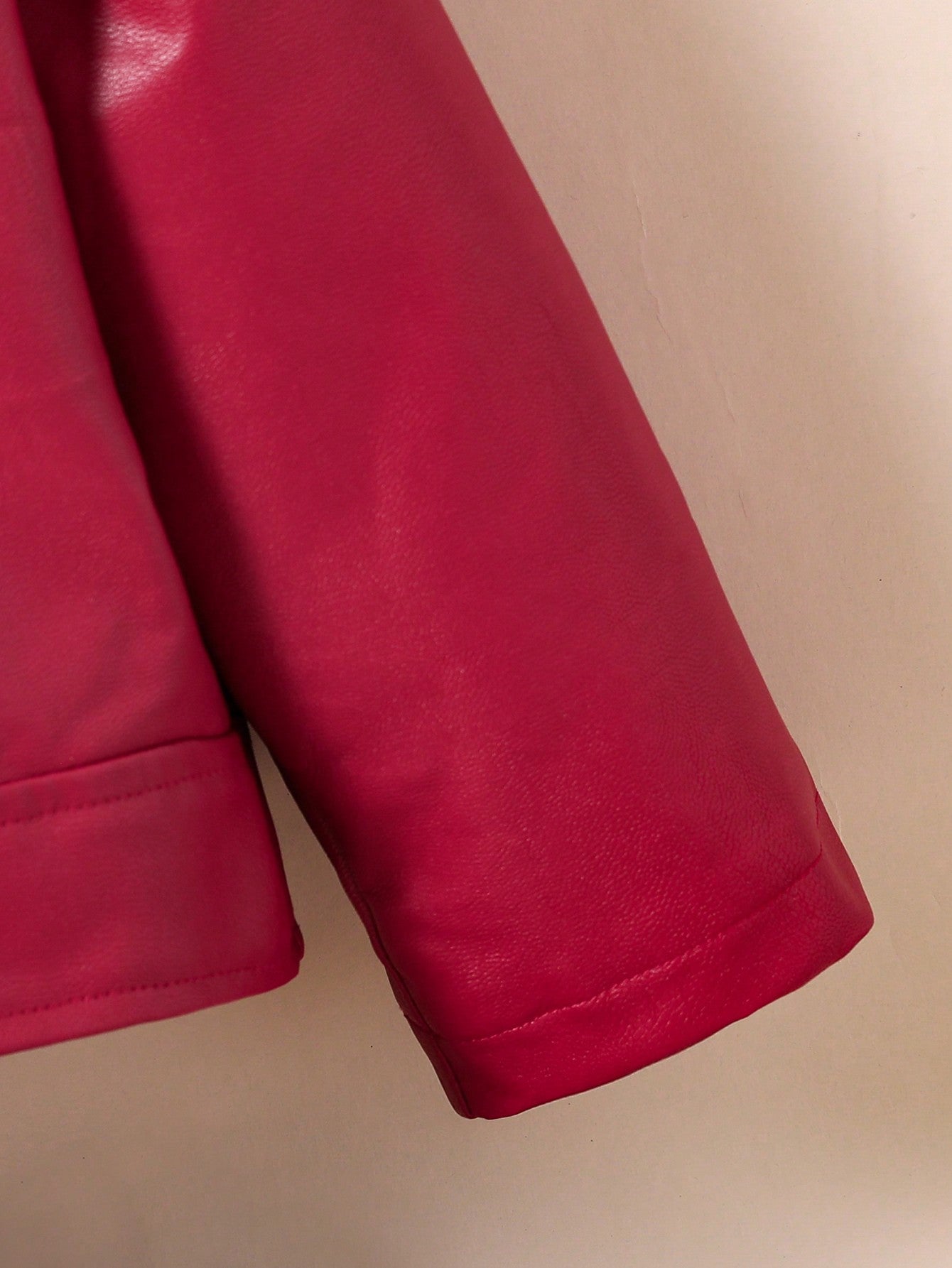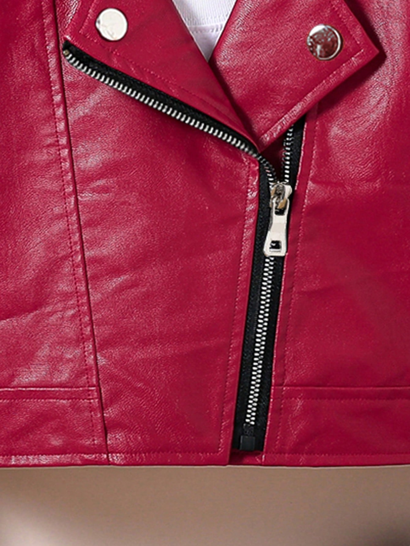 جاكيت جلدية طويلة الأكمام بياقة سحاب على طراز الدرّاجة النارية للفتاة الأنيقة