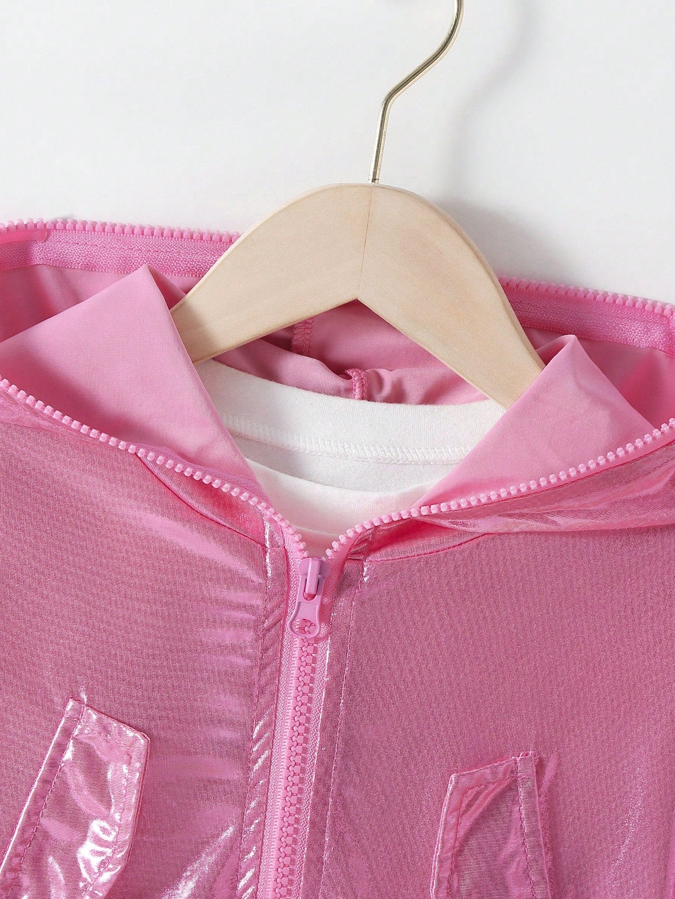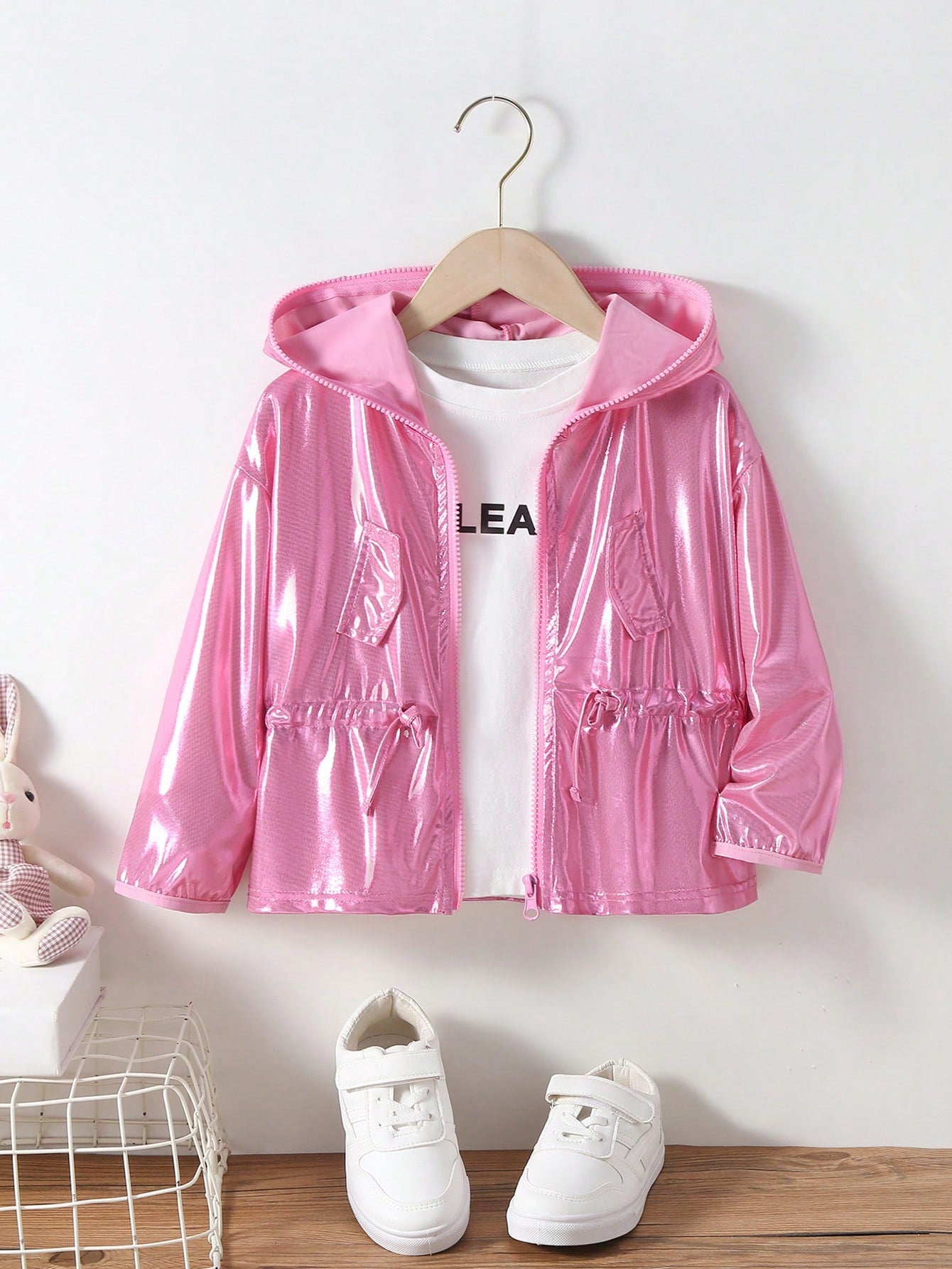 جاكيت سستة رباط خصر قبعة بدون تي شيرت بنت طفل