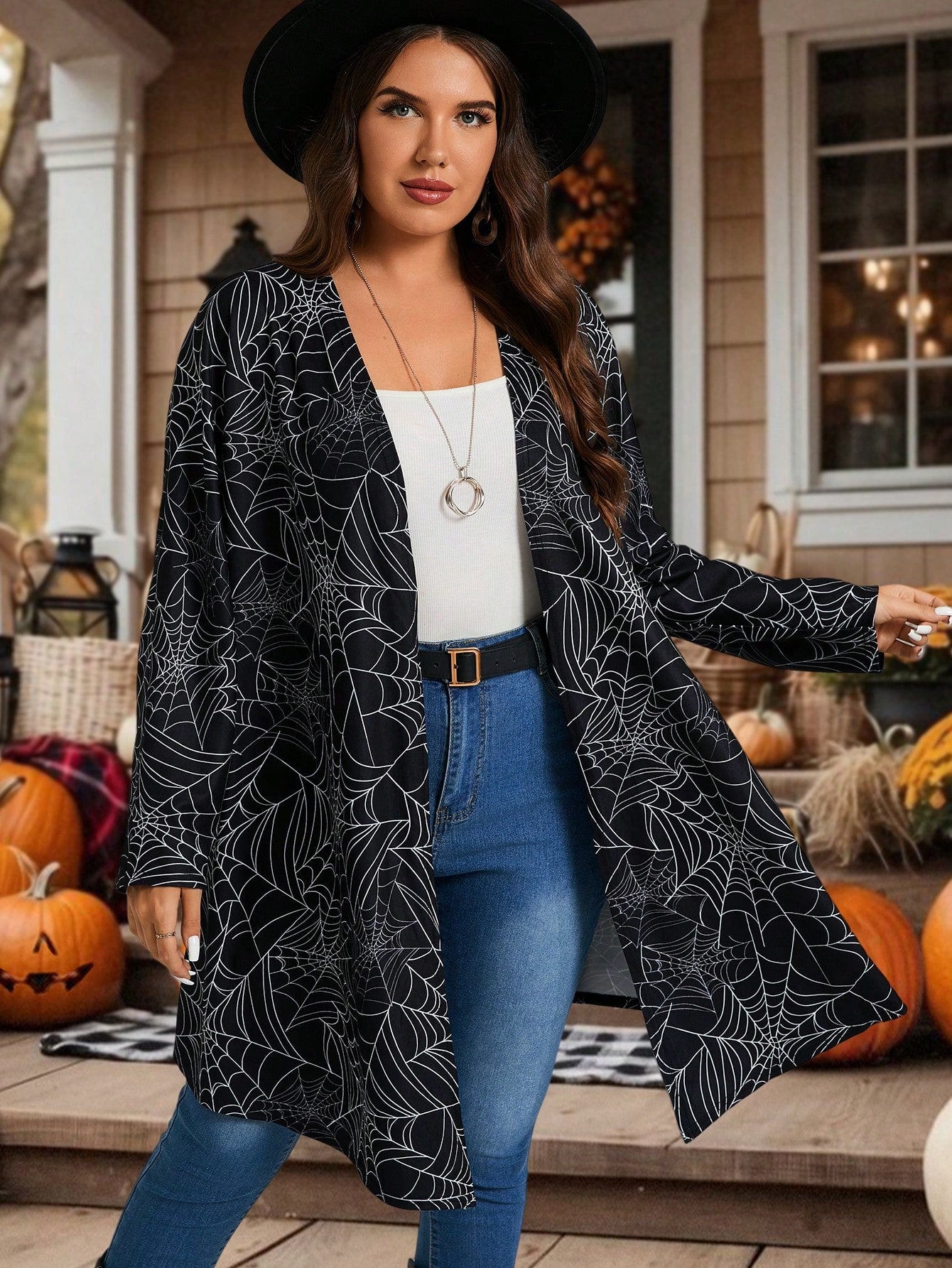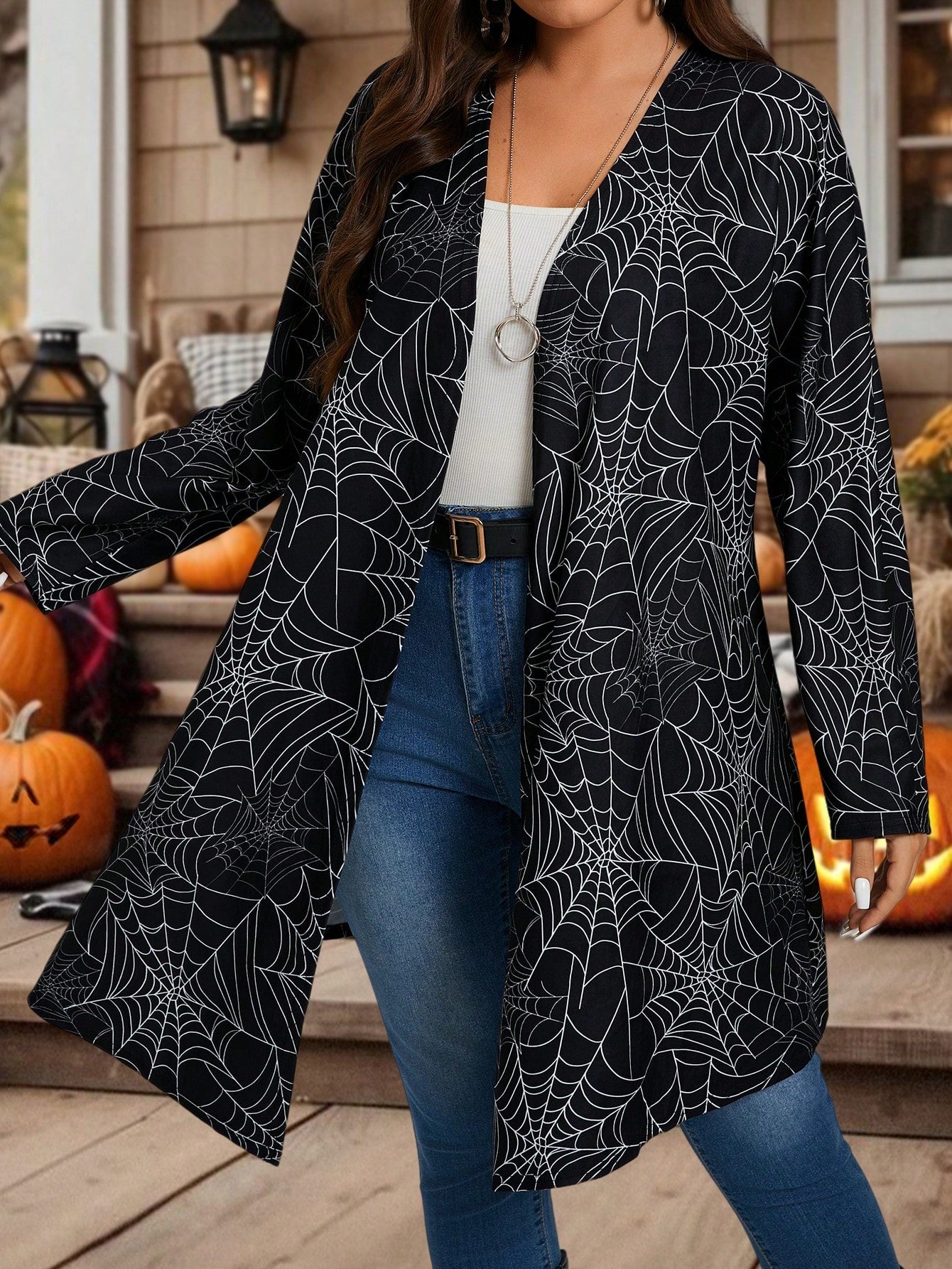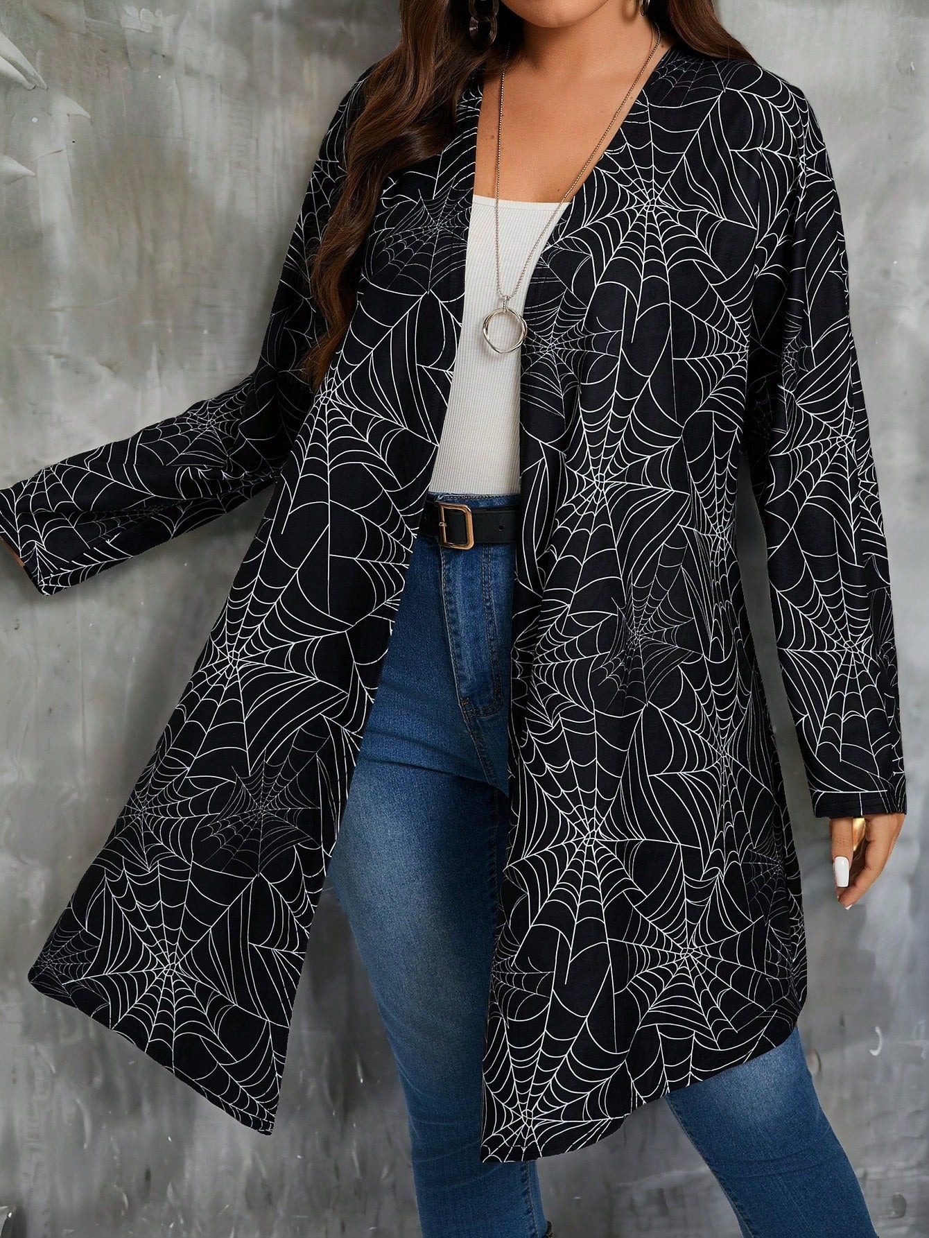 جاكيت موضة طويلة الأكمام بطبعة شبكة عنكبوت