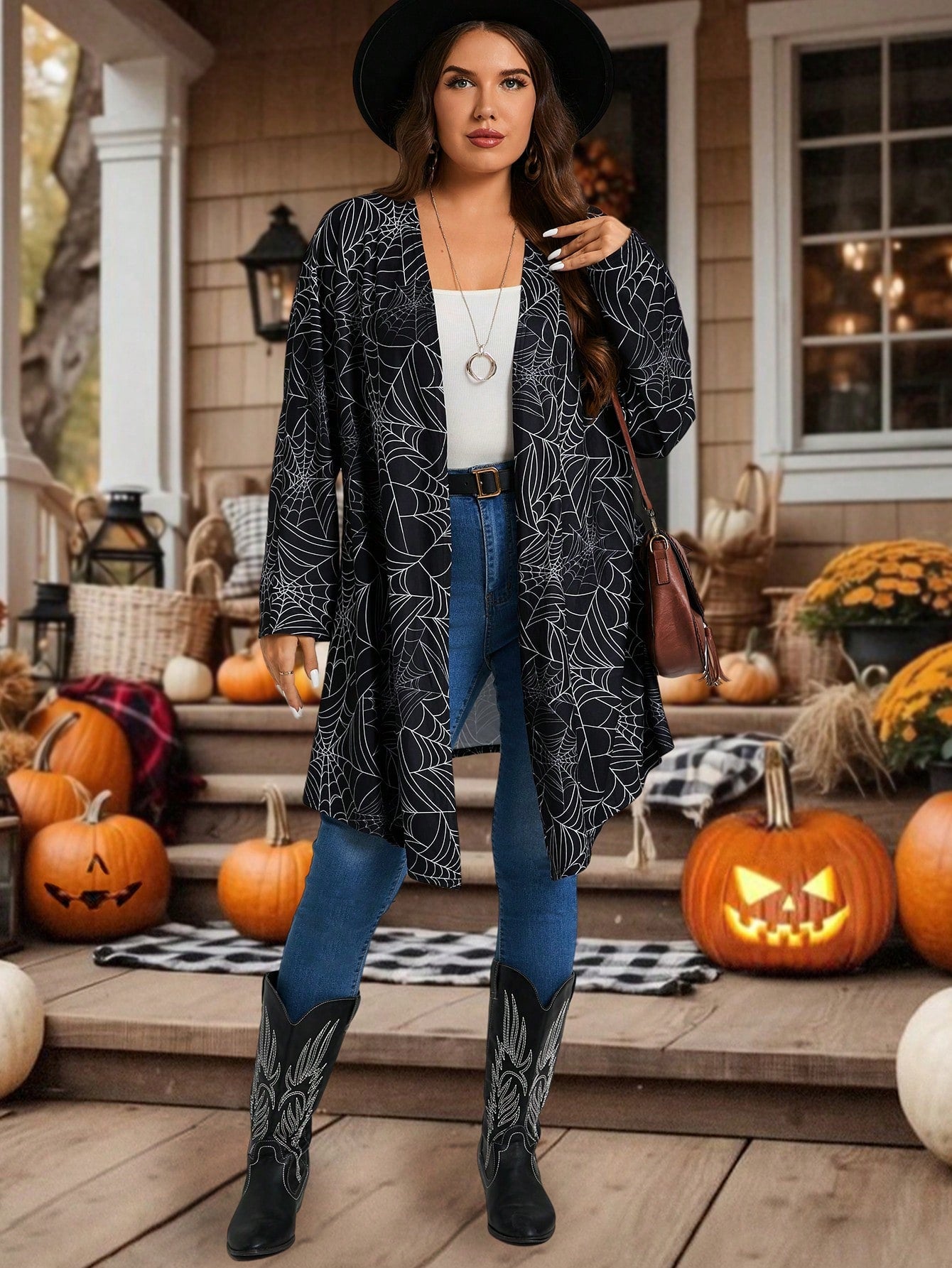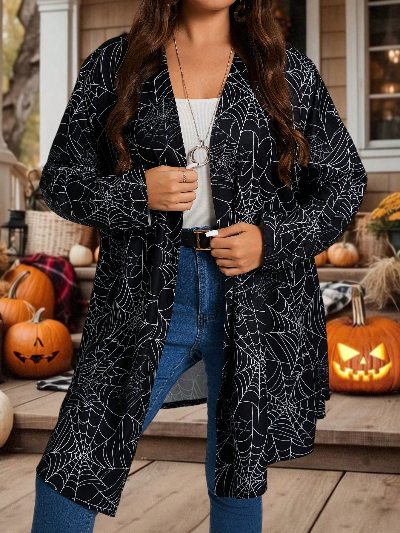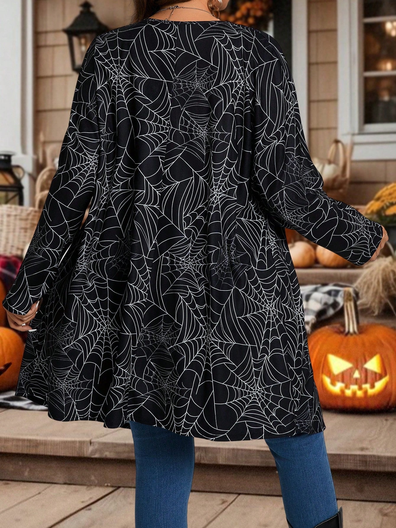 جاكيت موضة طويلة الأكمام بطبعة شبكة عنكبوت