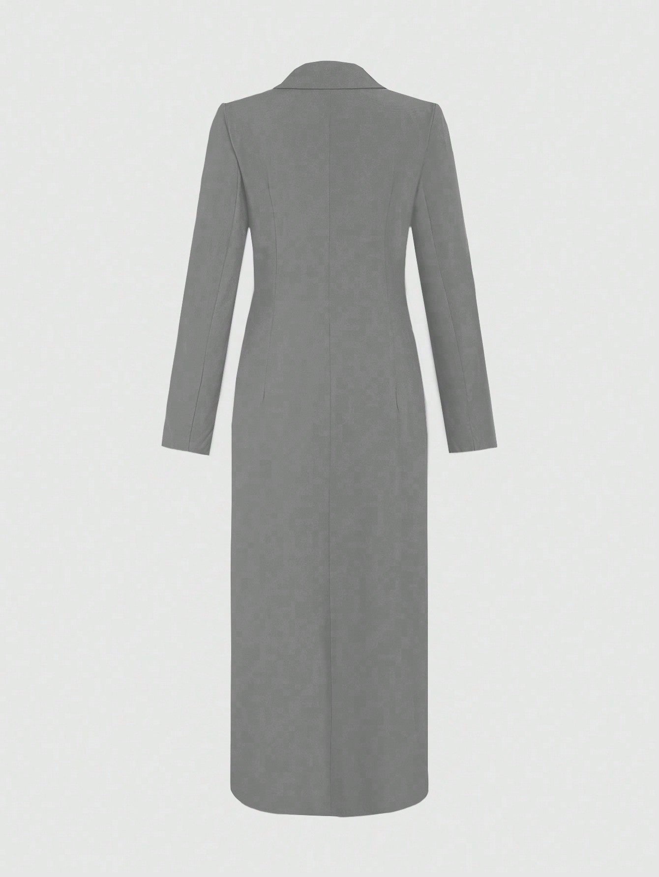 جاكيت نسائية كاجوال طويلة الأكمام بياقة وأزرار أمامية