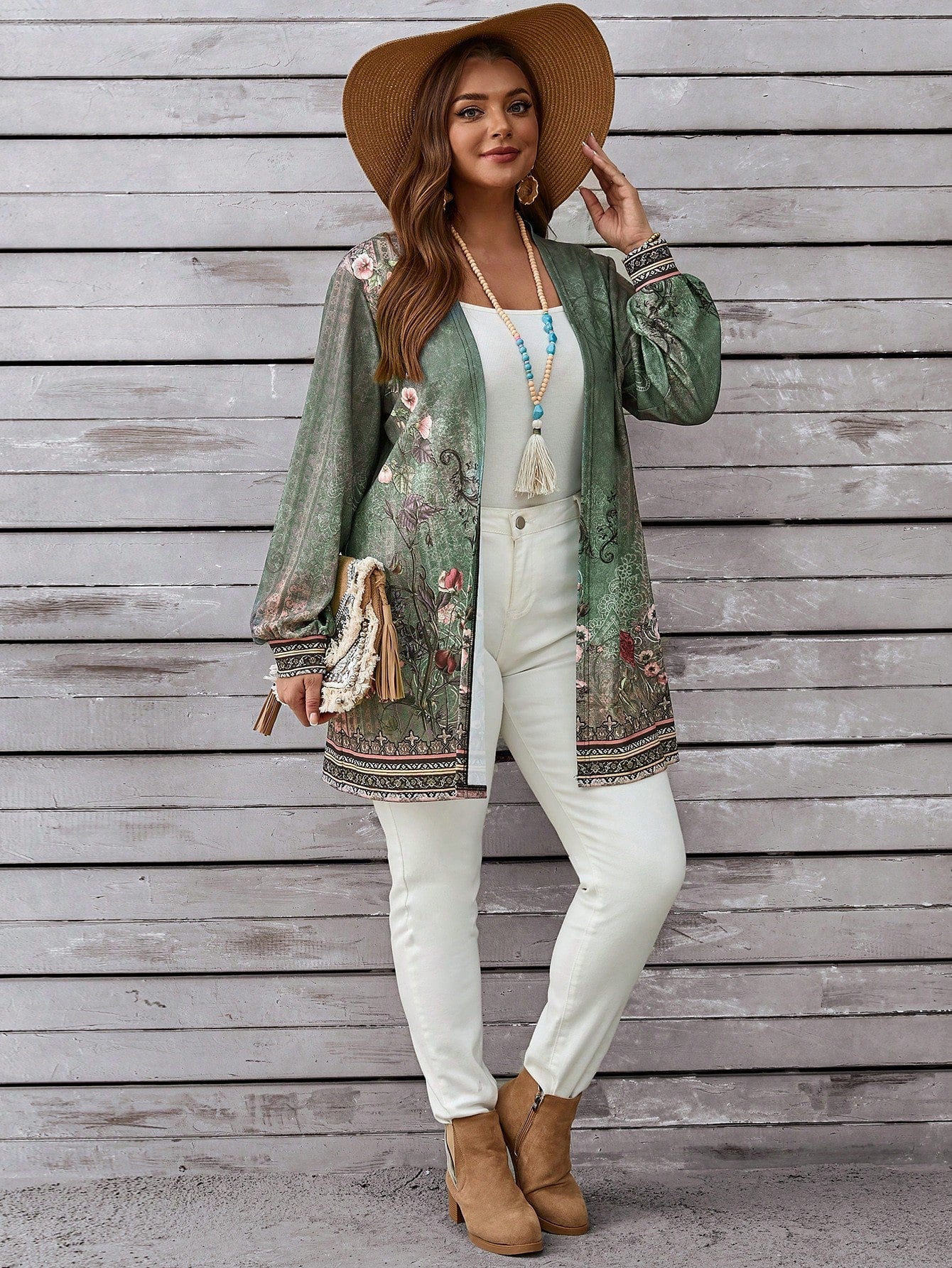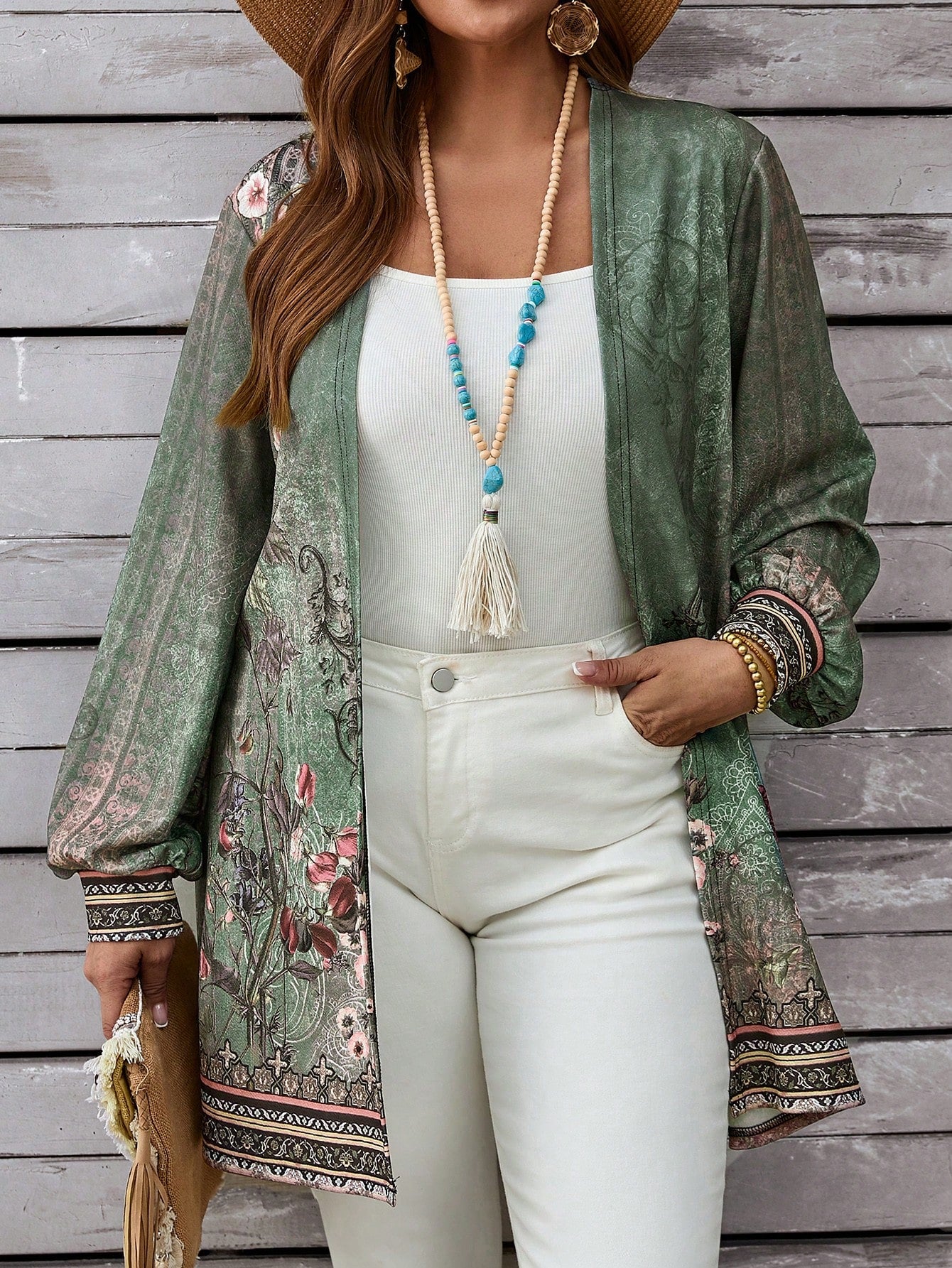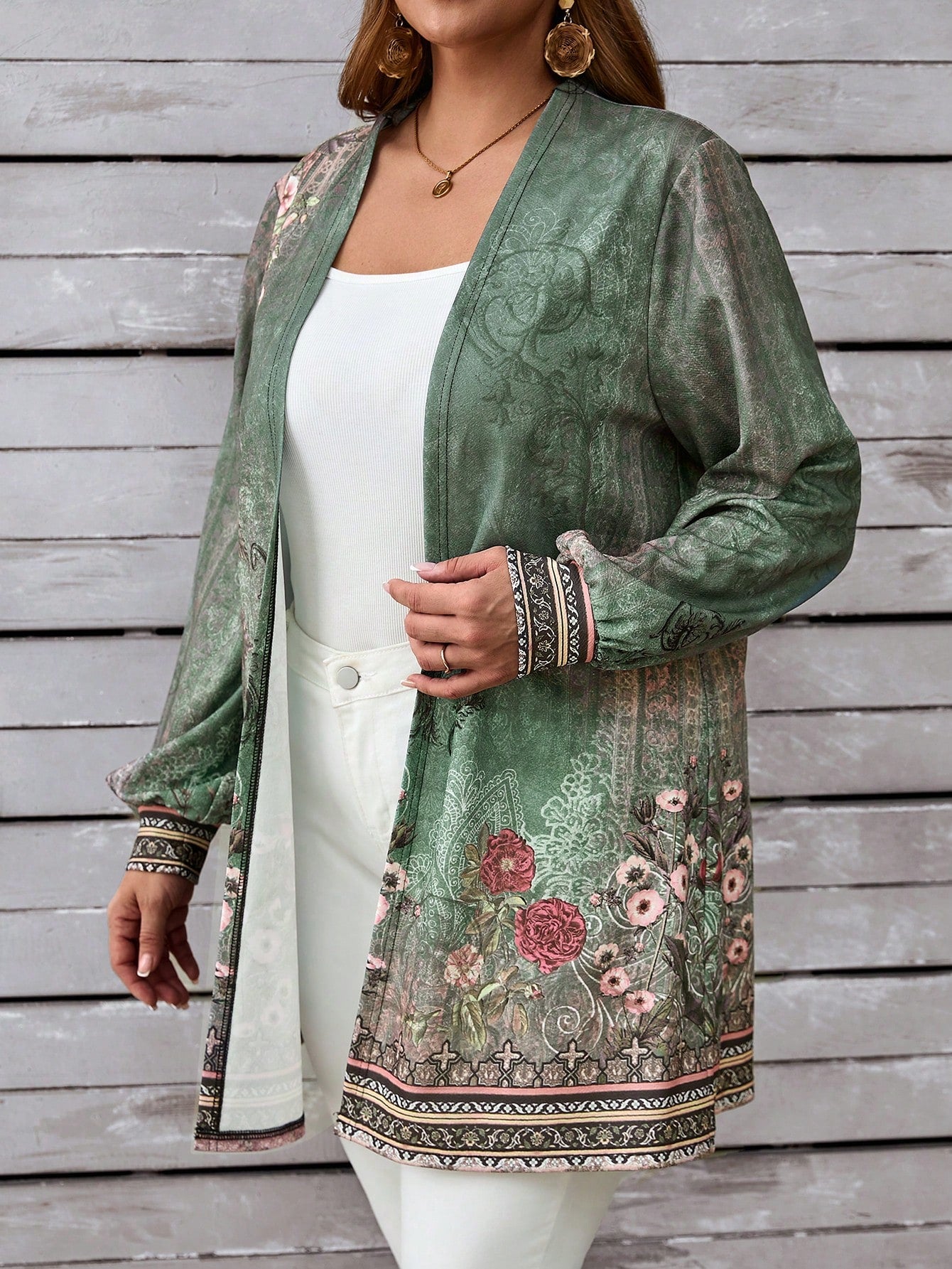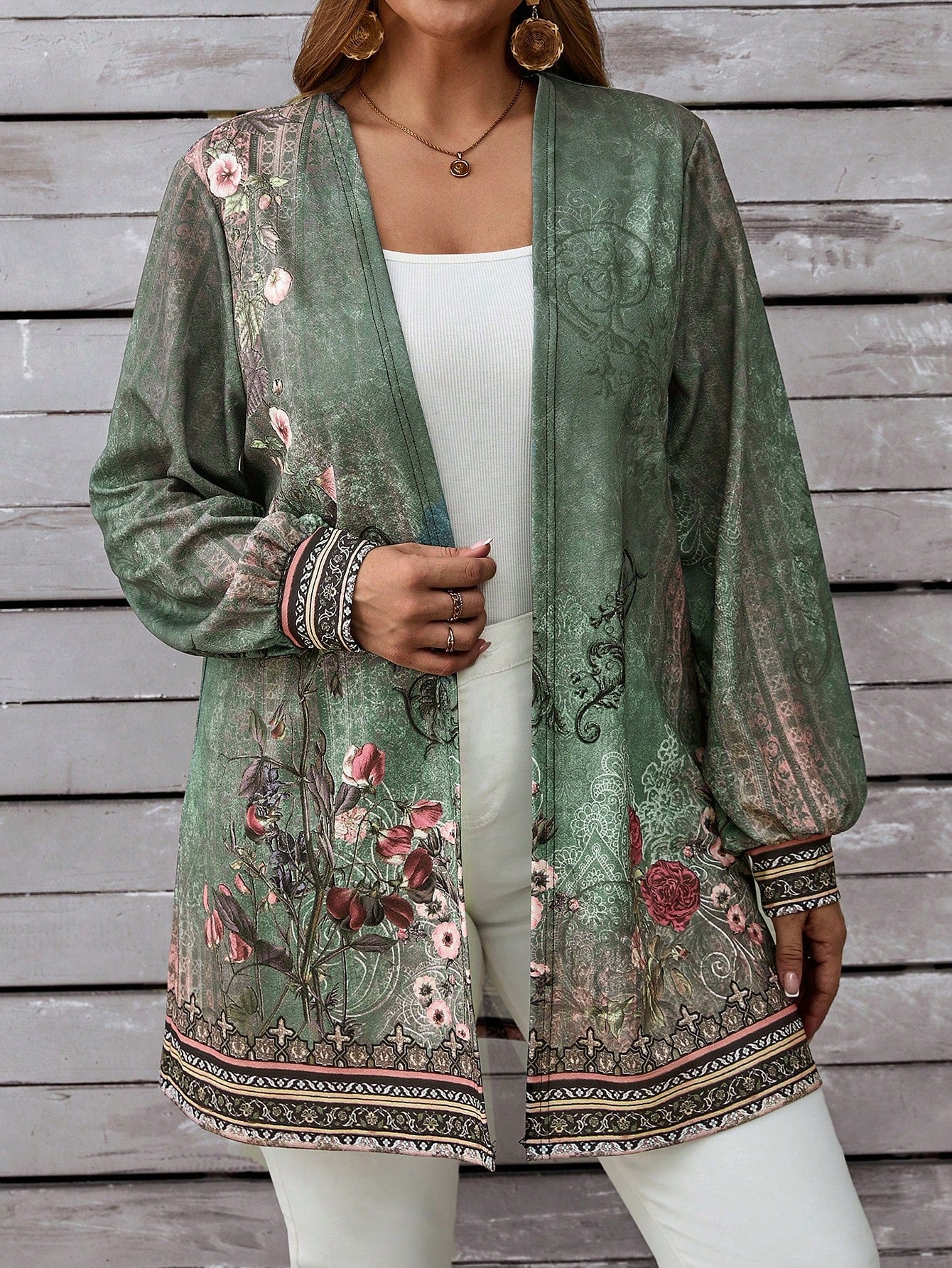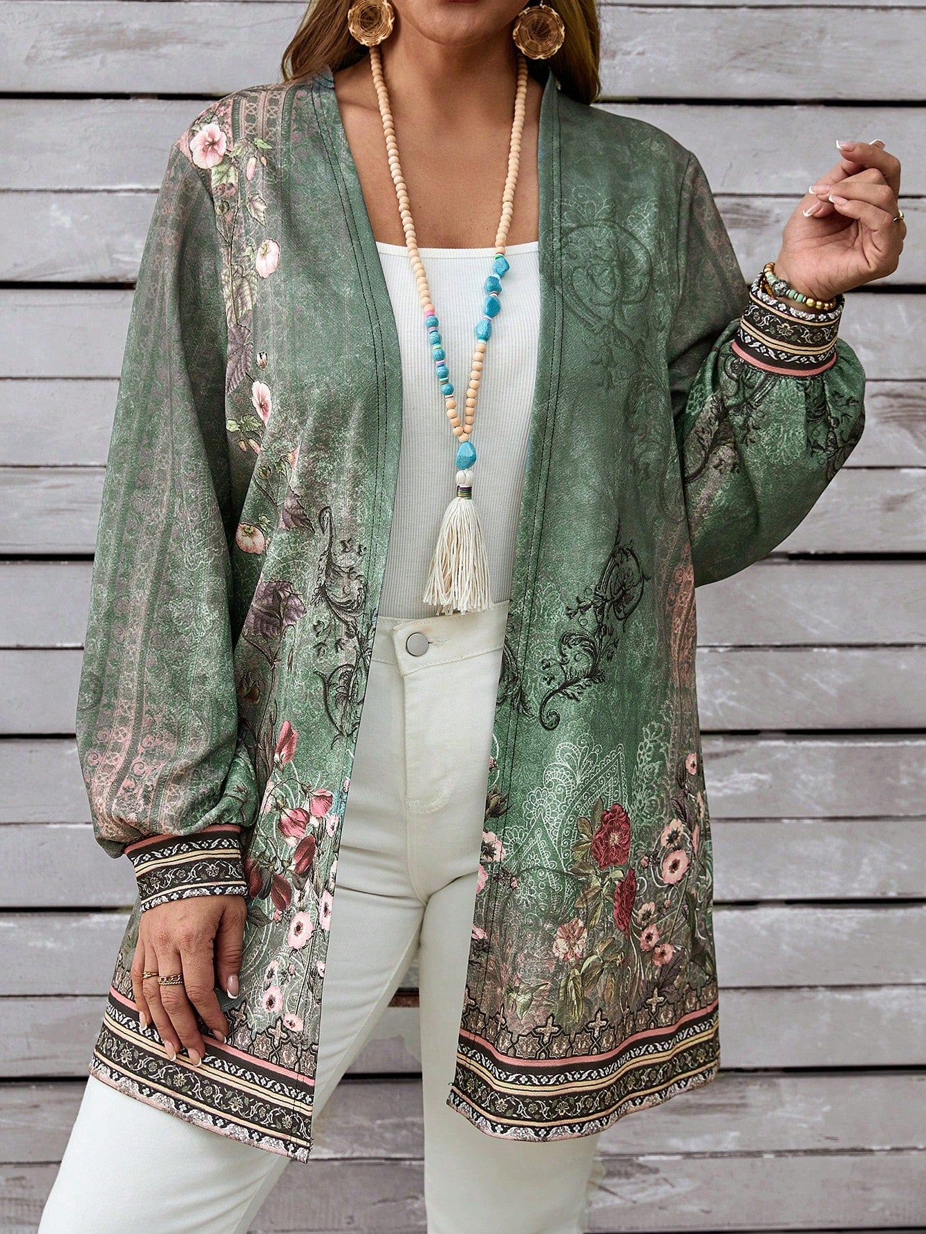 جاكيت نسائية مقاس كبير مطبوعة بالزهور