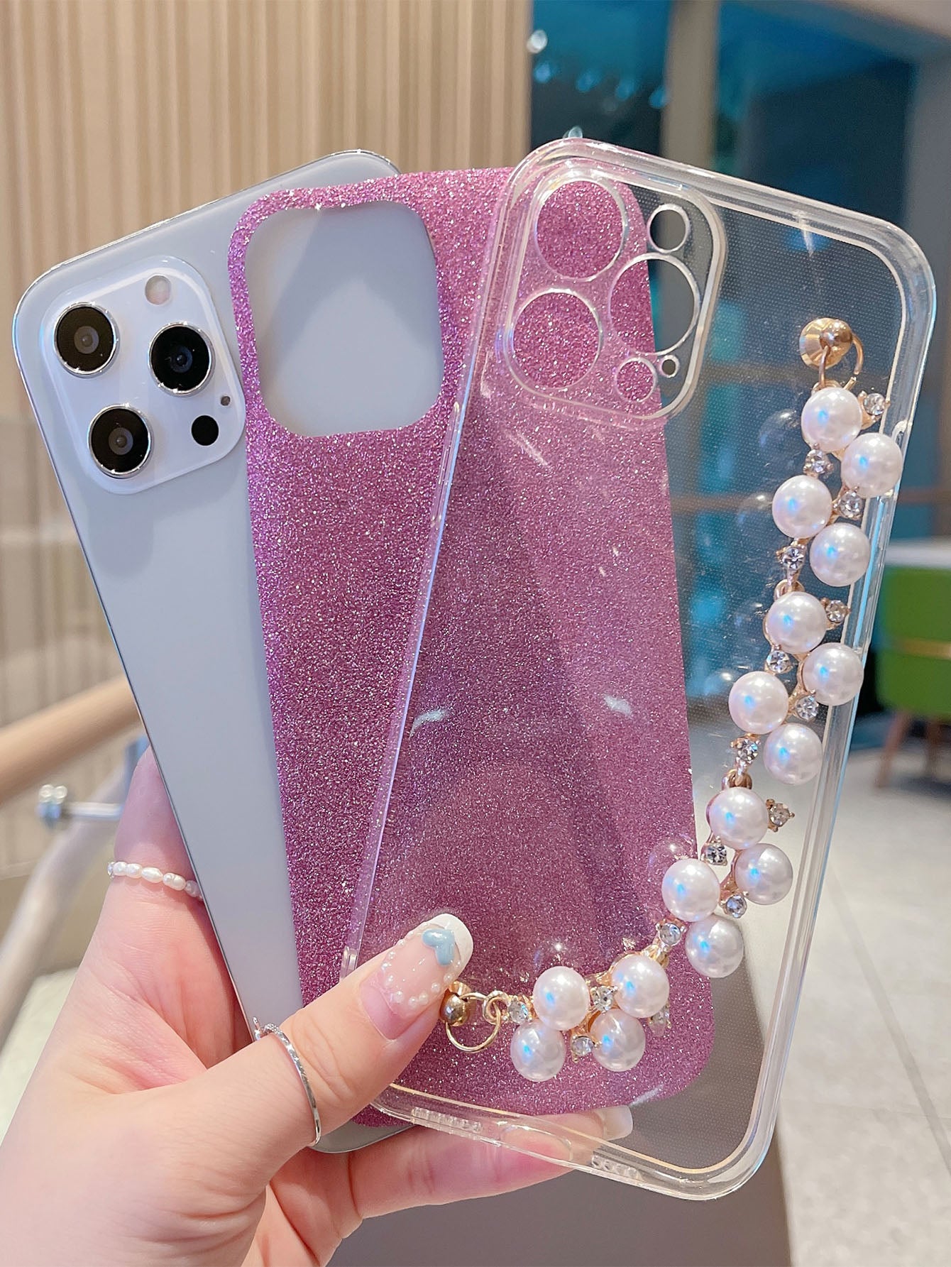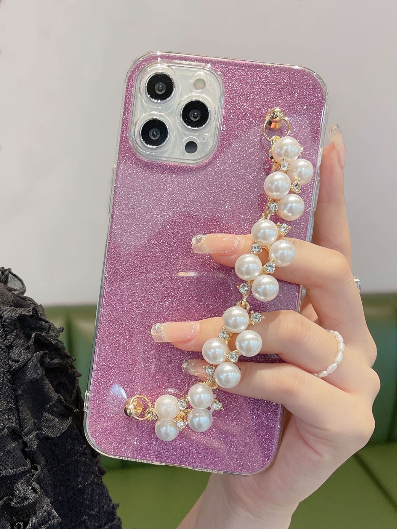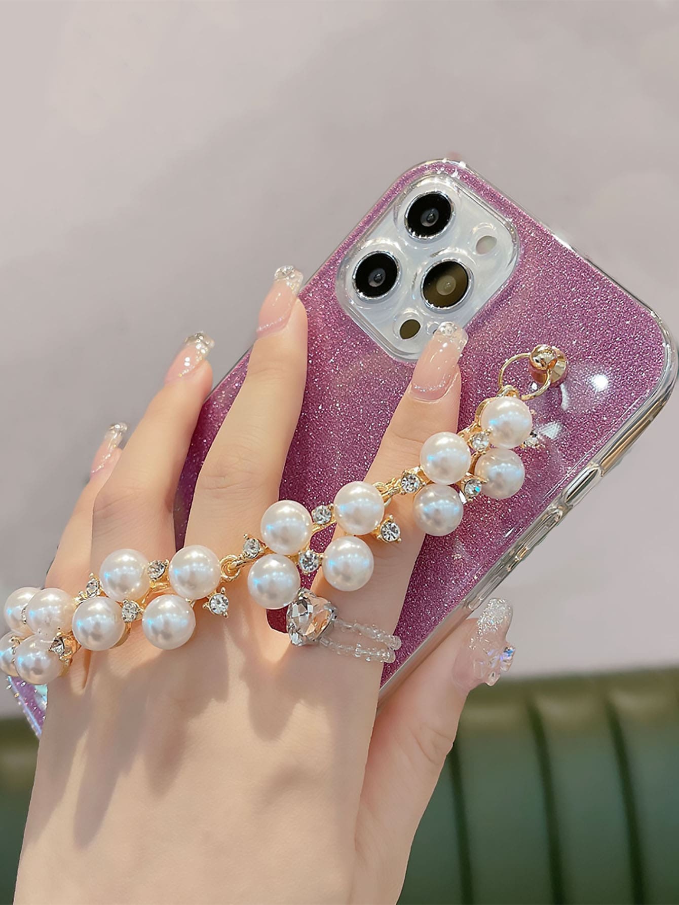 جراب هاتف مع سوار من اللؤلؤ الصناعي