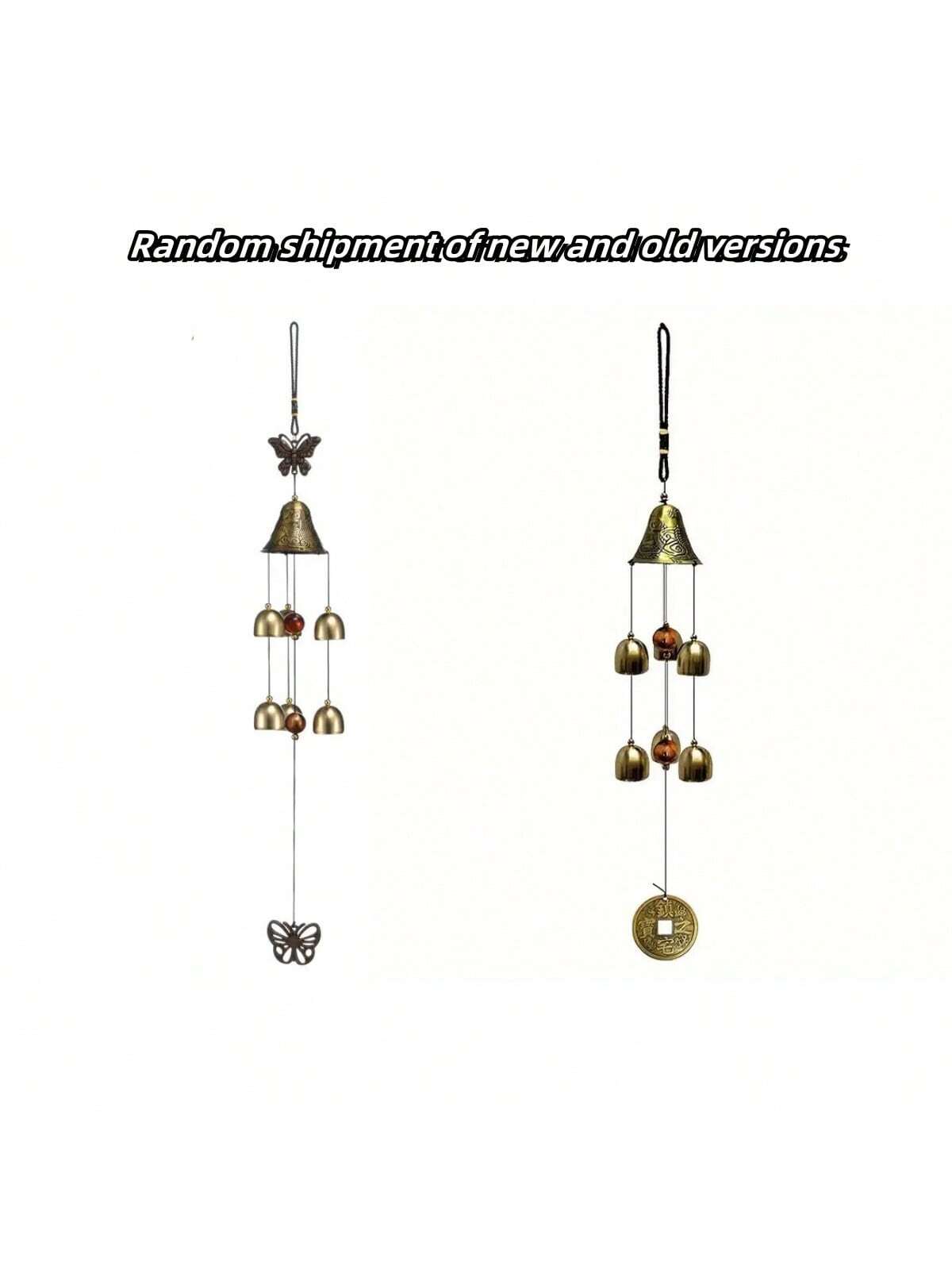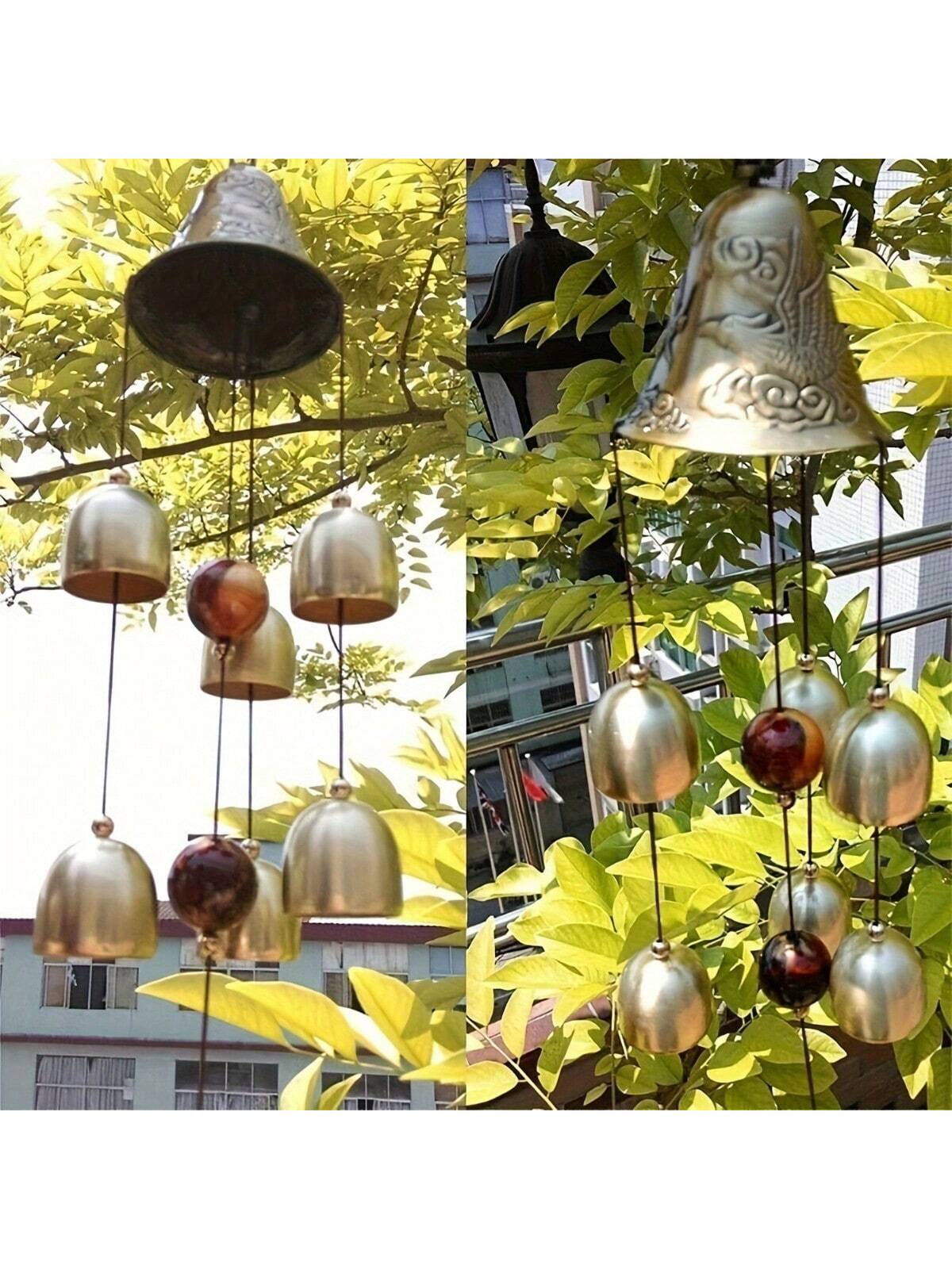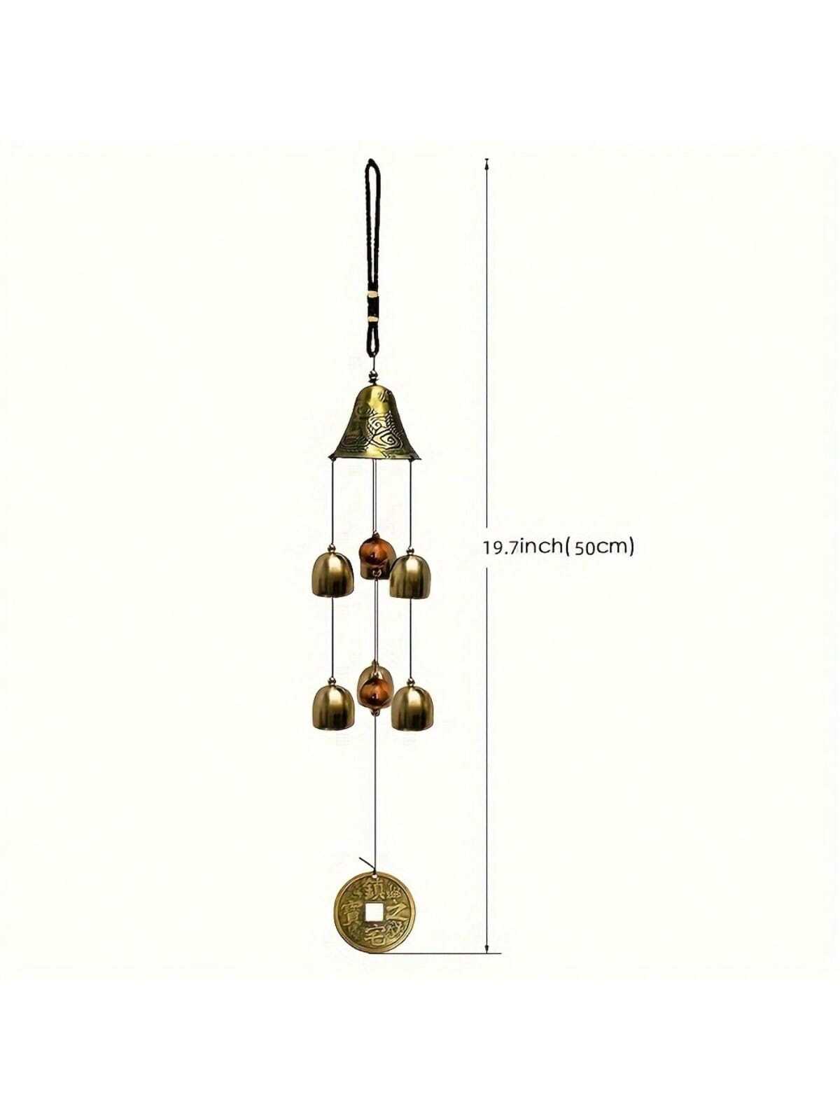 جرس الرياح الحظ السعيد من النحاس على شكل تنين و6 جراس، جرس رياح معلق للمنزل والحديقة، مزين بالحظ الجيد وفن الحديقة