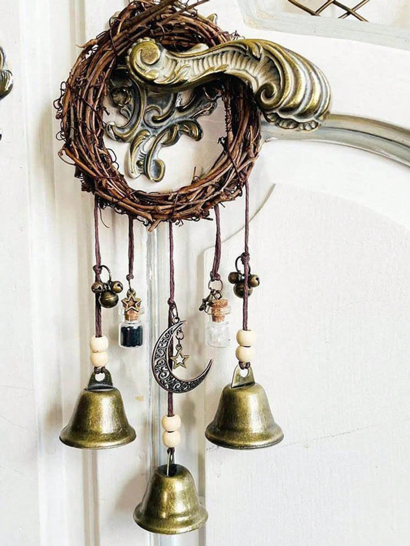 جرس زهرة الرتان الجدارية الباب المعلق مقبض الباب جرس ديكوري