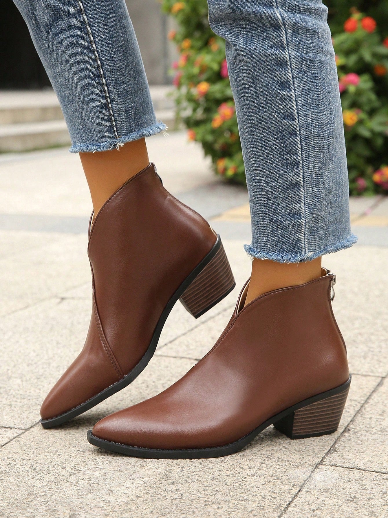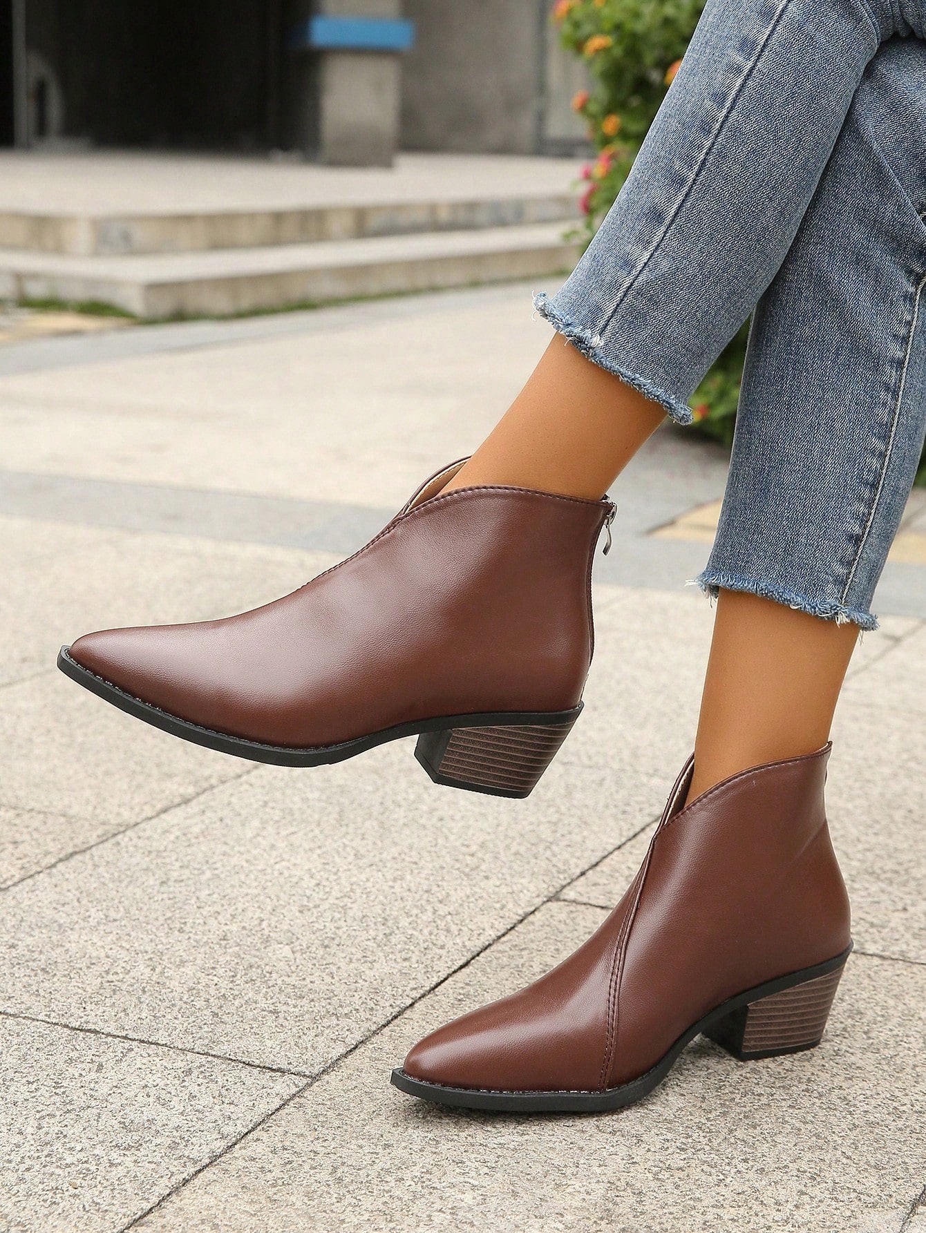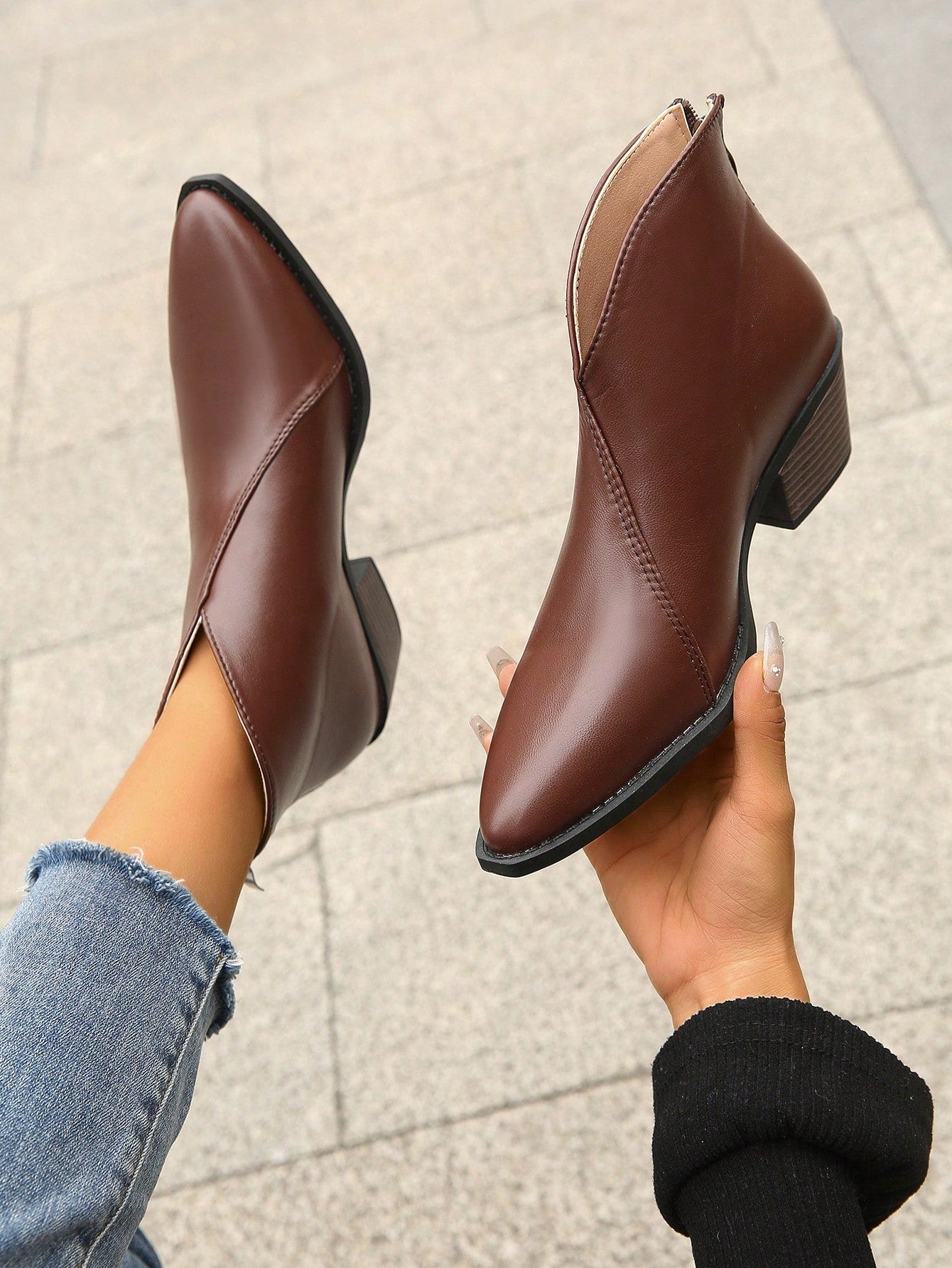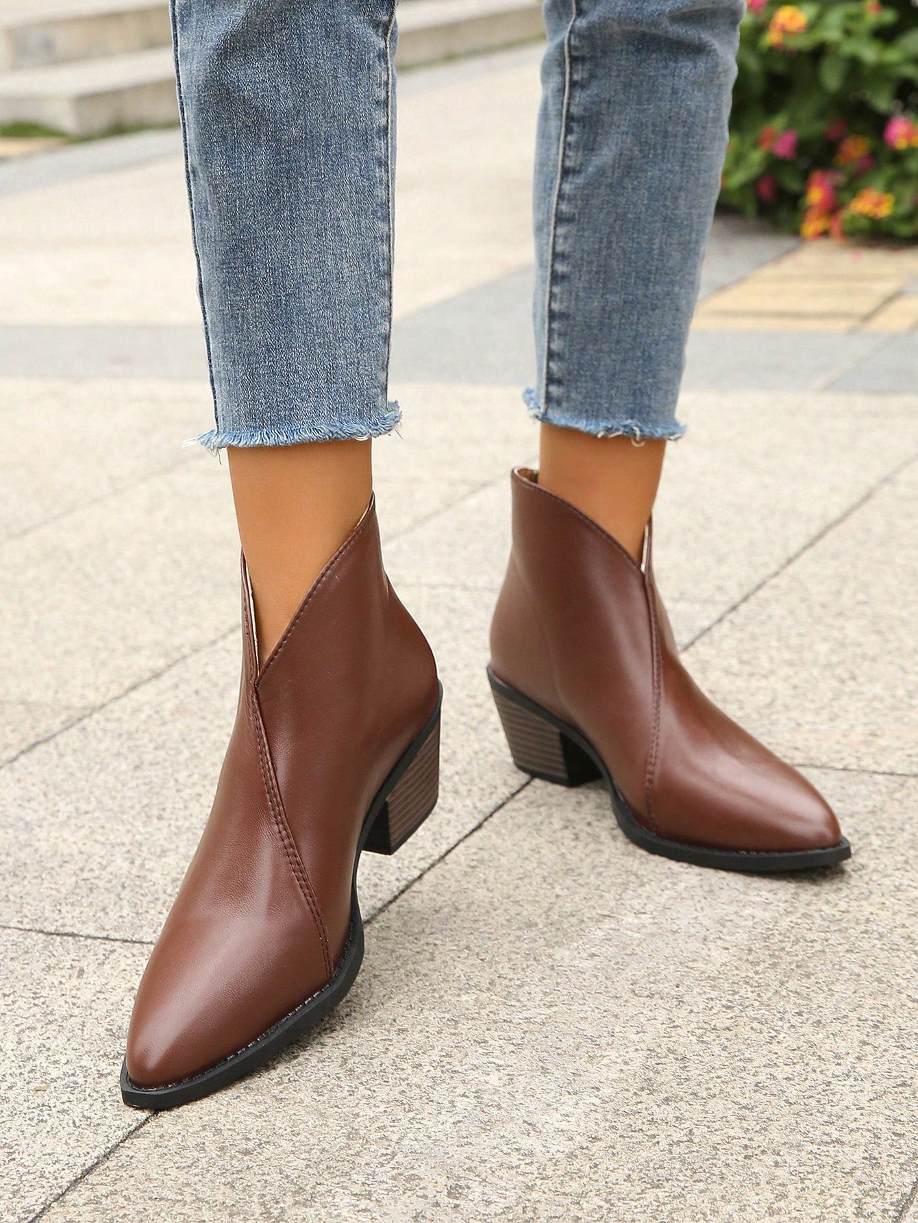 جزمة برقبة طويلة أسلوب بريطاني عتيق أسود للنساء , ربيع خريف موسم كعب متوسط اصبع مدبب مكتنز كعب كاحل حذاء طويل