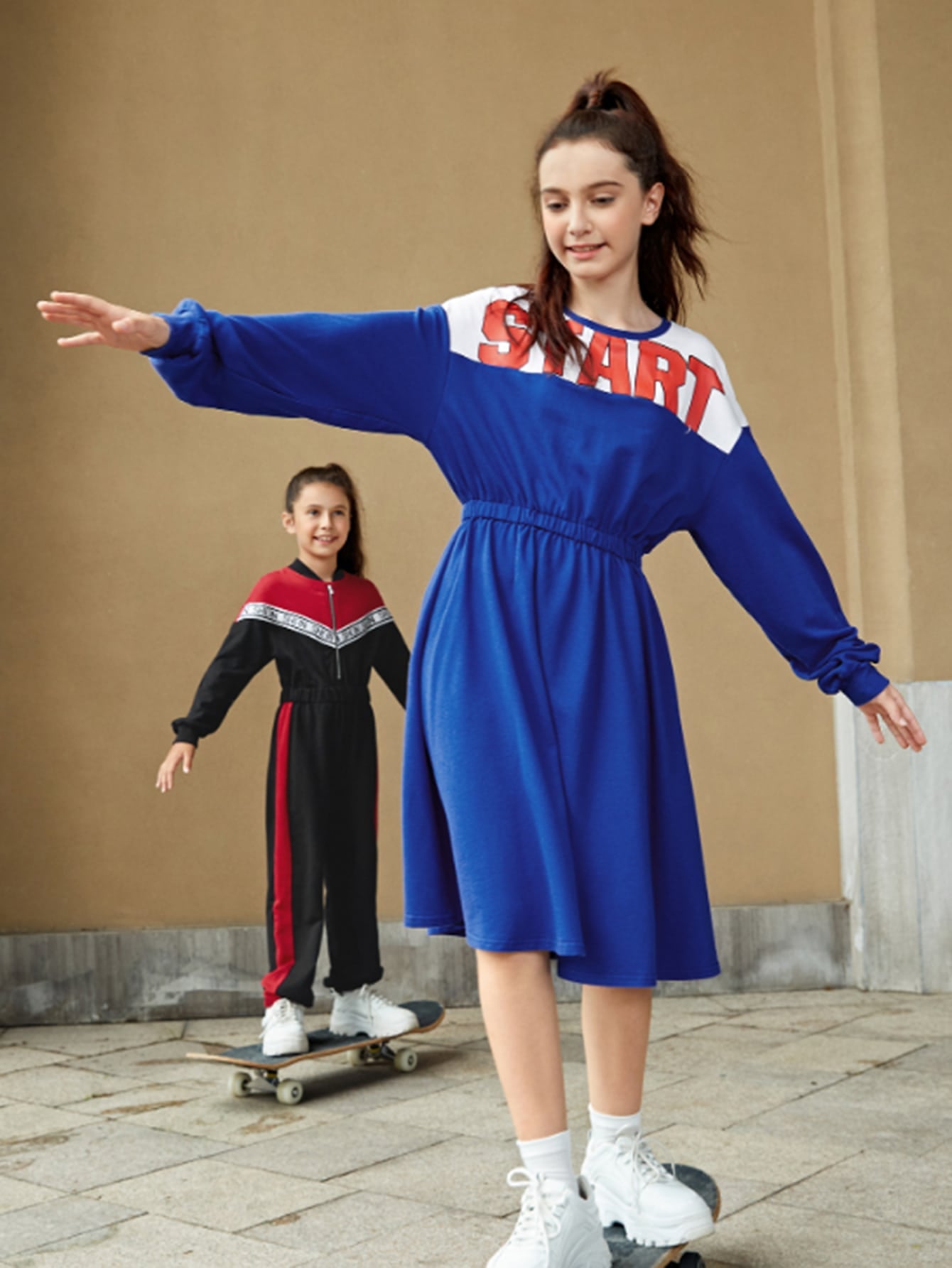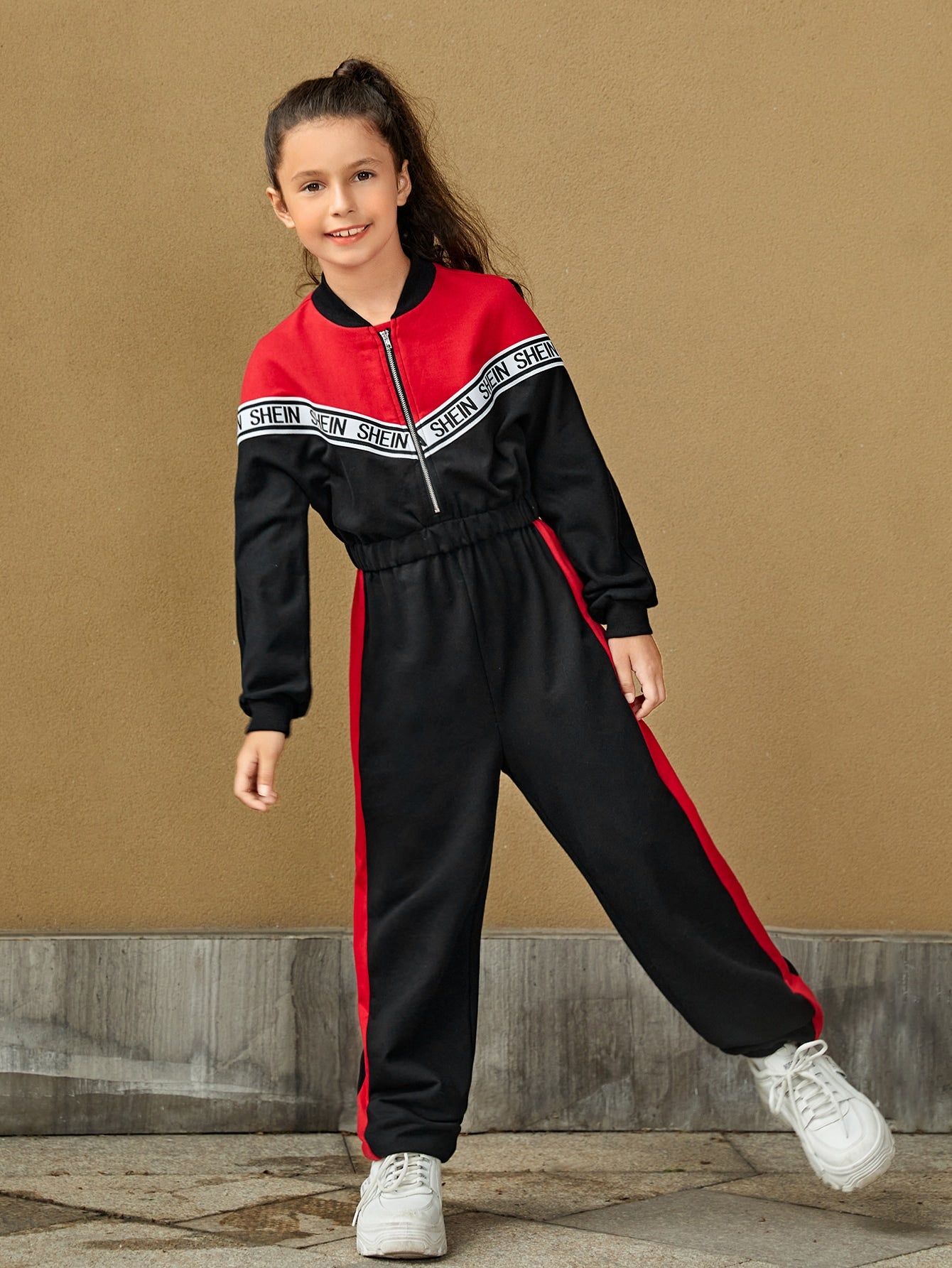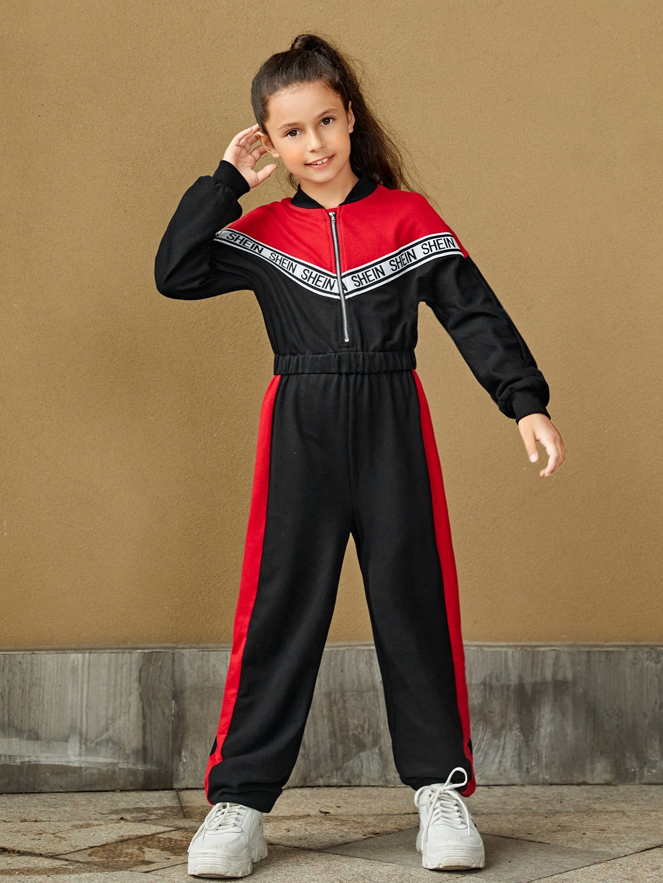 جمبسوت ألوان متباينة متباين شريط عبارة طوق بيسبول سستة قطعة واحدة بنات
