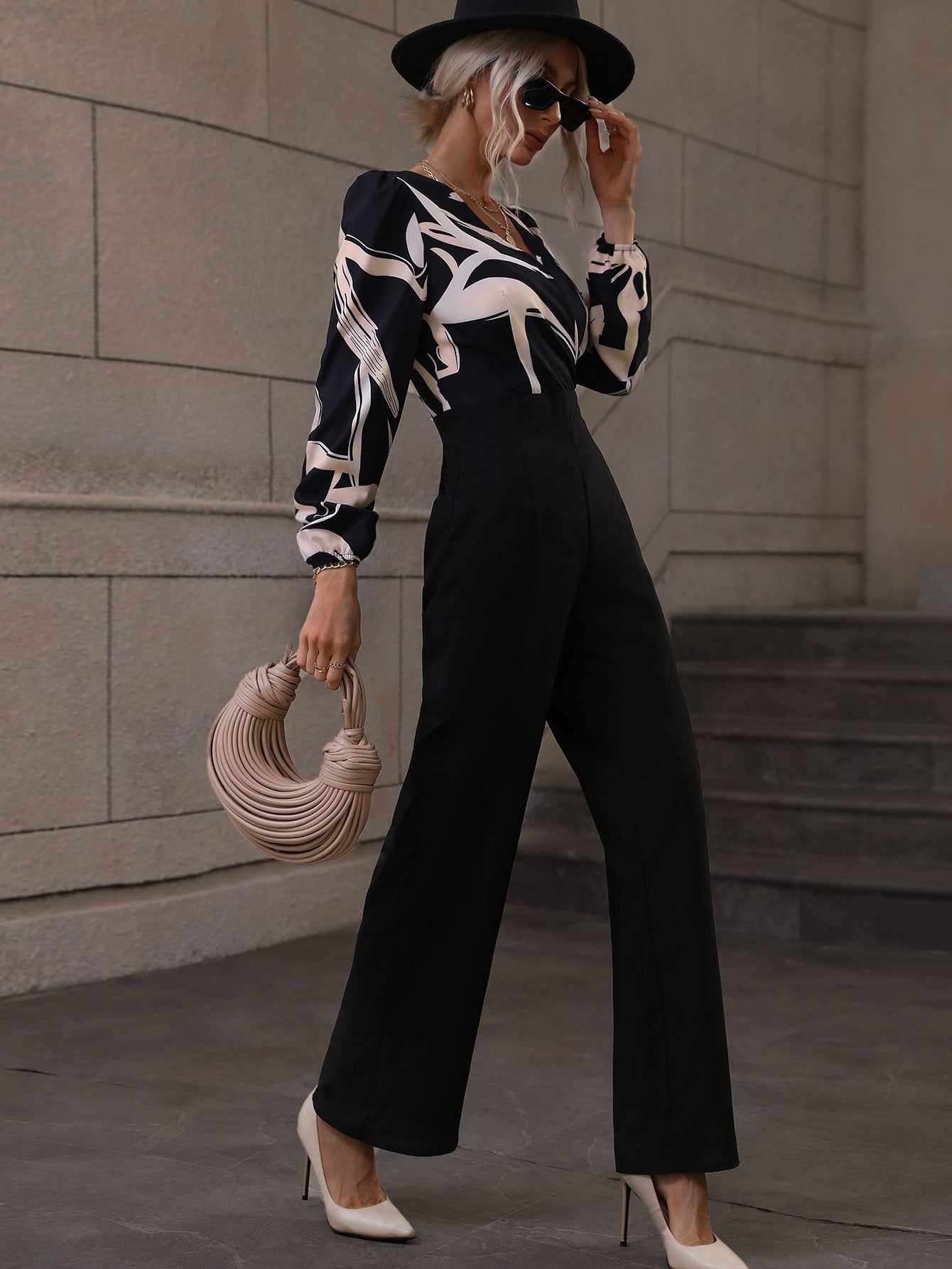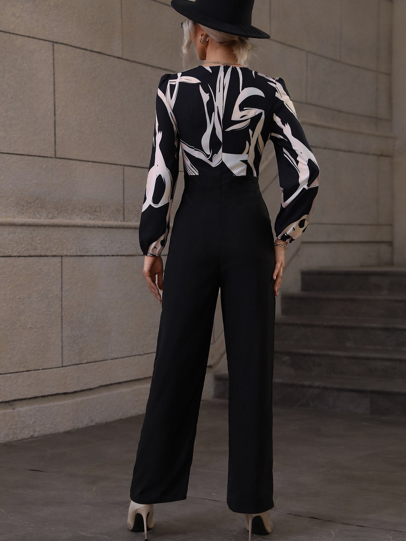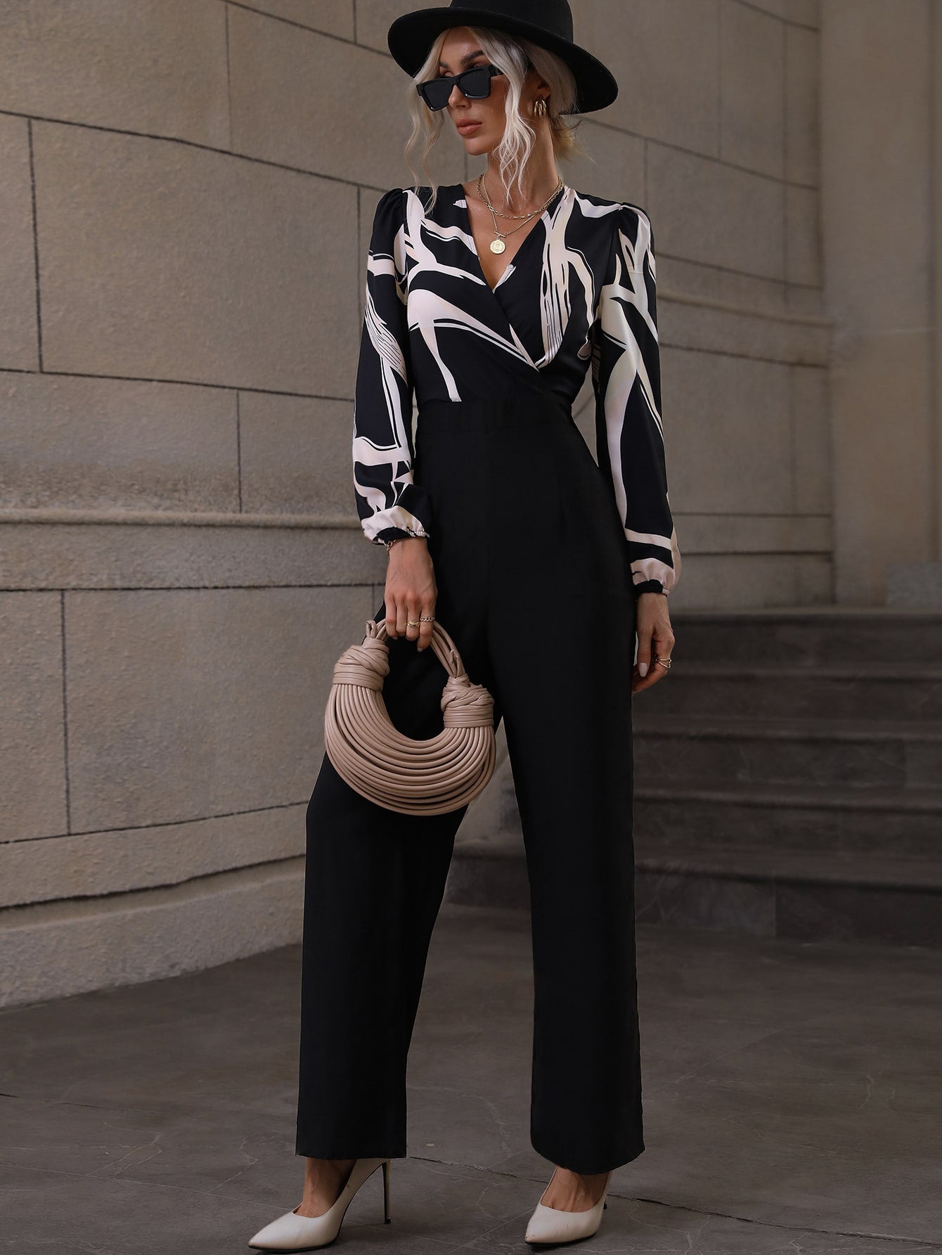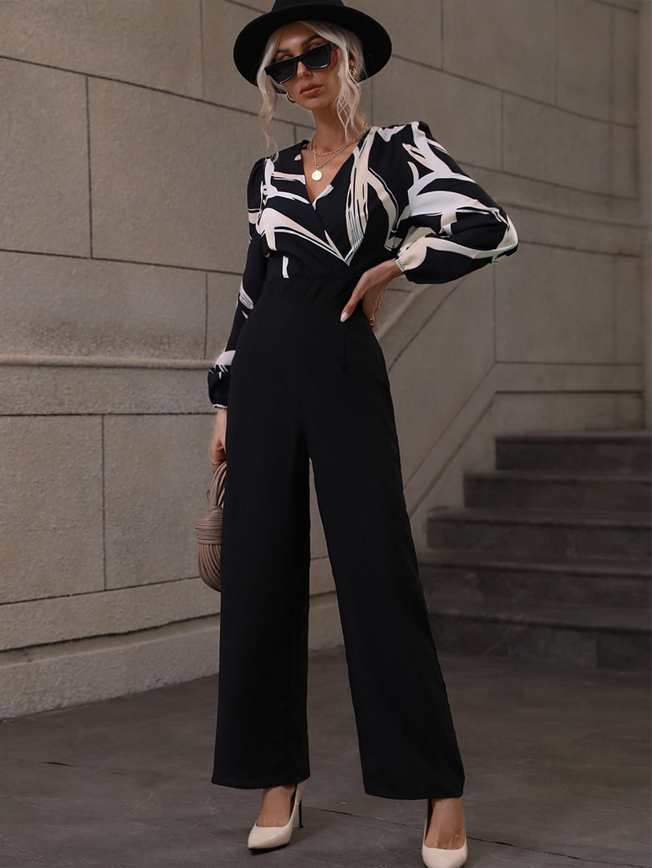 جمبسوت طباعة النقش عنق متداخل أكمام فانوس