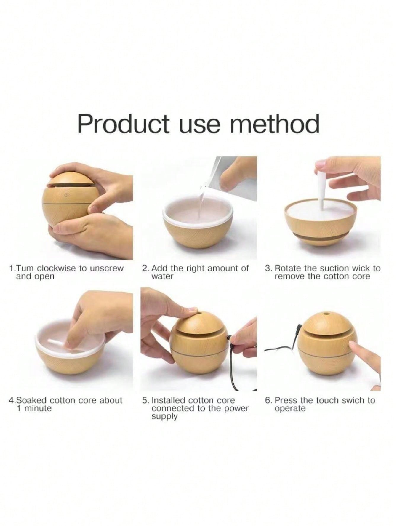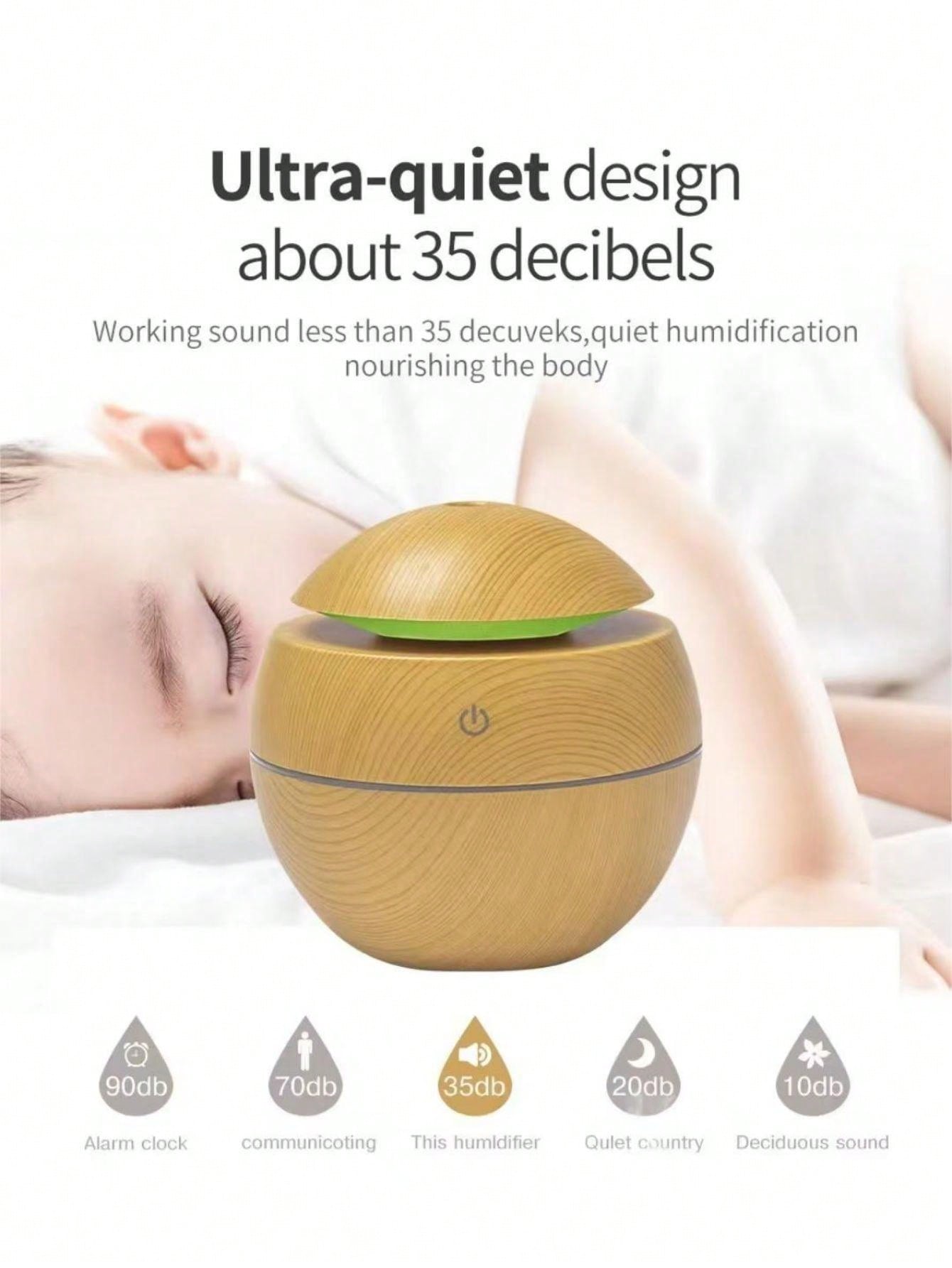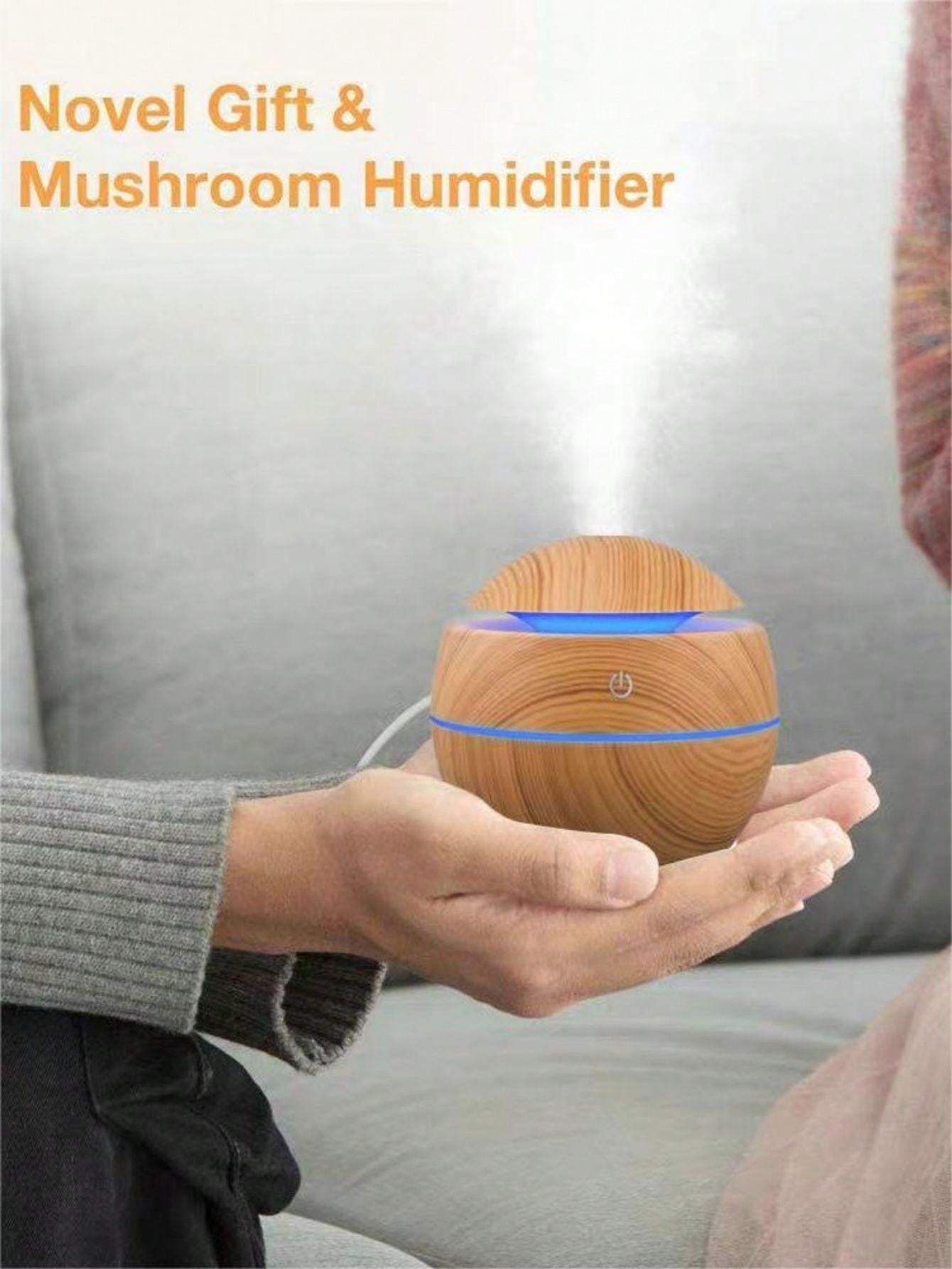 جهاز ترطيب فطري بسعة 200مل برسومات خشبية قطعة واحدة، جهاز نشر روائح محمول يعمل بالطاقة من خلال منفذ USB للمنزل وغرفة النوم