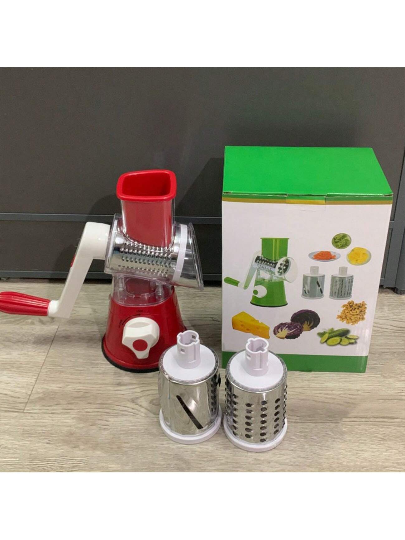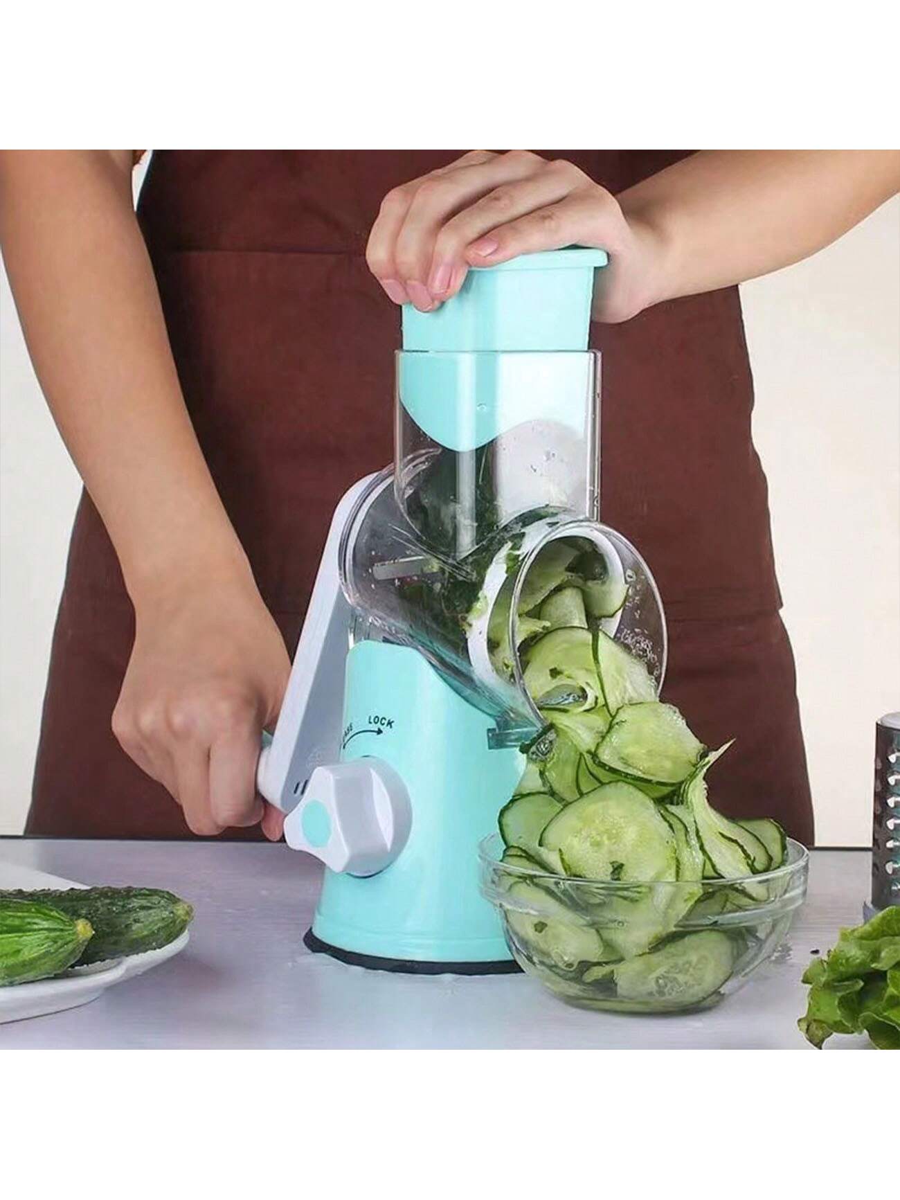 جهاز قطع الخضار بأسطوانة دوارة يدوي متعدد الوظائفللمطبخ ، ومقشر البطاطس و قاطع الخضار مع 3 شفرات