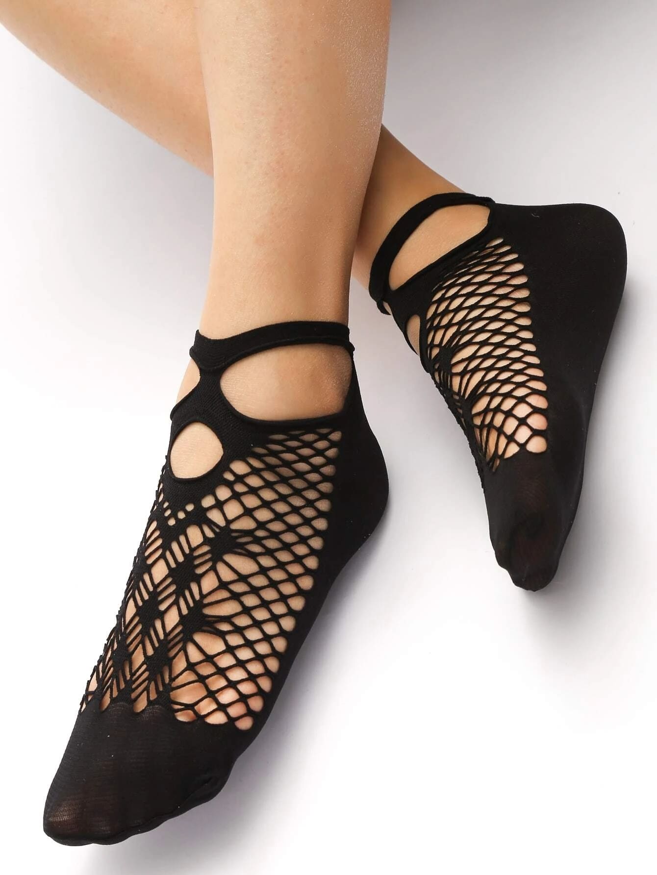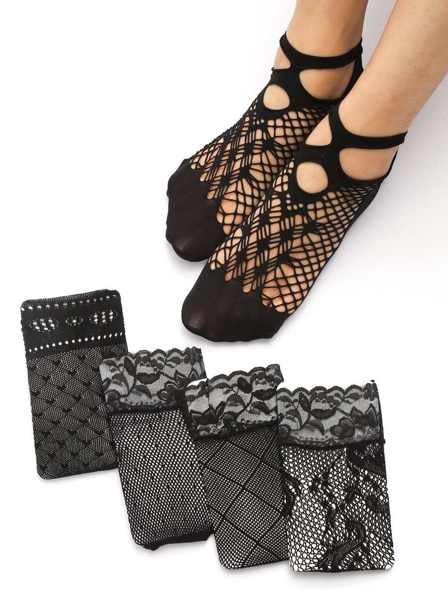 جوارب جمسي دانتيل زخرفة شبكة تنفس نيلون