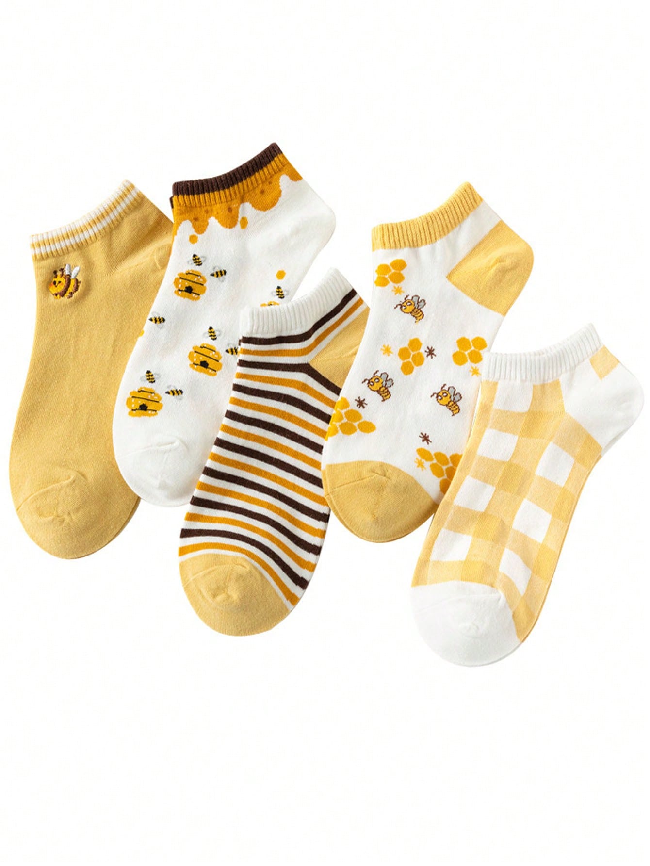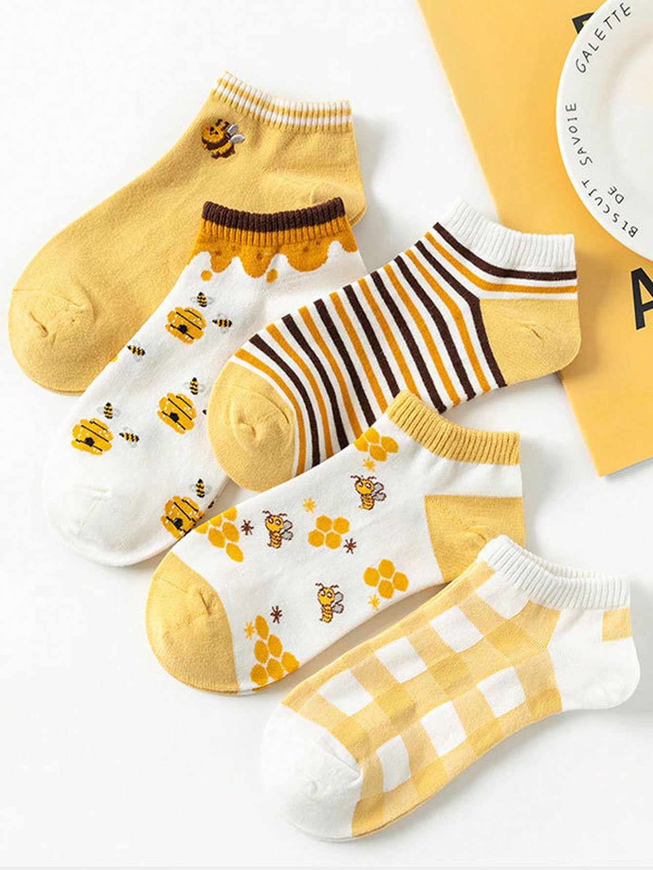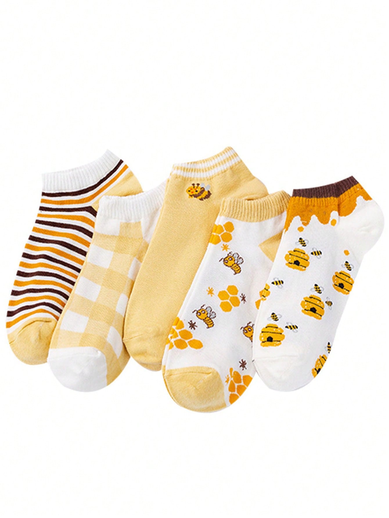 جوارب طاقم النساء المخططة على شكل نحلة لحياة خارجية رياضية 5 أزواج