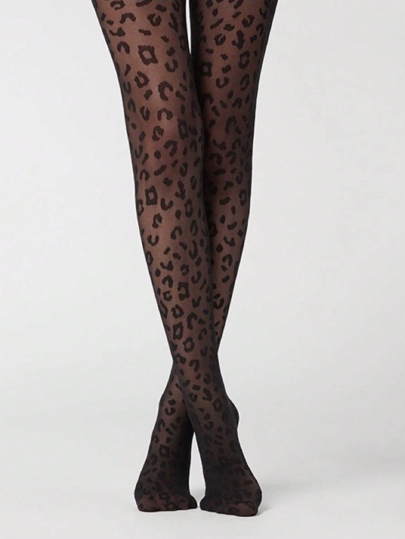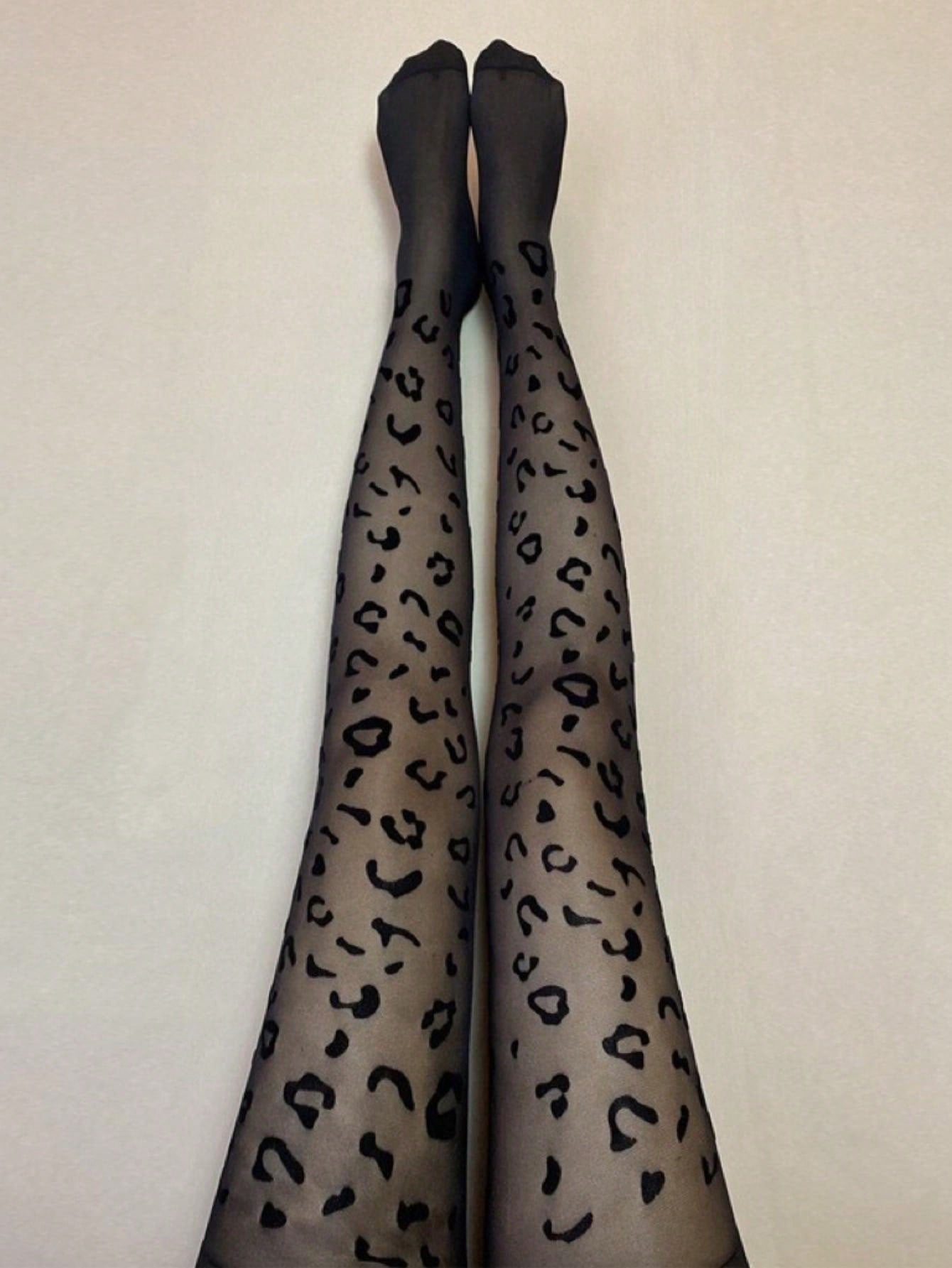 جوارب مثيرة سوداء بطبعة فهد سوداء للسيدات