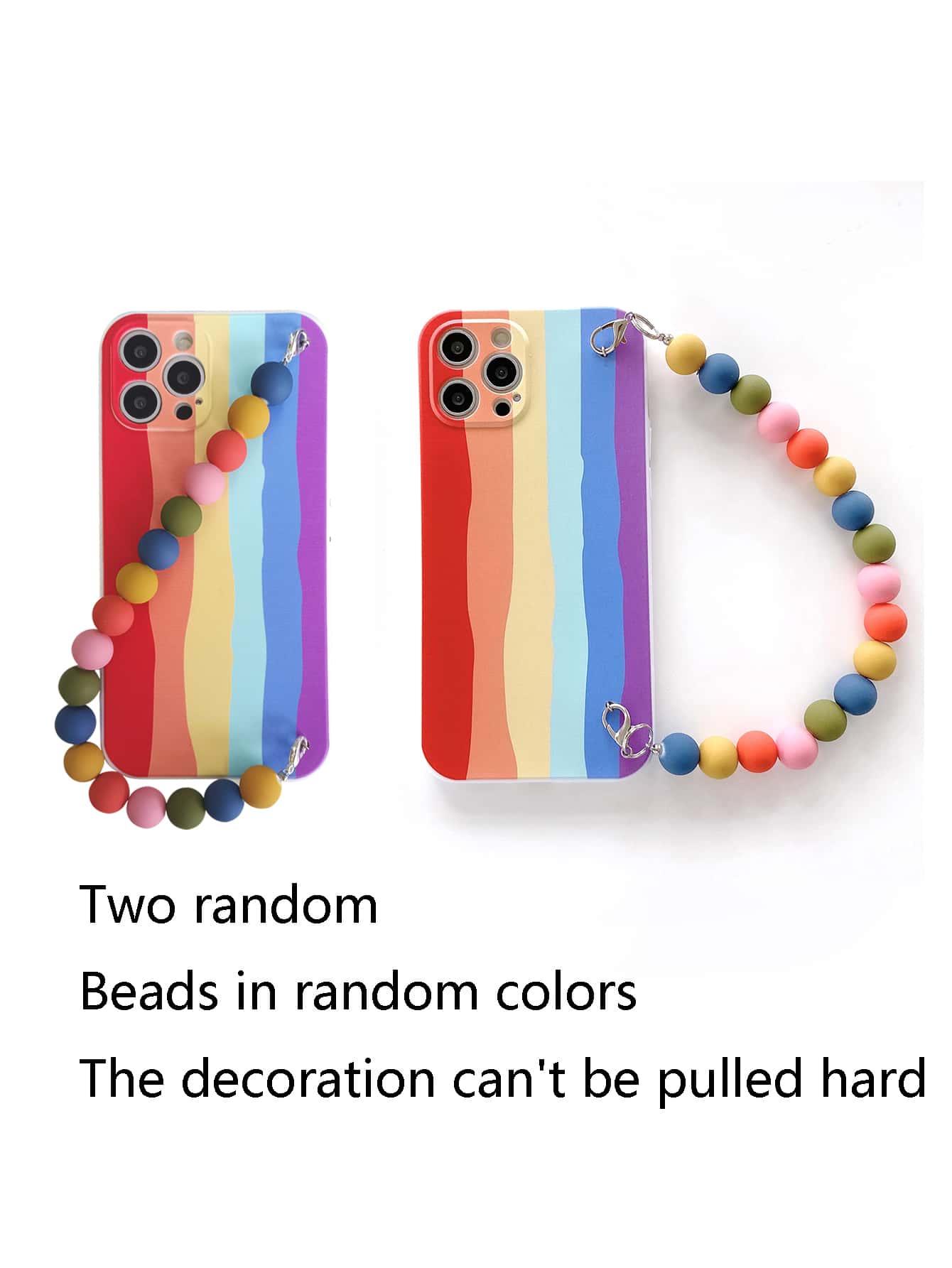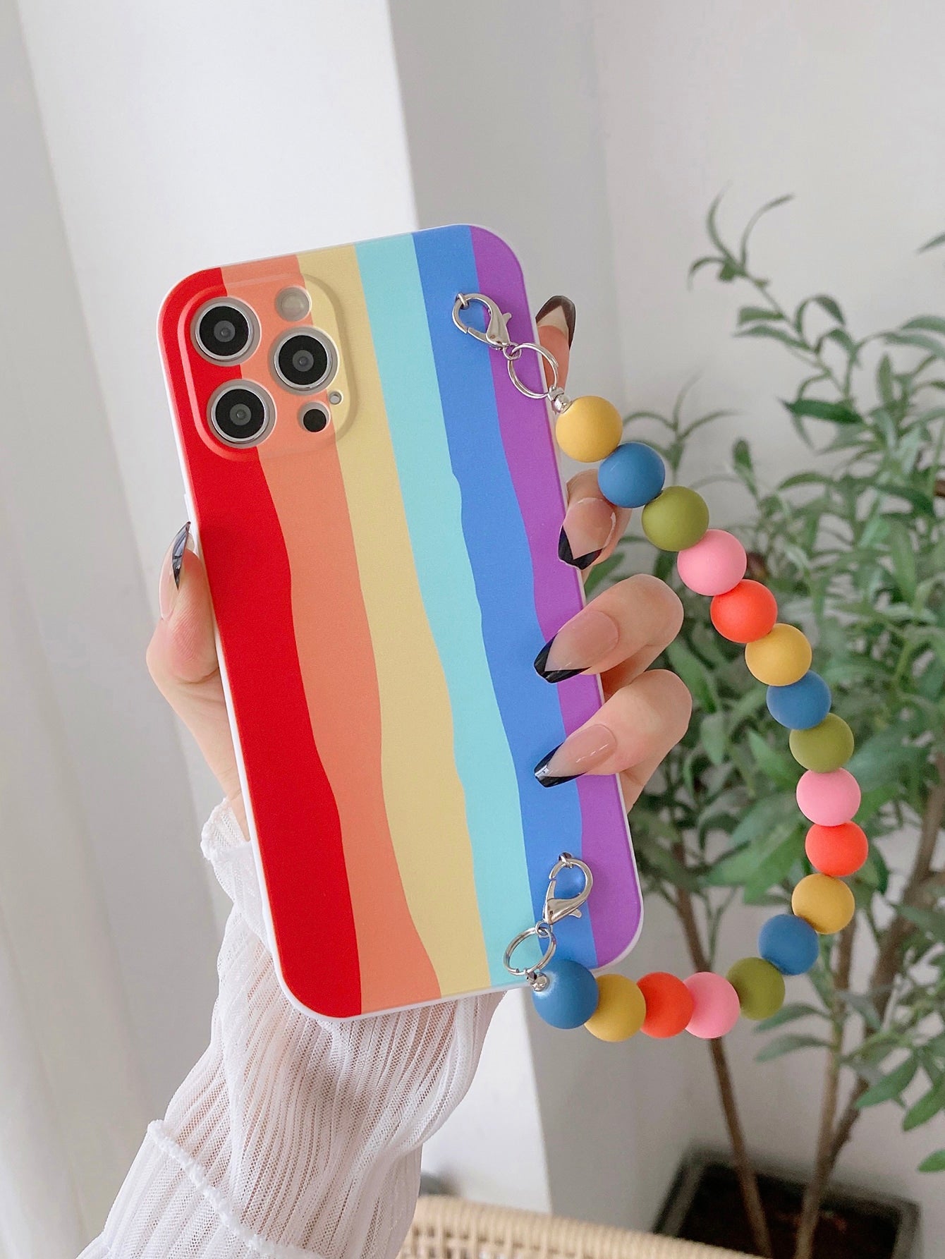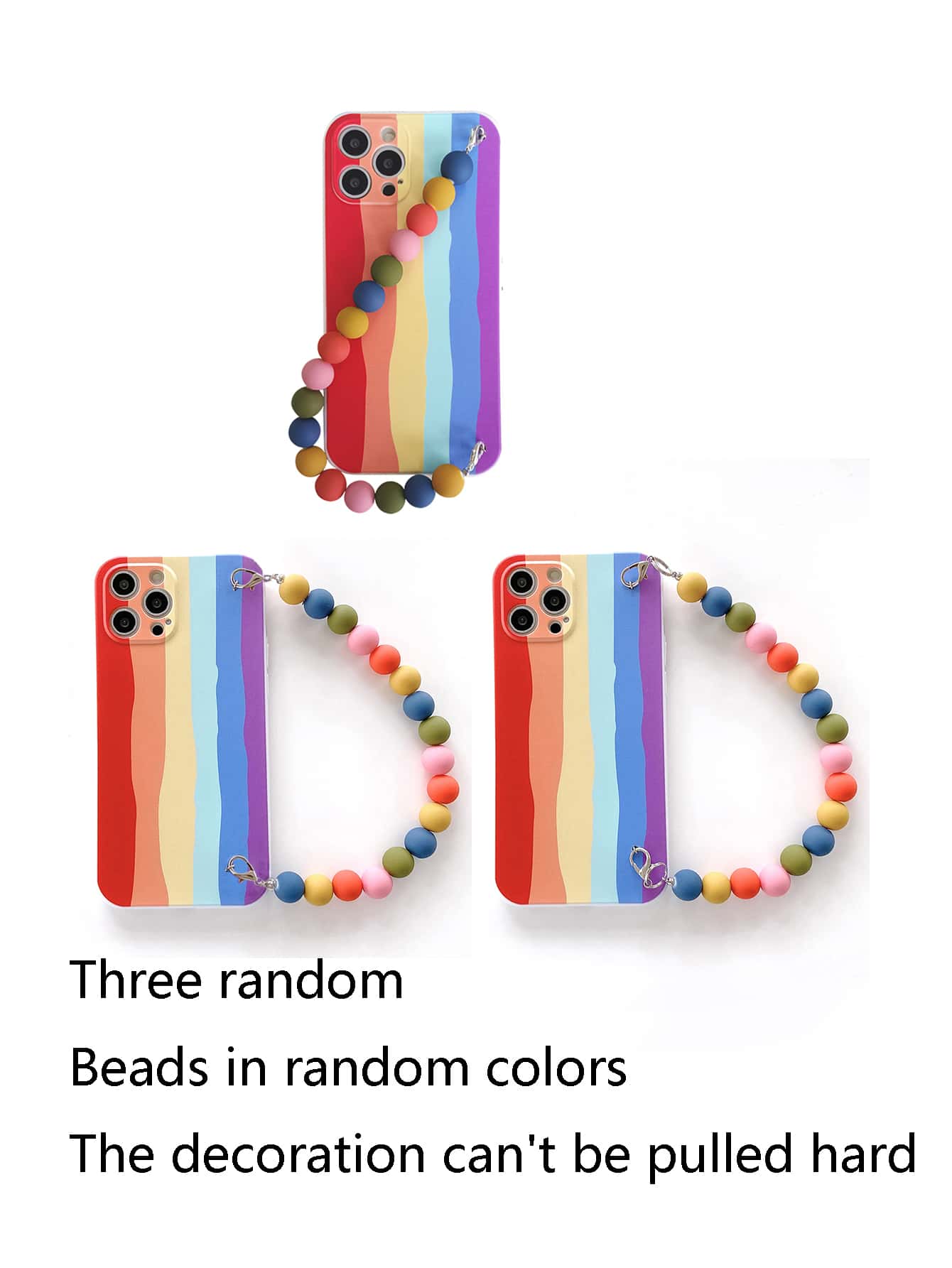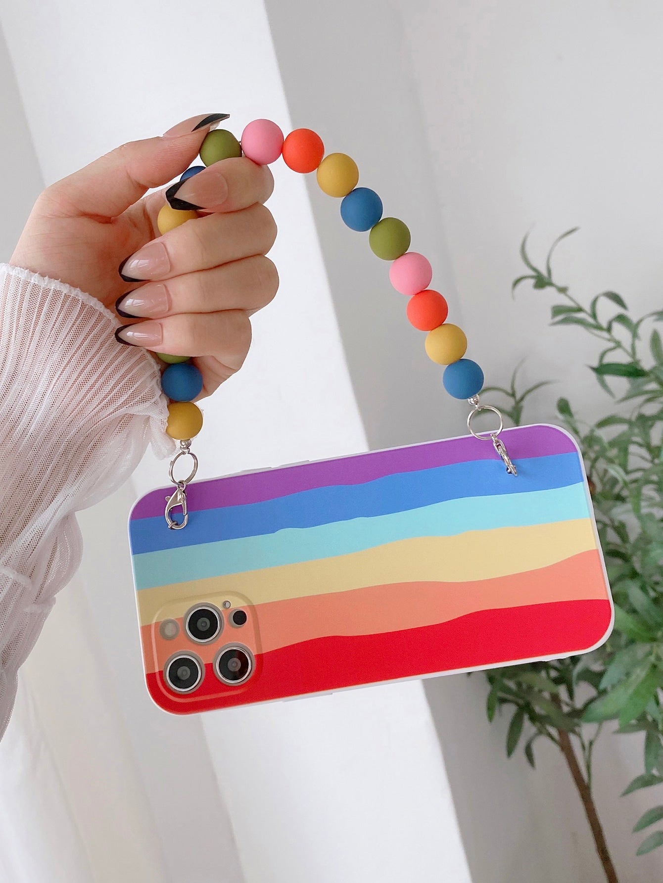حافظة هاتف مخططة بألوان قوس قزح مع حزام يد ملون مطرز