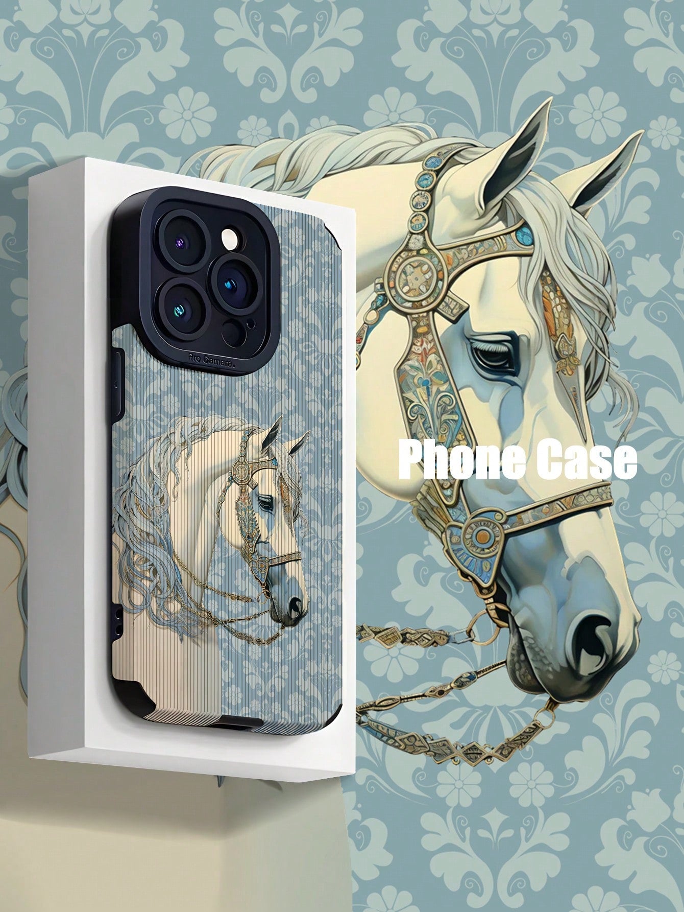 حالة هاتف سيليكون مقاومة للسقوط ذات نمط أنيق لحصان أبيض بزهور