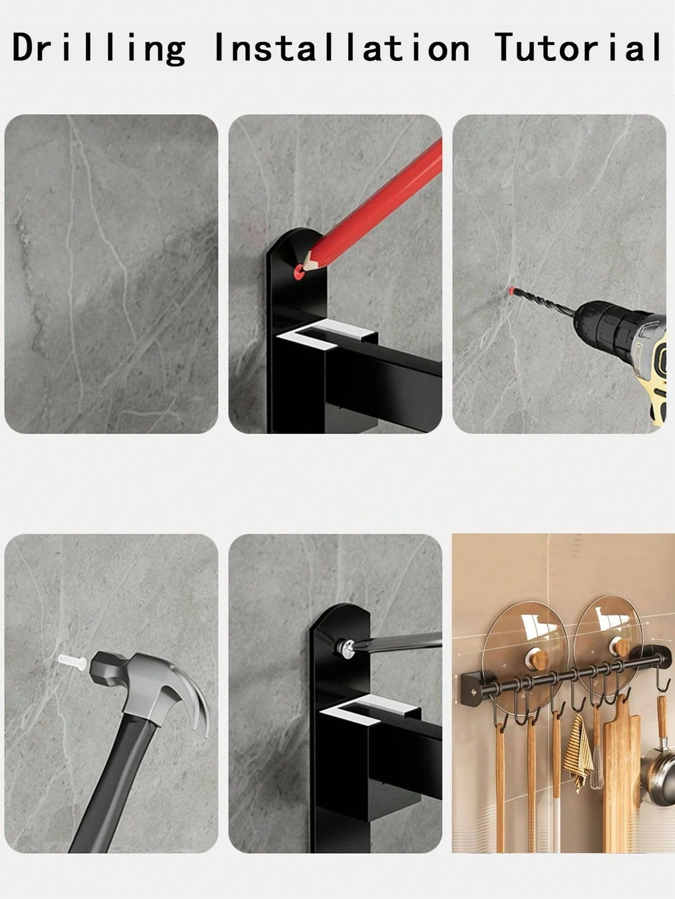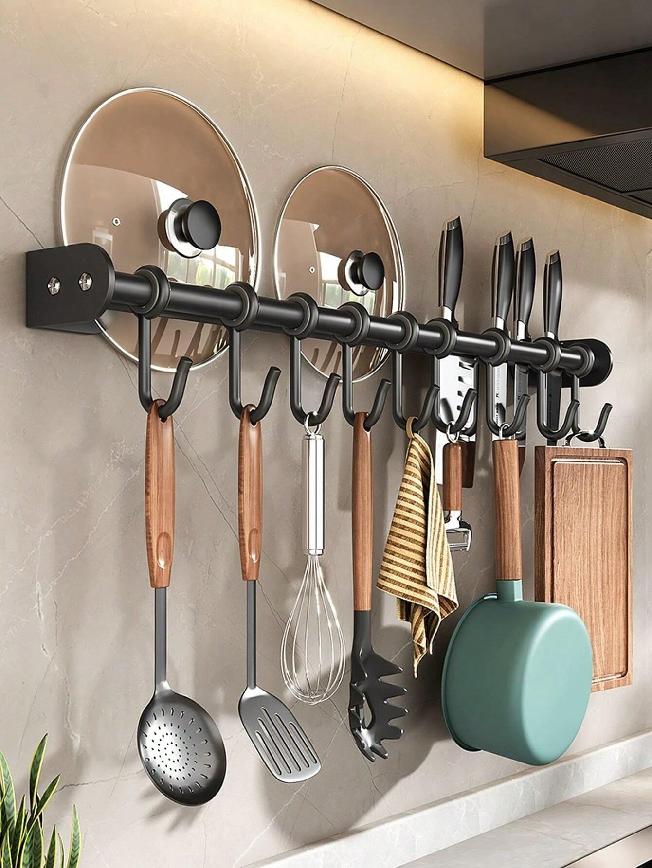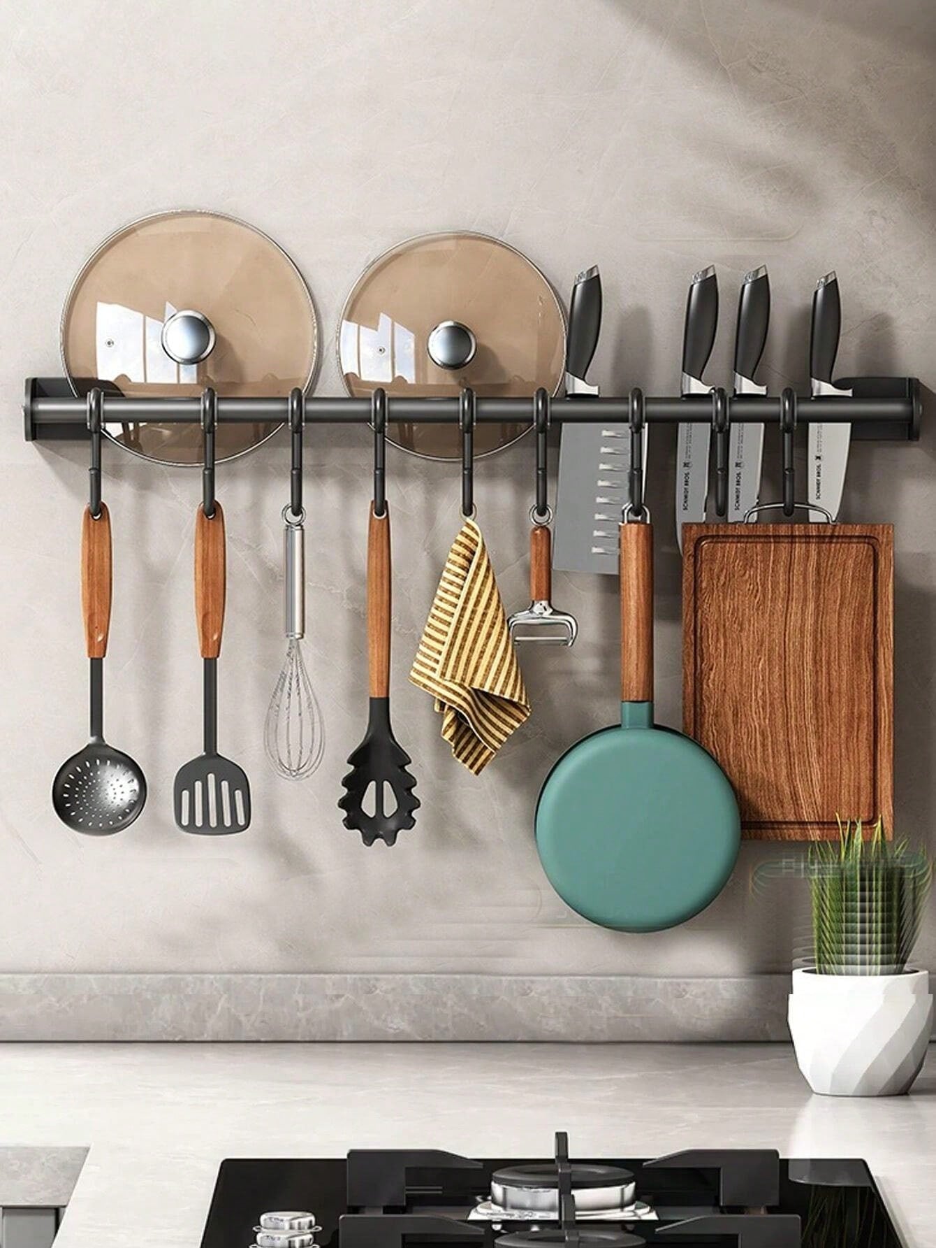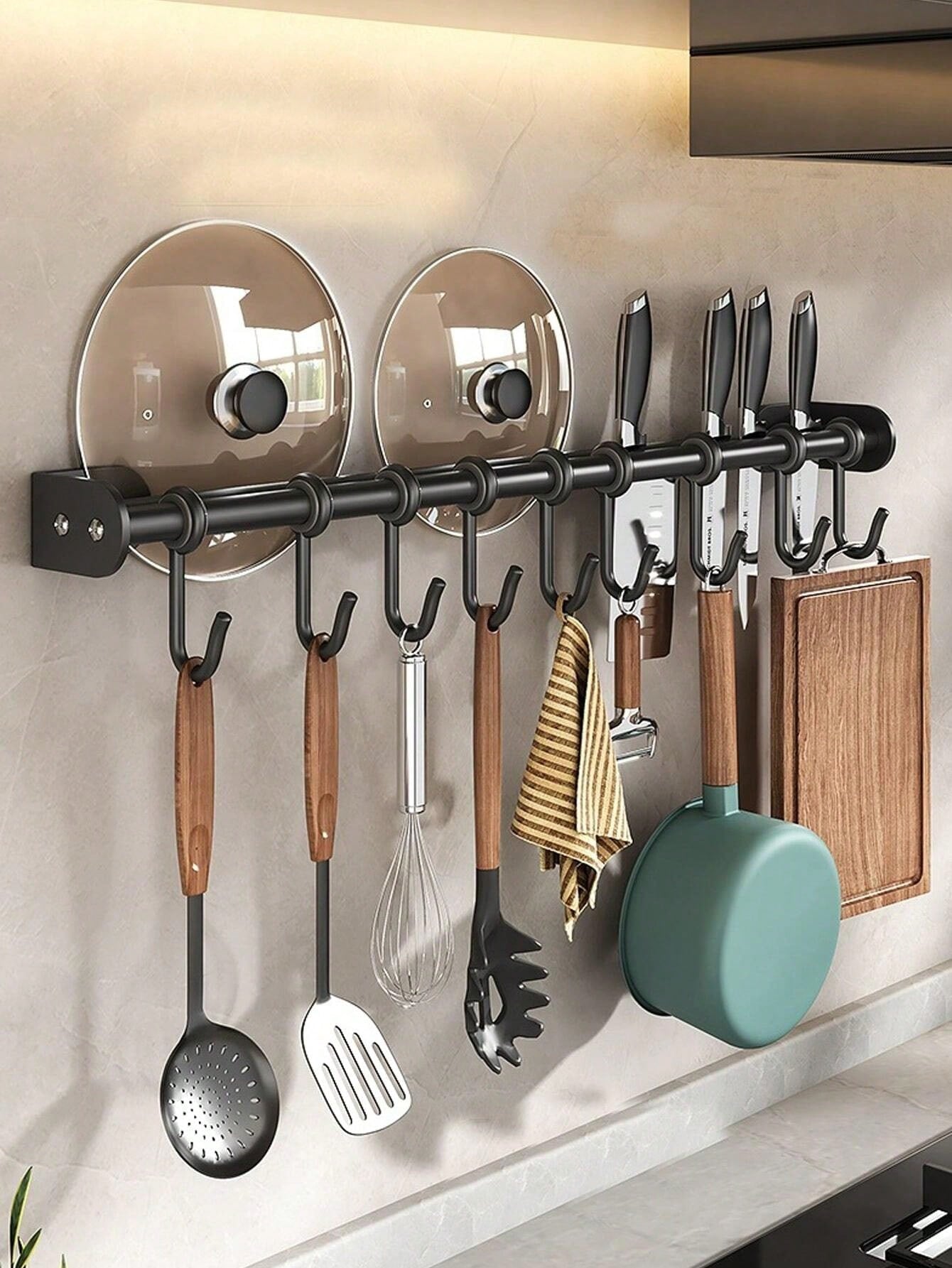حامل أدوات المطبخ للتركيب على الحائط 1/2 قطعة، عصري، مزود بقضيب جداري، خطاف تخزين، قابل للتحريك، معلق قابل للتعليق، معلق الملعقة، حامل أدواتالمطبخ، منظم حامل تخزين معدات المطبخ، ملحقات المطبخ
