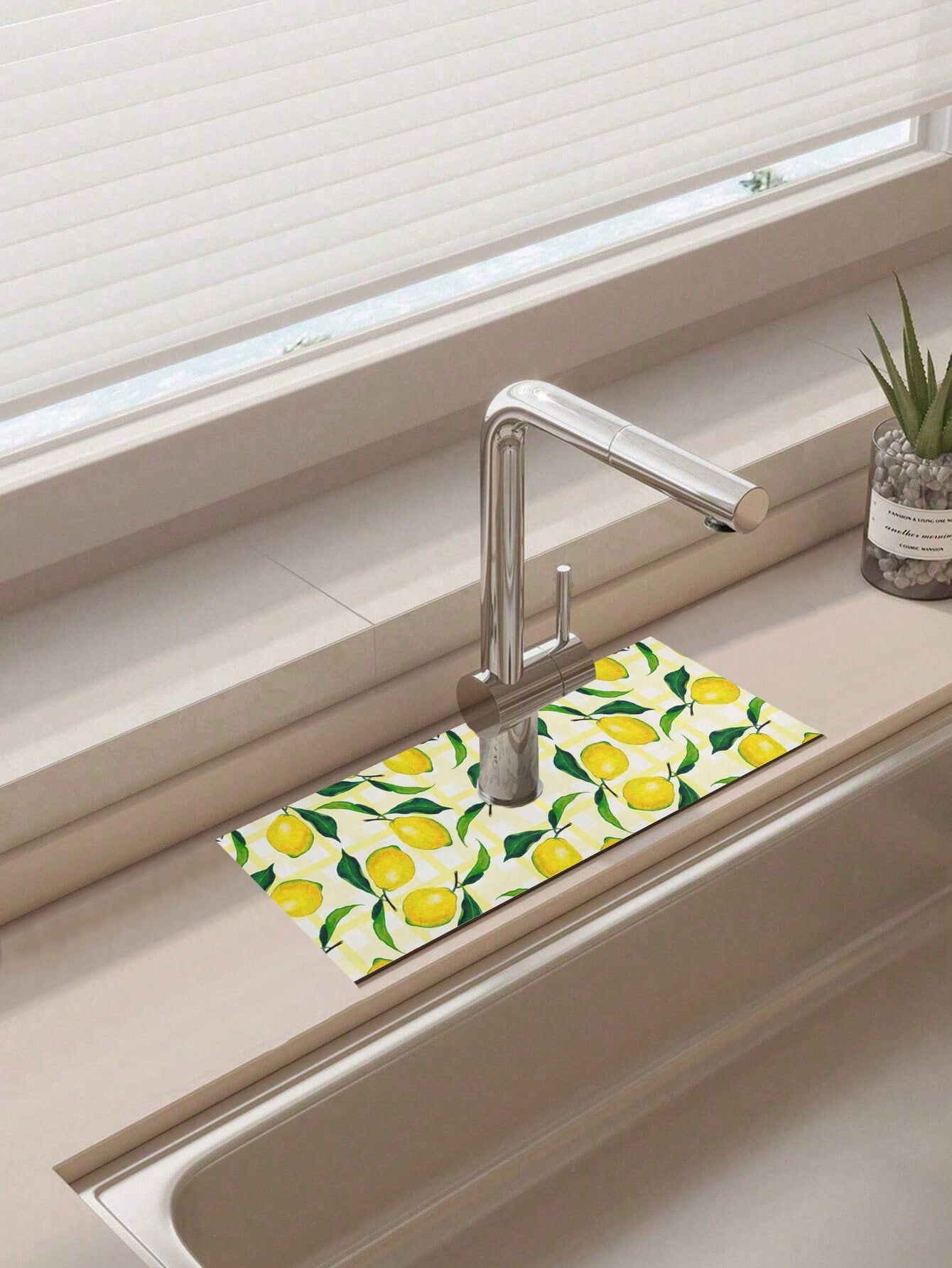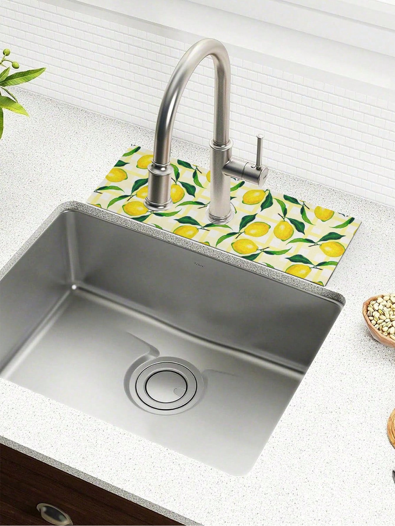 حامي رشاش حمام الليمون ذو الطباعة الحمضية 1 قطعة لحوض المطبخ ، وميزات الحوض السريع الامتصاص ، وحصيرة الحوض ، وحصيرة تجفيف الأواني ، والحمام