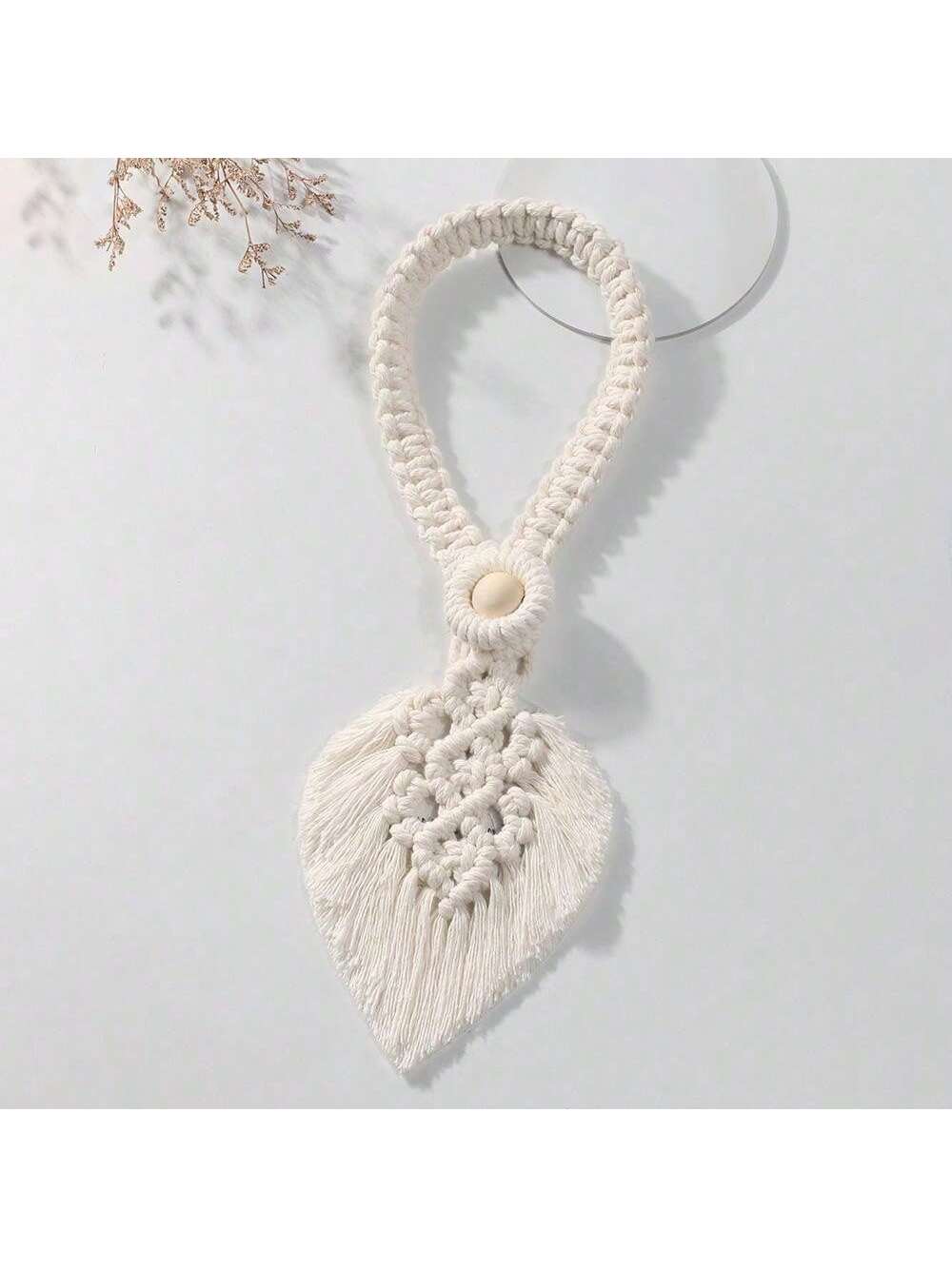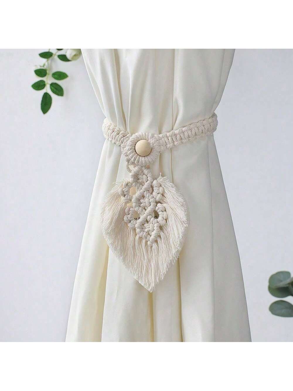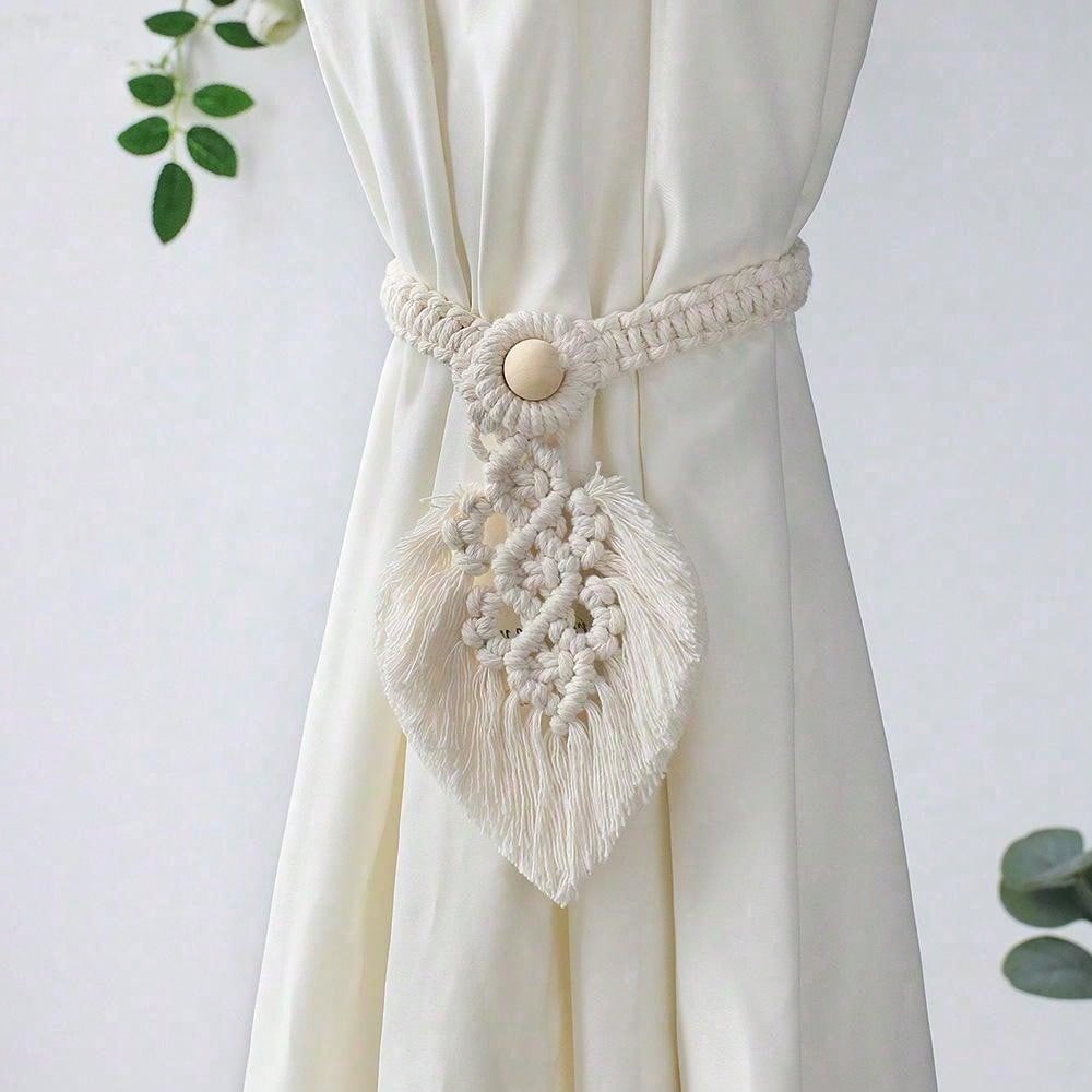 حبل الدانتيل المضفور اليدوي البوهيمي الذي يحتوي على شرائط من الأوراق وحبيبات خشبية ويستخدم لديكور الستائر والأبواب, قطعة واحدة